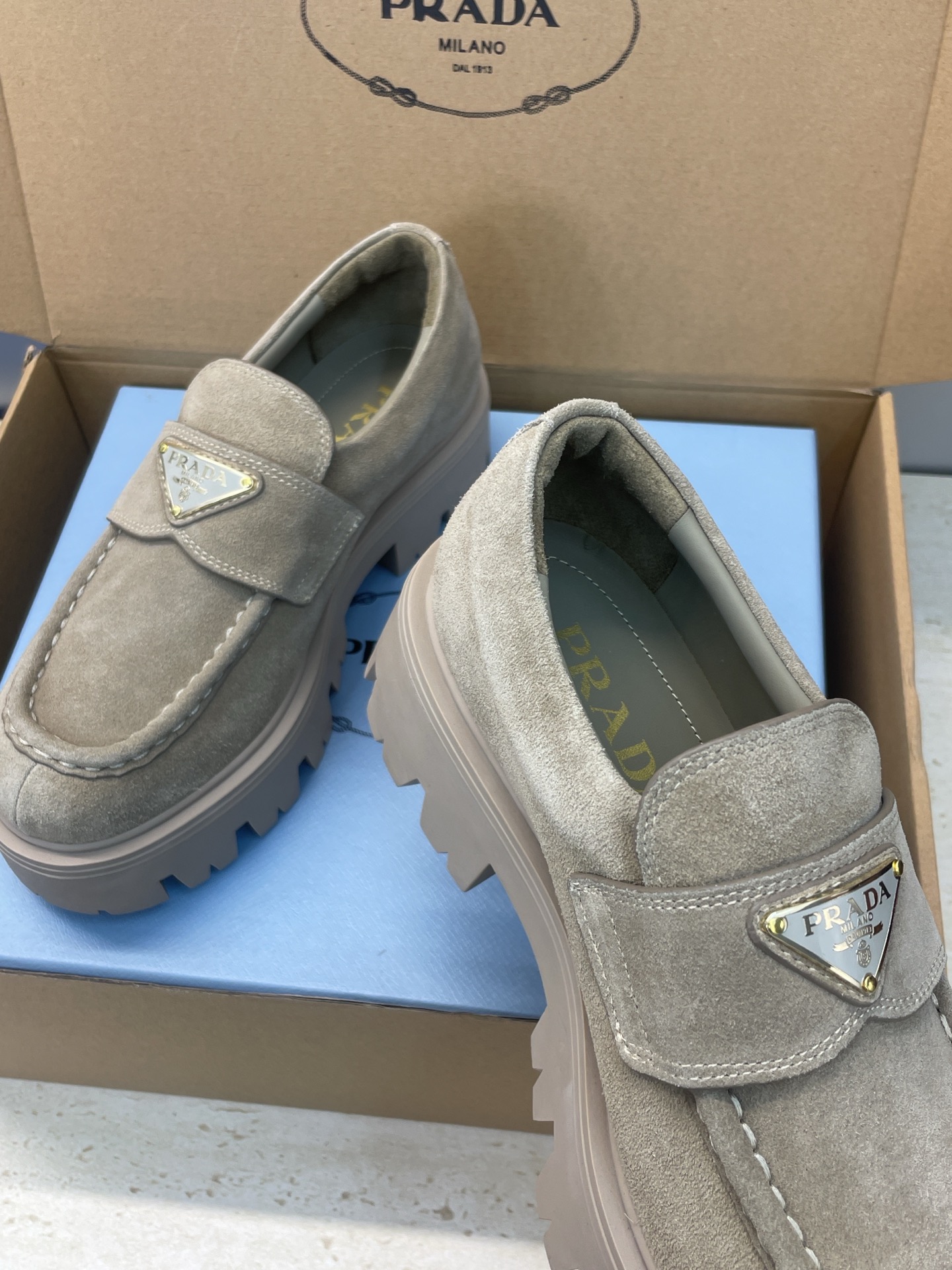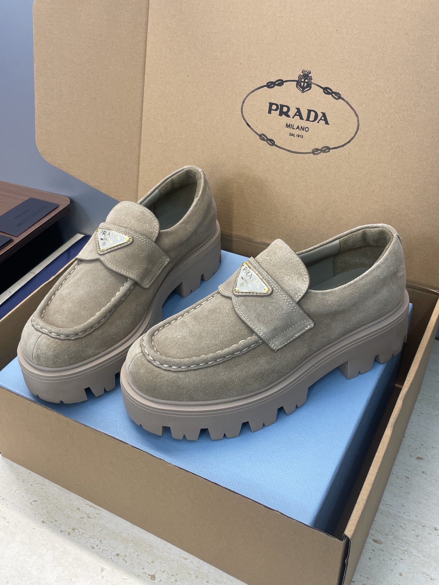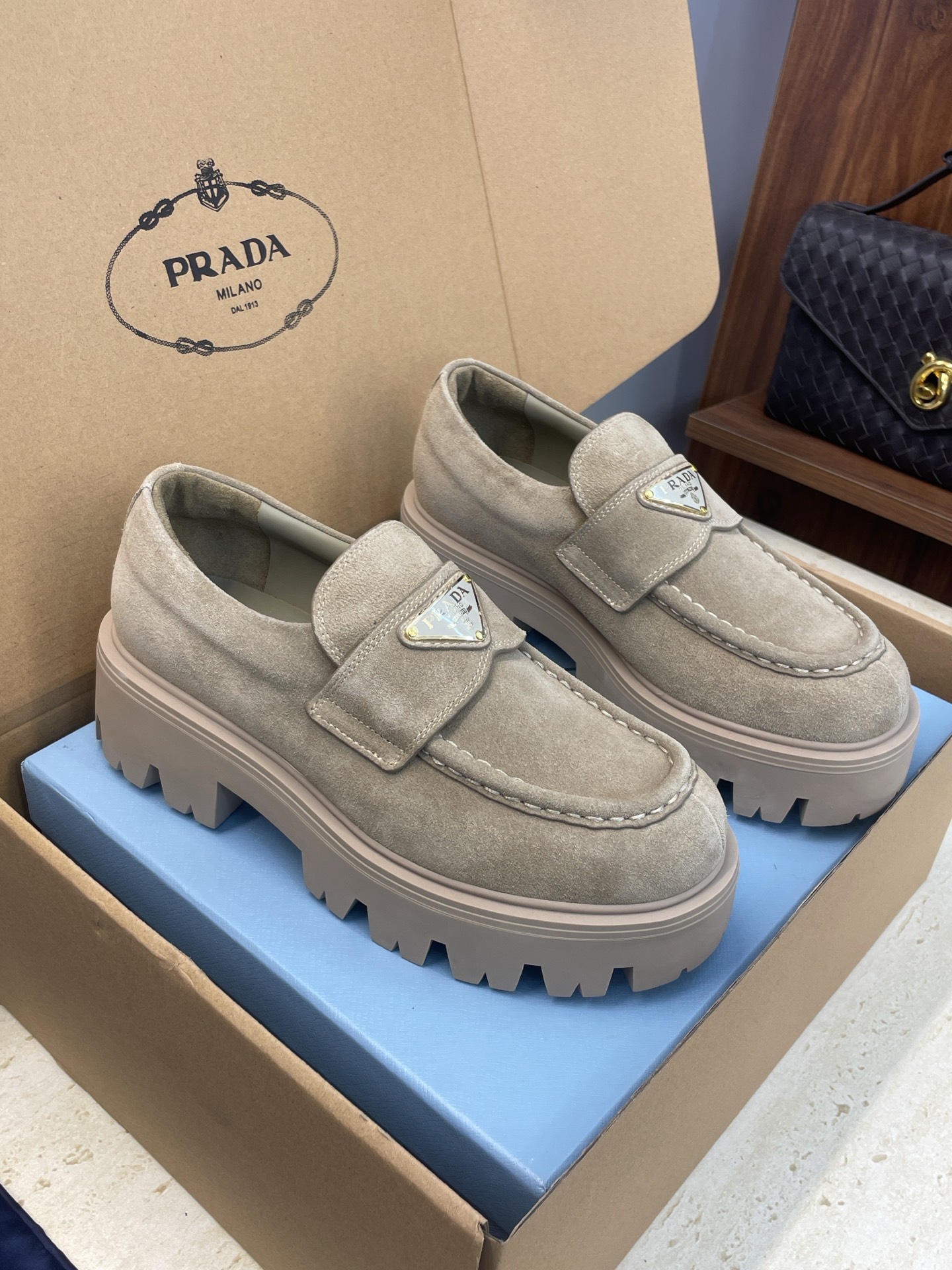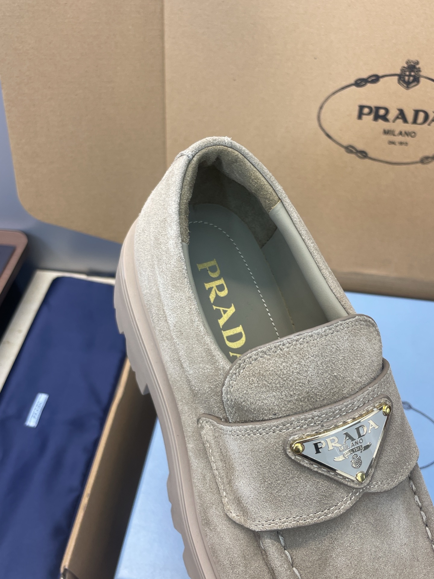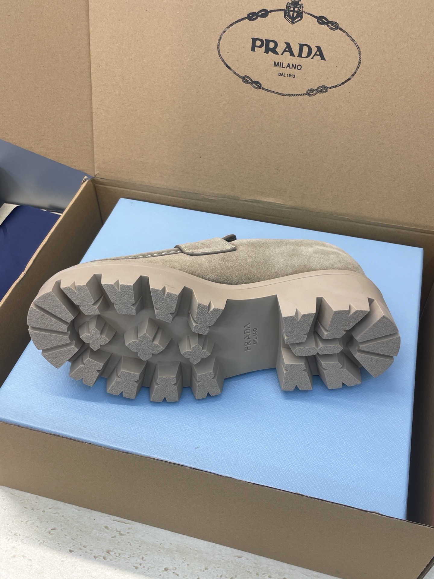这款鞋子是AAAAA 1:1 质量 (非常棒). 使用了和原版一模一样的材料. 商标部分也保持了和普拉达/Prada一样. 图片拍摄是实物鞋子拍摄, 您所收到的实物保证和我们图片一模一样.