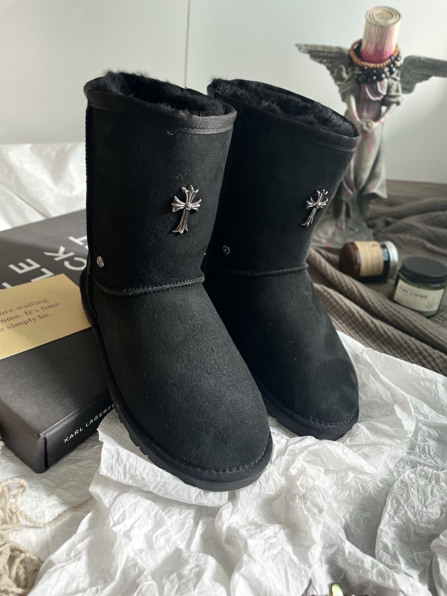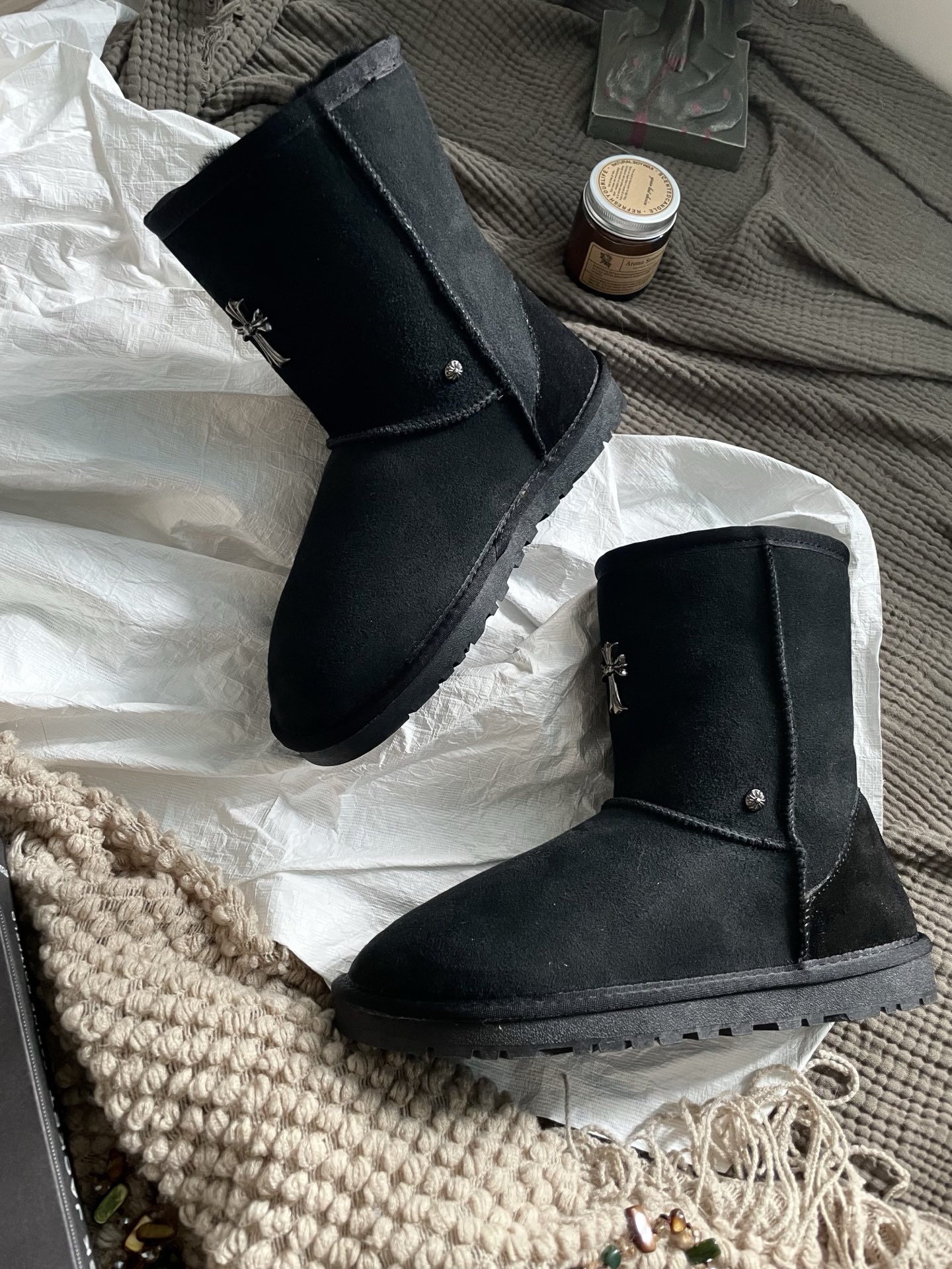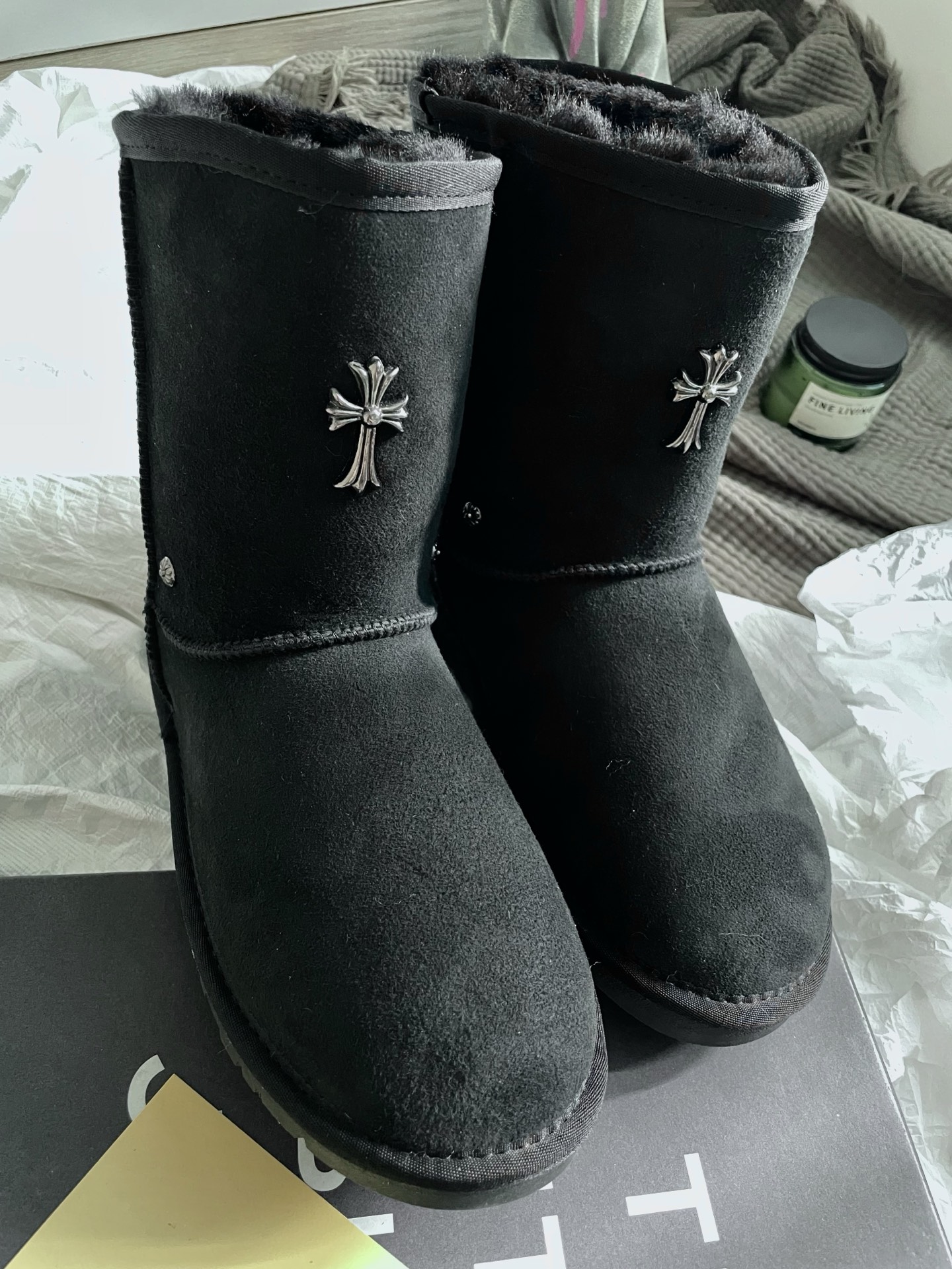 这款鞋子是AAAAA 1:1 质量 (非常棒). 使用了和原版一模一样的材料. 商标部分也保持了和克罗心/Chrome Hearts一样. 图片拍摄是实物鞋子拍摄, 您所收到的实物保证和我们图片一模一样.