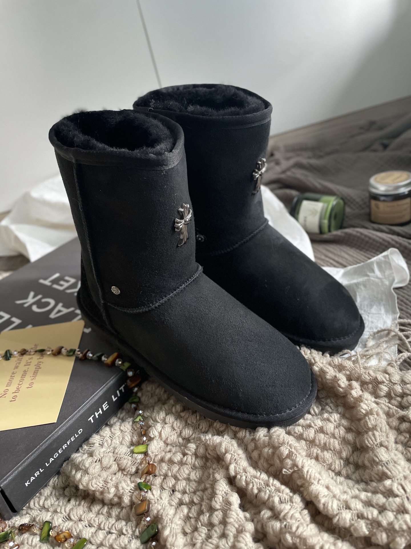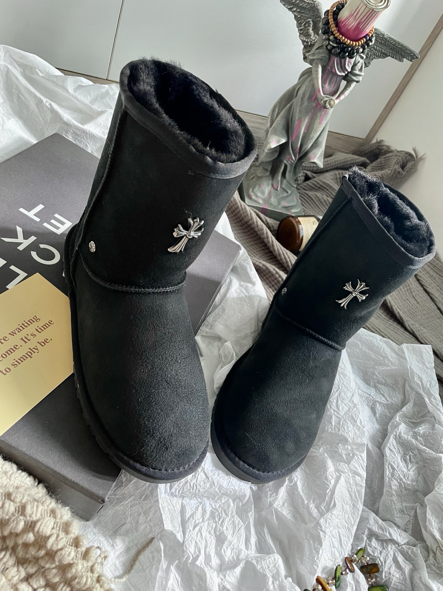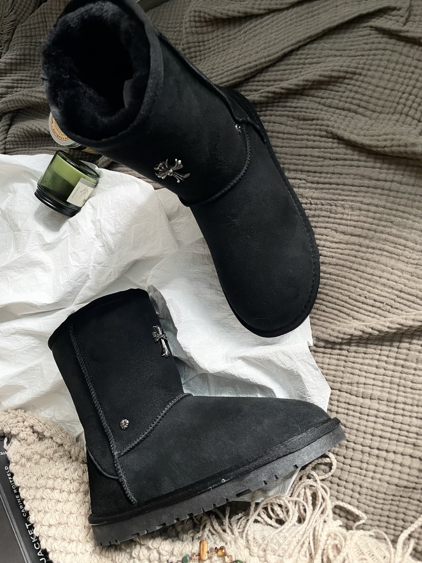 这款鞋子是AAAAA 1:1 质量 (非常棒). 使用了和原版一模一样的材料. 商标部分也保持了和克罗心/Chrome Hearts一样. 图片拍摄是实物鞋子拍摄, 您所收到的实物保证和我们图片一模一样.