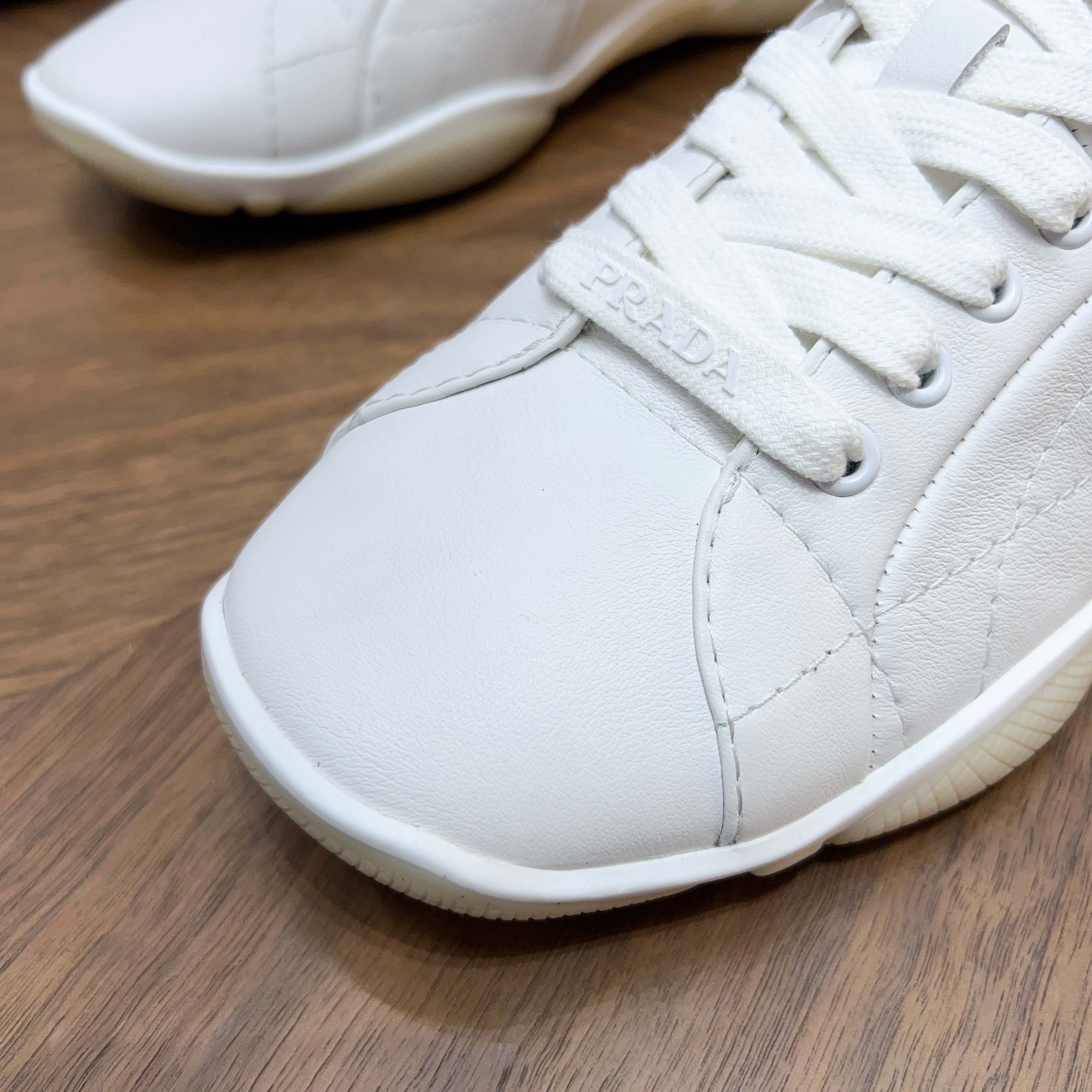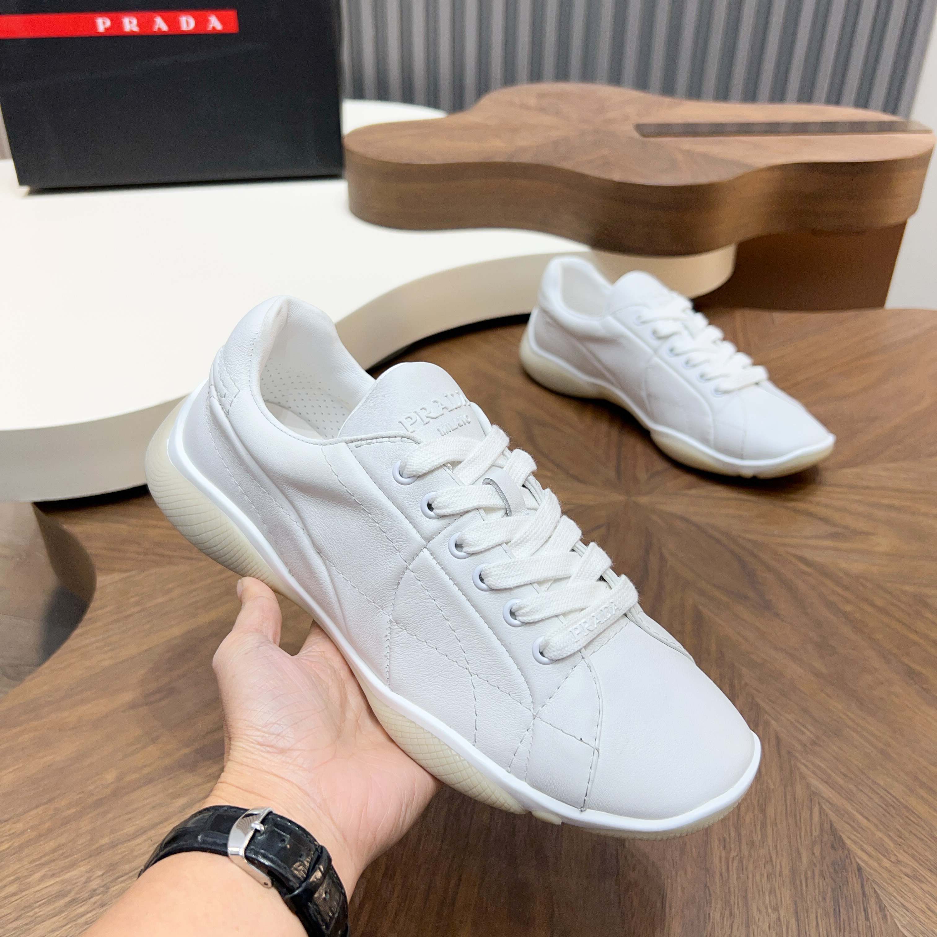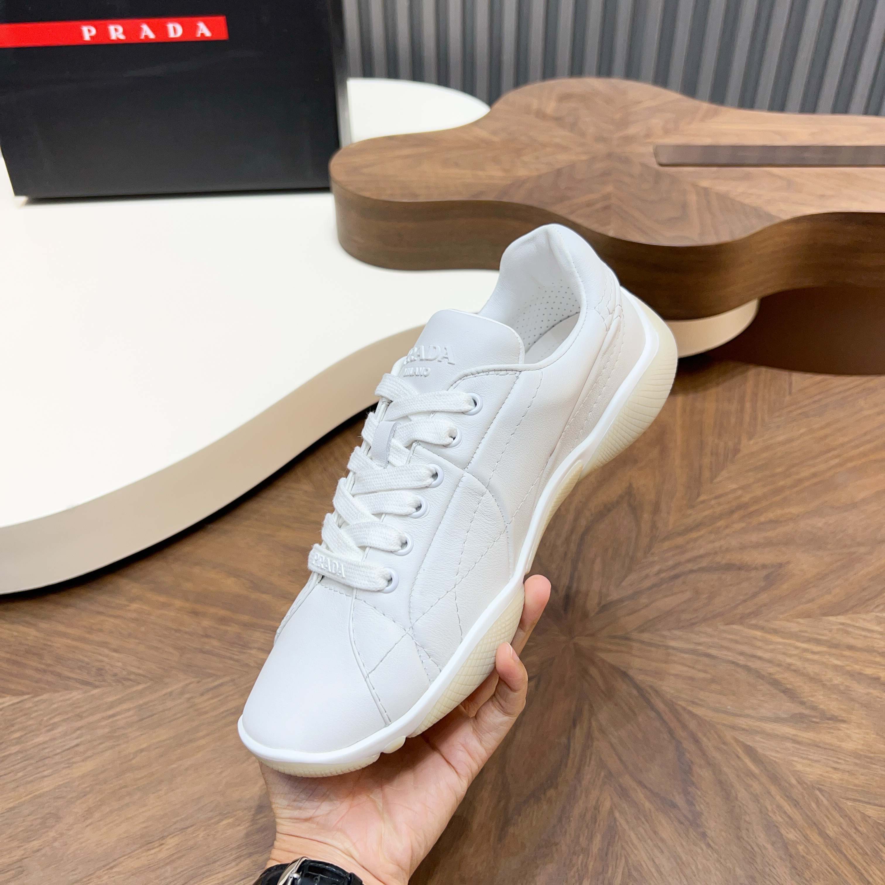 这款鞋子是AAAAA 1:1 质量 (非常棒). 使用了和原版一模一样的材料. 商标部分也保持了和普拉达/Prada一样. 图片拍摄是实物鞋子拍摄, 您所收到的实物保证和我们图片一模一样.