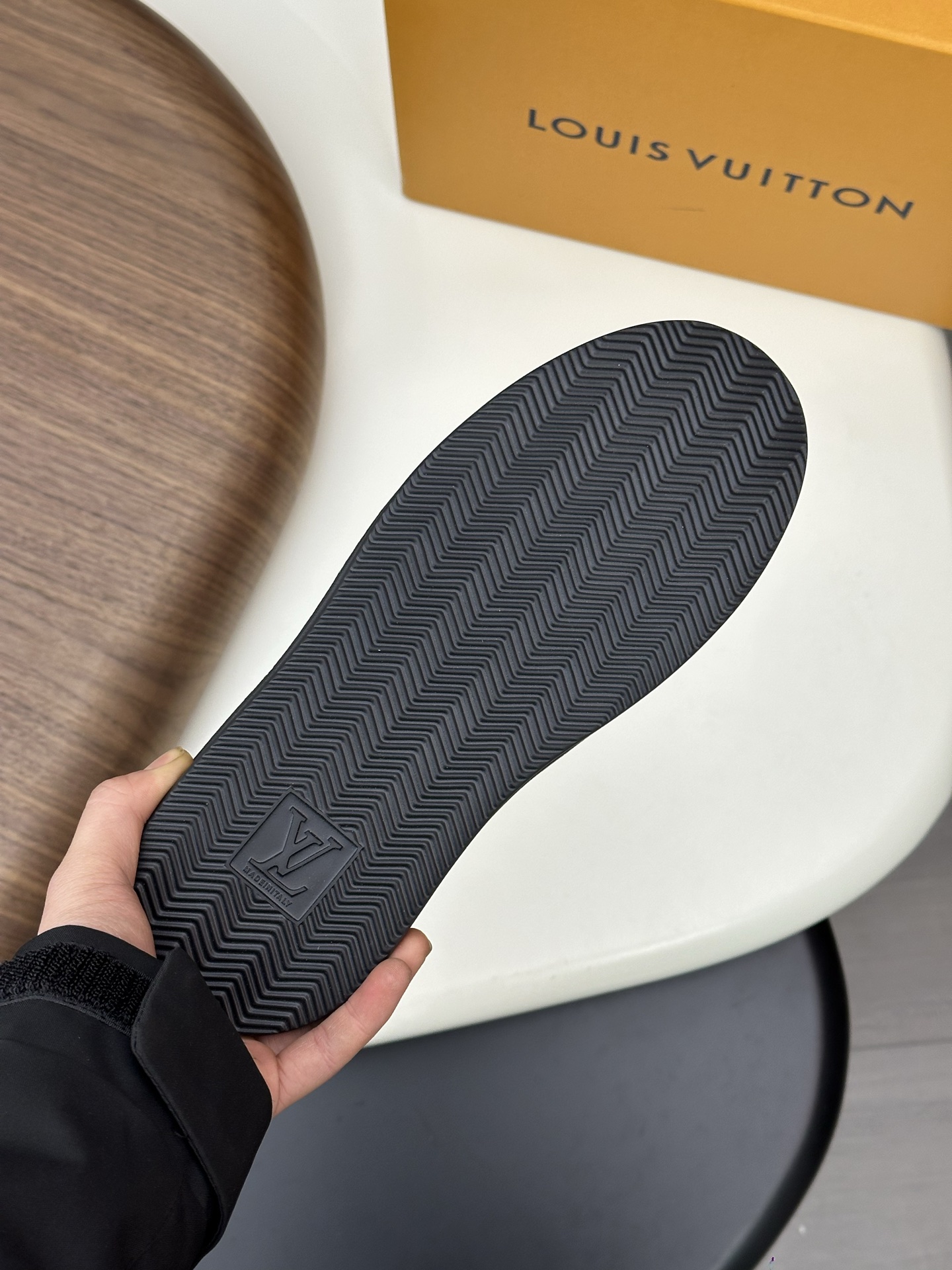 这款鞋子是AAAAA 1:1 质量 (非常棒). 使用了和原版一模一样的材料. 商标部分也保持了和路易威登/Louis Vuitton一样. 图片拍摄是实物鞋子拍摄, 您所收到的实物保证和我们图片一模一样.