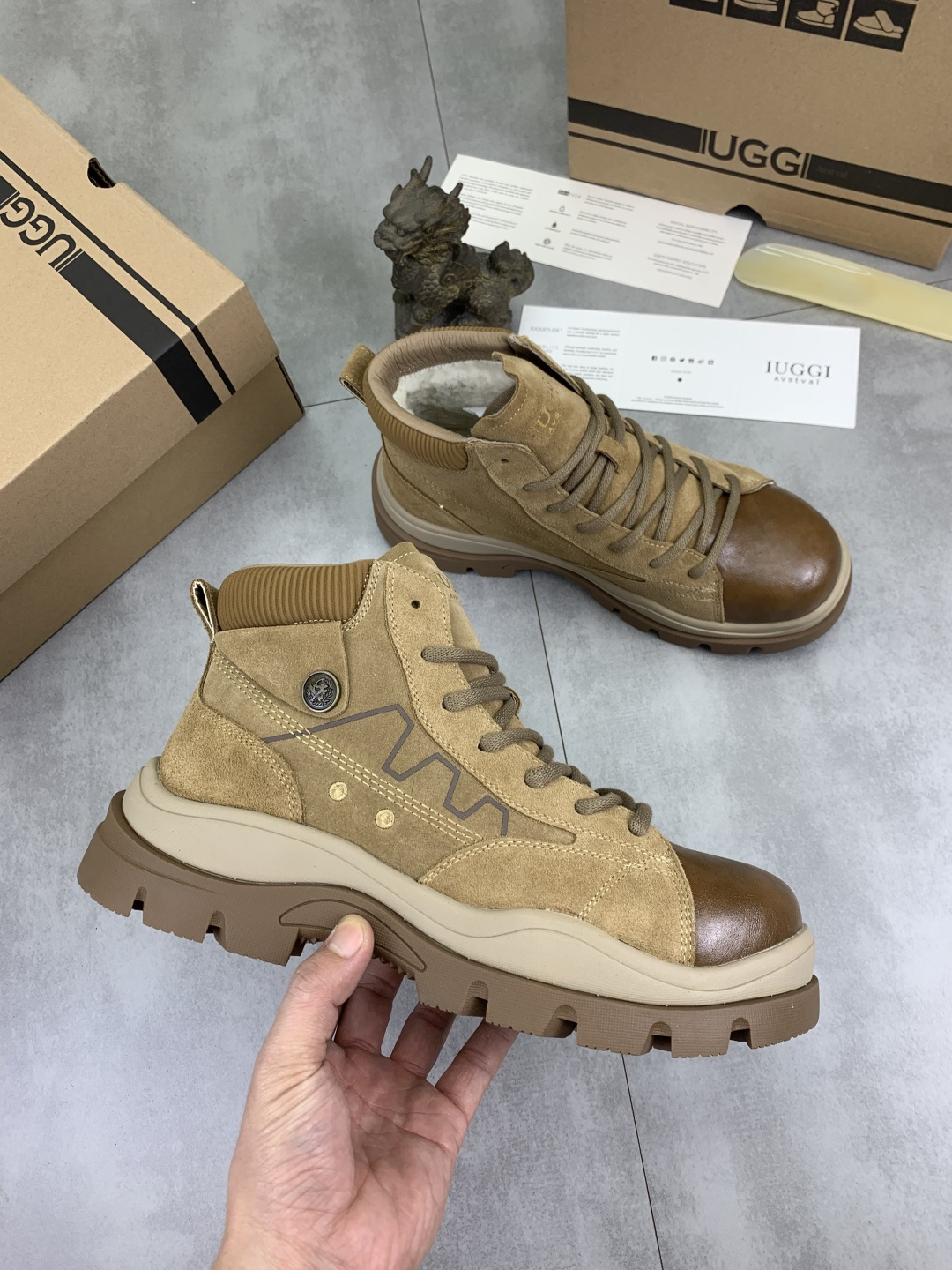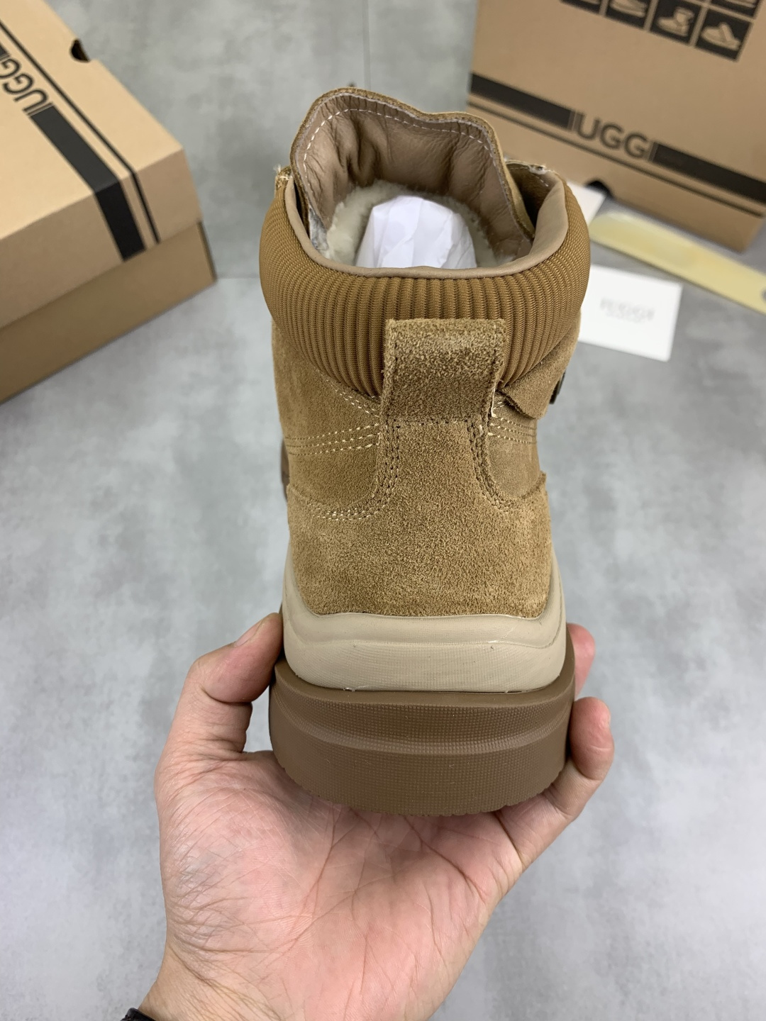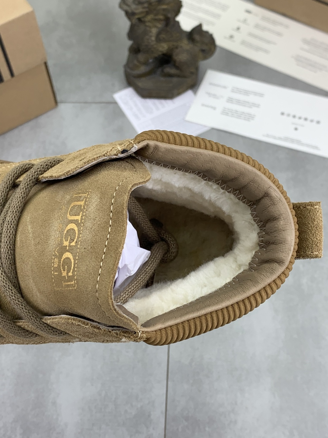 这款鞋子是AAAAA 1:1 质量 (非常棒). 使用了和原版一模一样的材料. 商标部分也保持了和UGG雪地靴一样. 图片拍摄是实物鞋子拍摄, 您所收到的实物保证和我们图片一模一样.