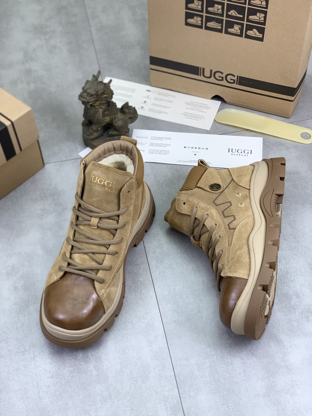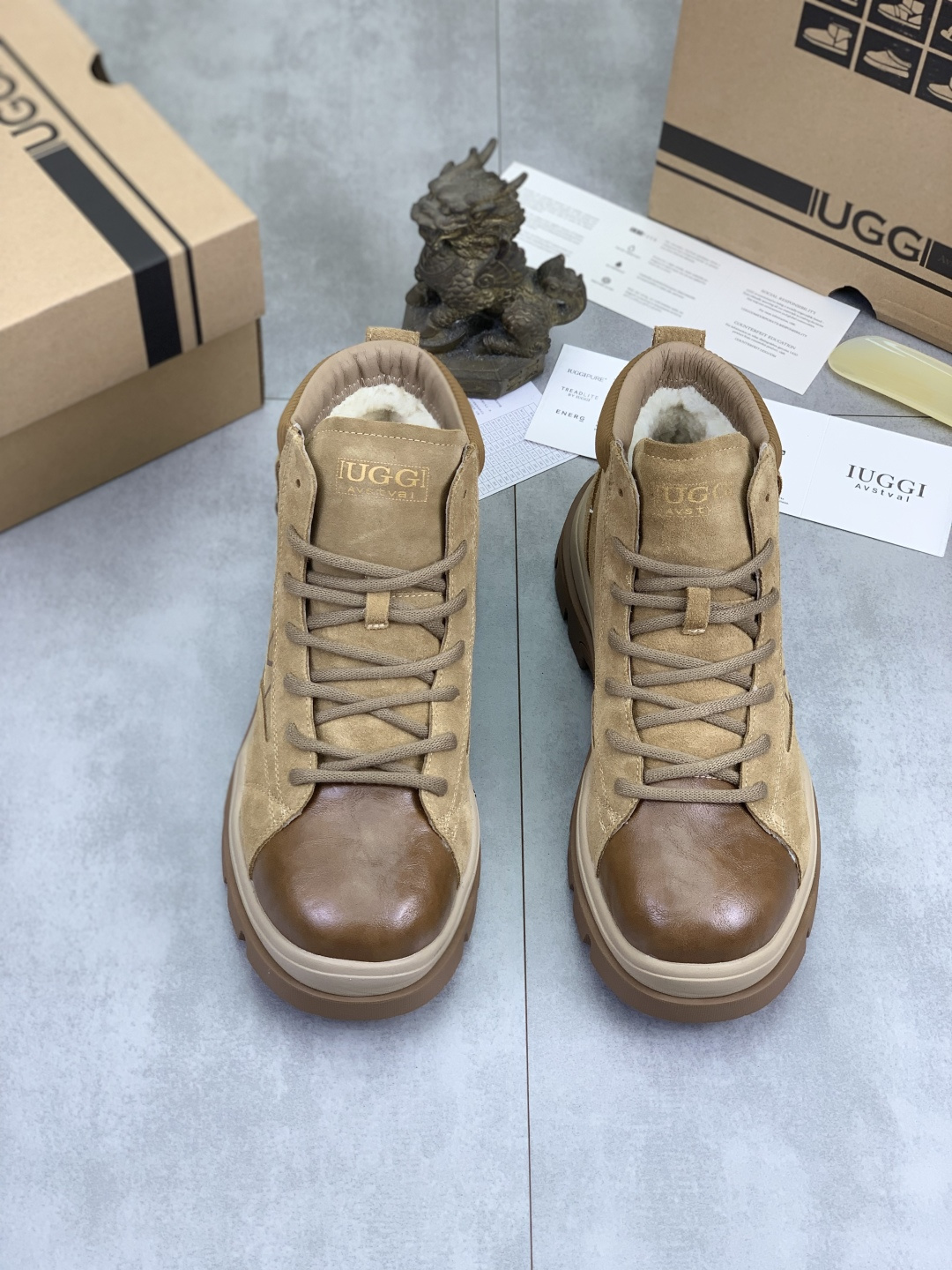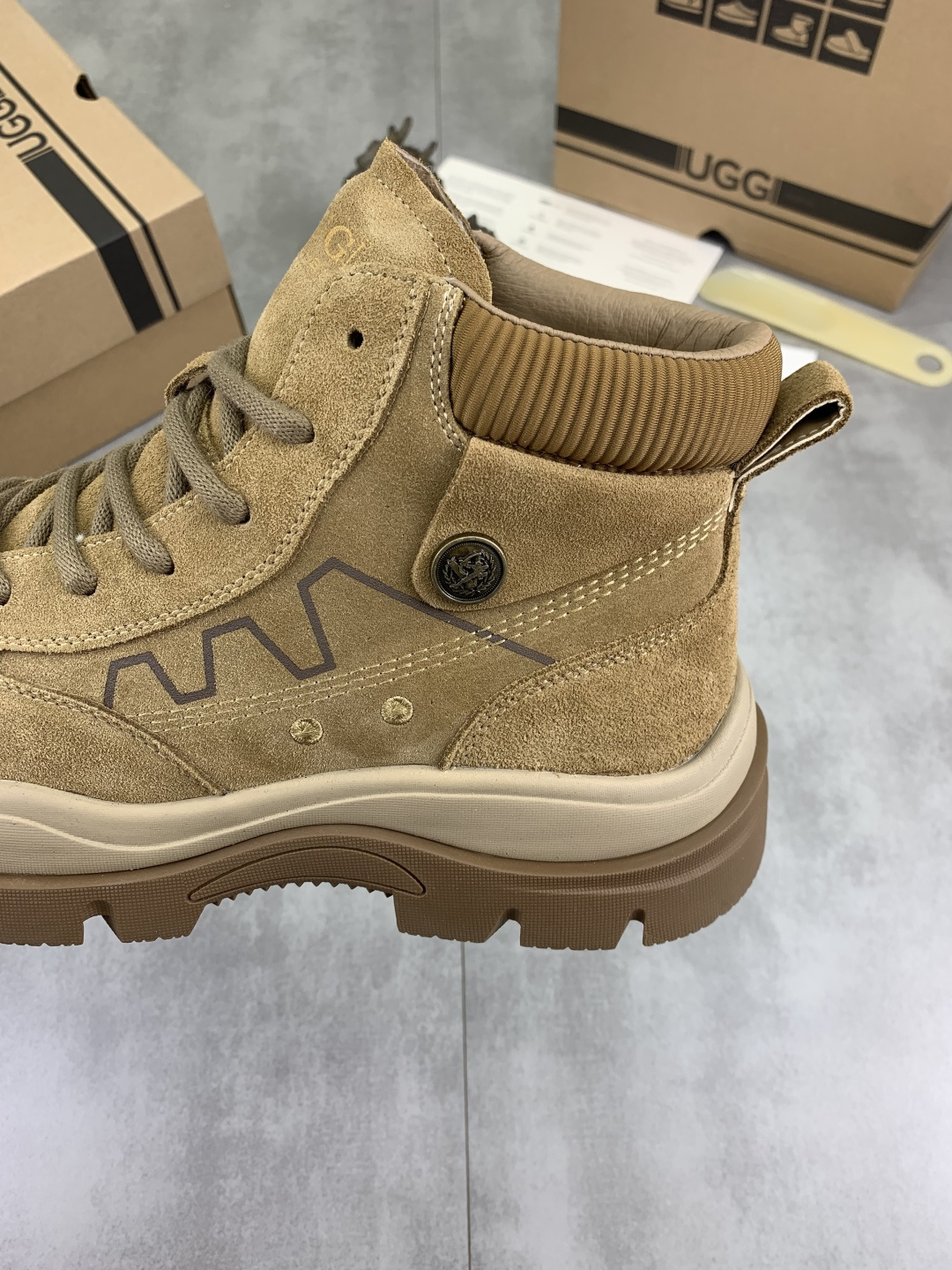 这款鞋子是AAAAA 1:1 质量 (非常棒). 使用了和原版一模一样的材料. 商标部分也保持了和UGG雪地靴一样. 图片拍摄是实物鞋子拍摄, 您所收到的实物保证和我们图片一模一样.