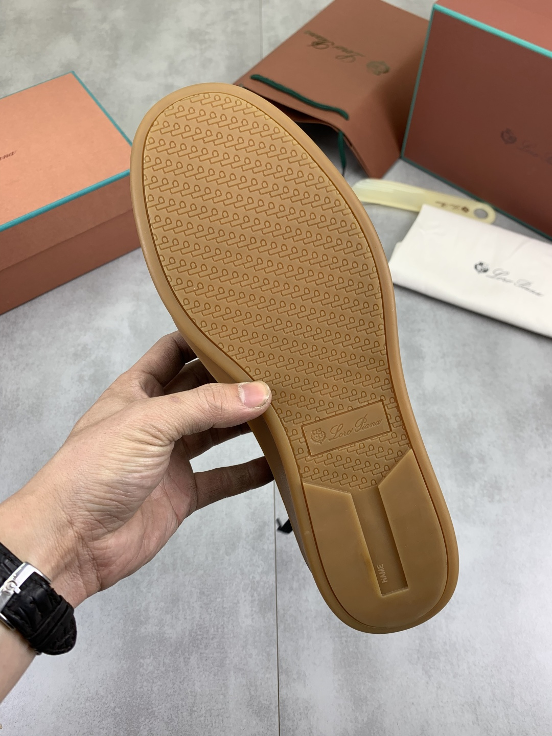 这款鞋子是AAAAA 1:1 质量 (非常棒). 使用了和原版一模一样的材料. 商标部分也保持了和洛罗皮亚纳/Loro Piana一样. 图片拍摄是实物鞋子拍摄, 您所收到的实物保证和我们图片一模一样.
