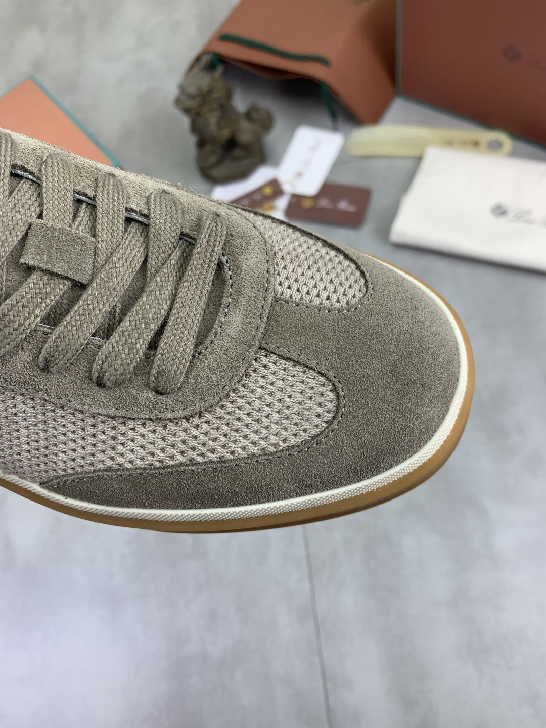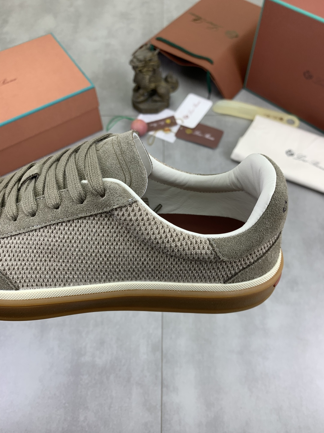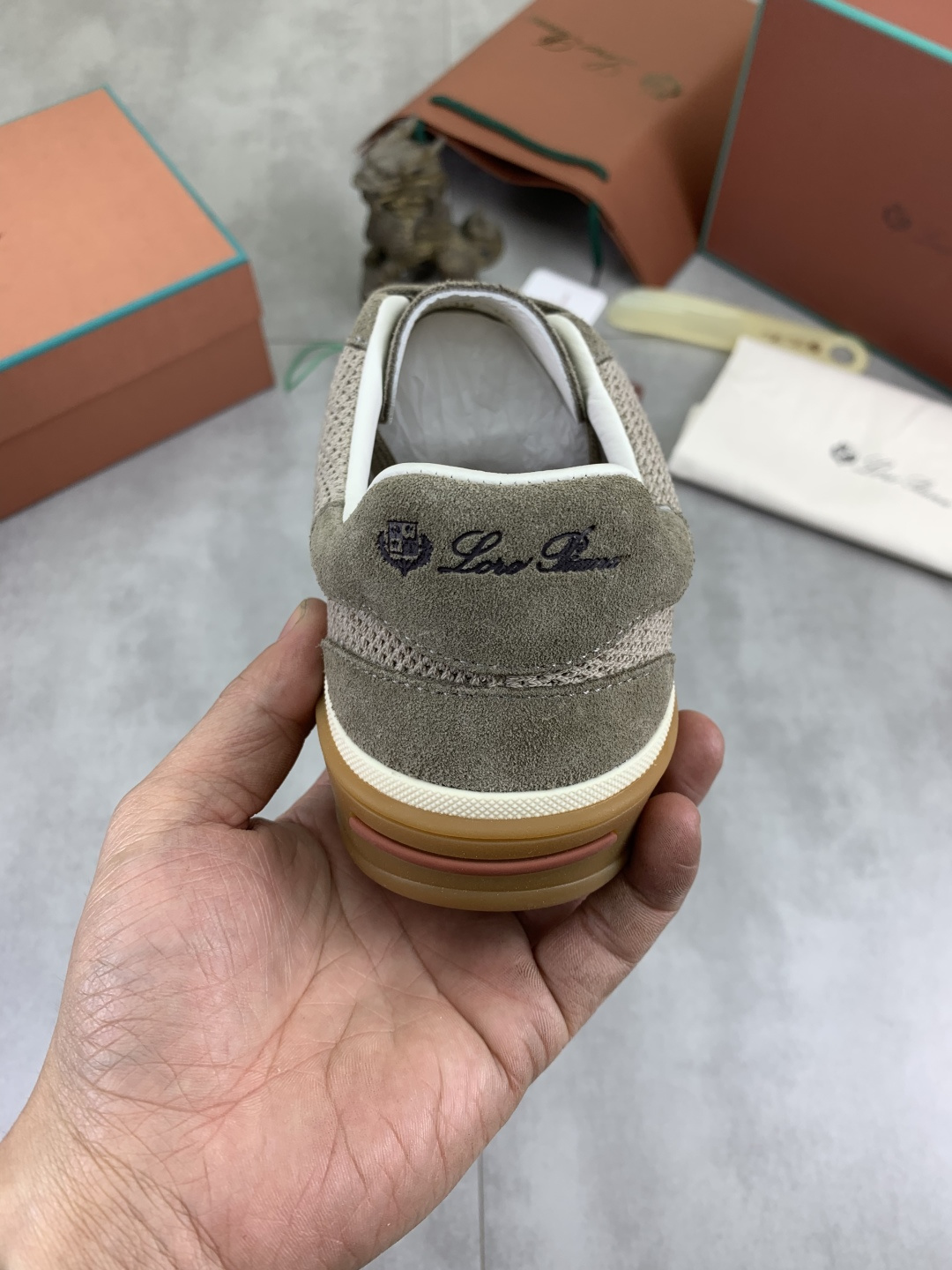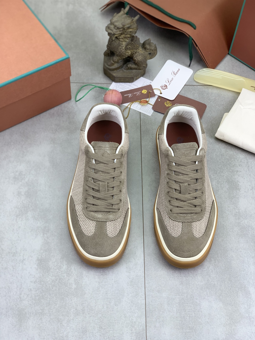 这款鞋子是AAAAA 1:1 质量 (非常棒). 使用了和原版一模一样的材料. 商标部分也保持了和洛罗皮亚纳/Loro Piana一样. 图片拍摄是实物鞋子拍摄, 您所收到的实物保证和我们图片一模一样.