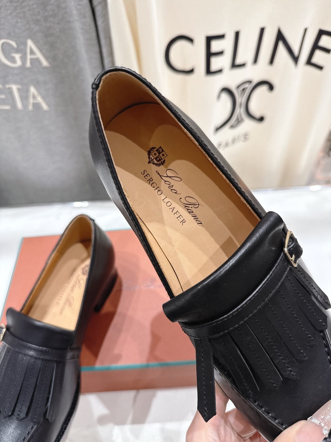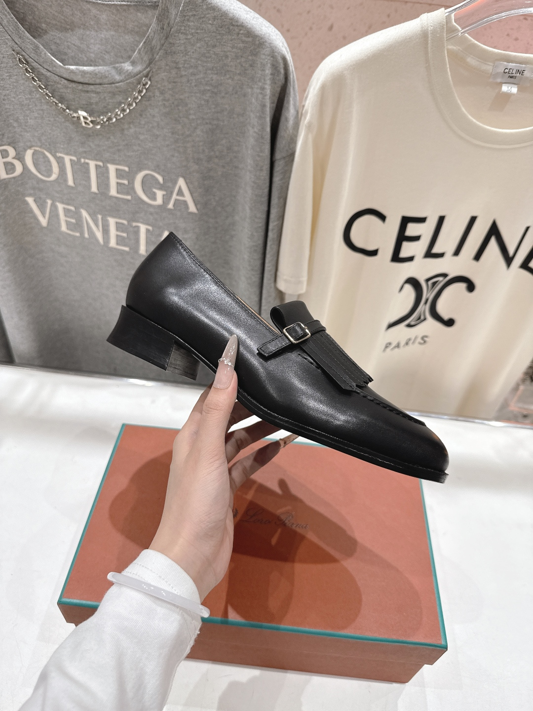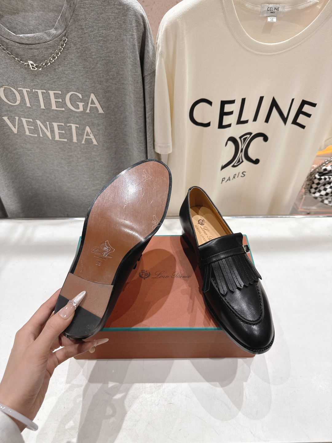这款鞋子是AAAAA 1:1 质量 (非常棒). 使用了和原版一模一样的材料. 商标部分也保持了和洛罗皮亚纳/Loro Piana一样. 图片拍摄是实物鞋子拍摄, 您所收到的实物保证和我们图片一模一样.