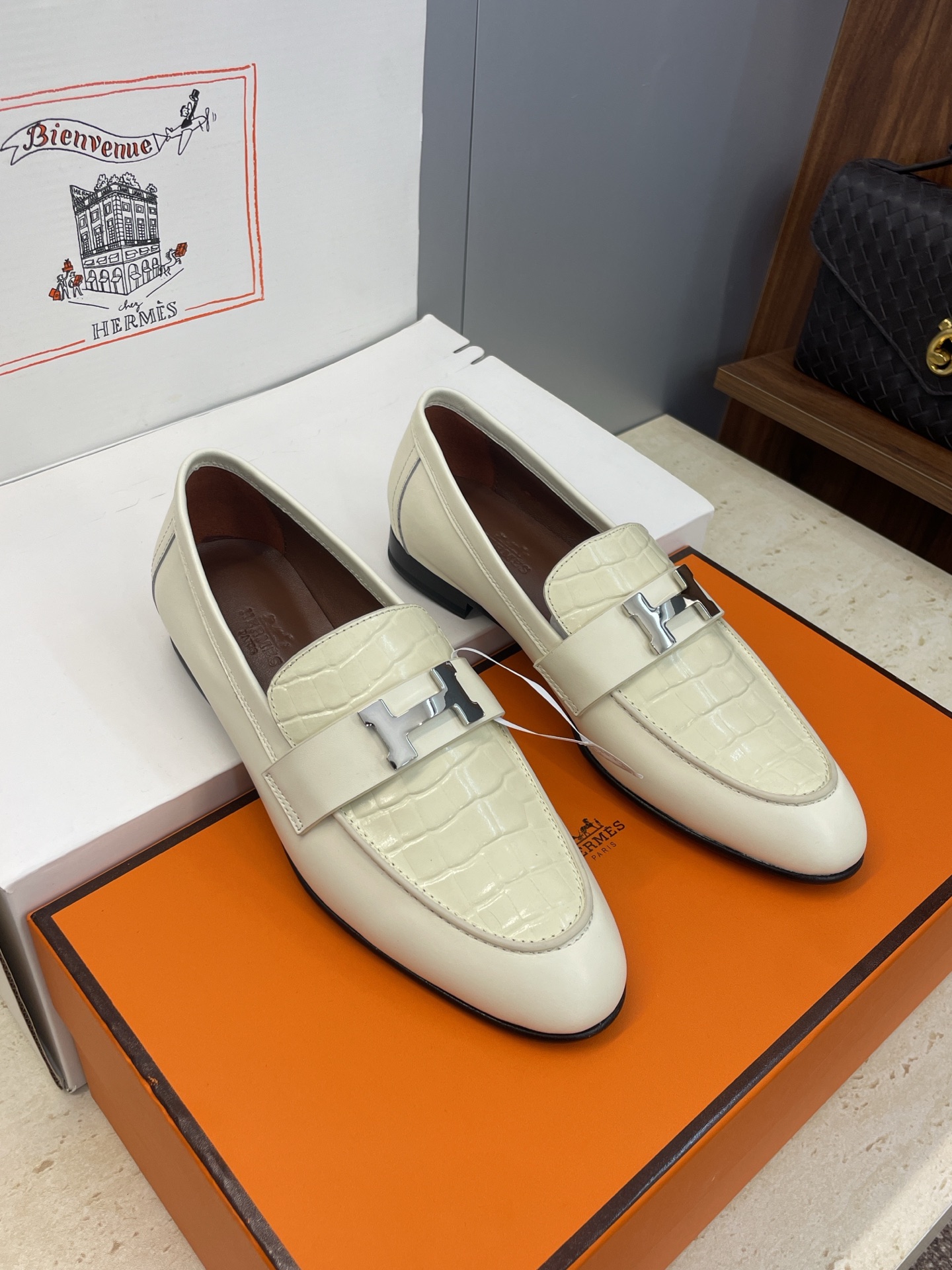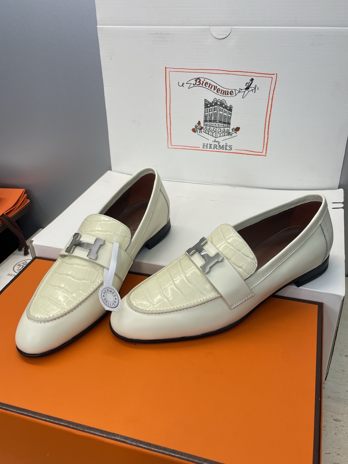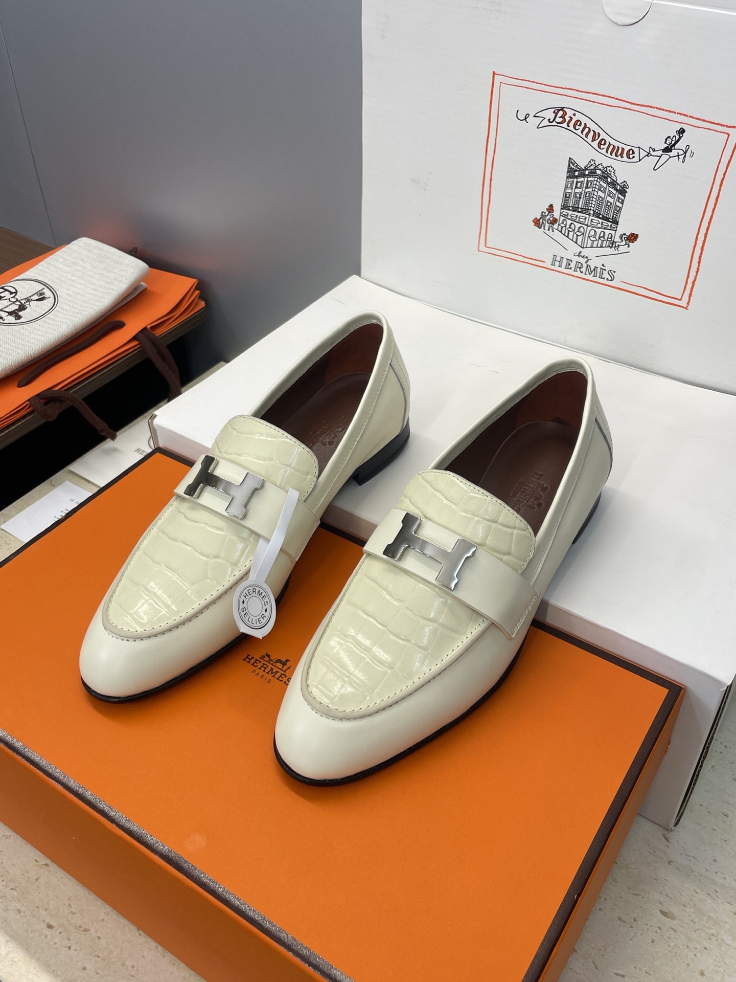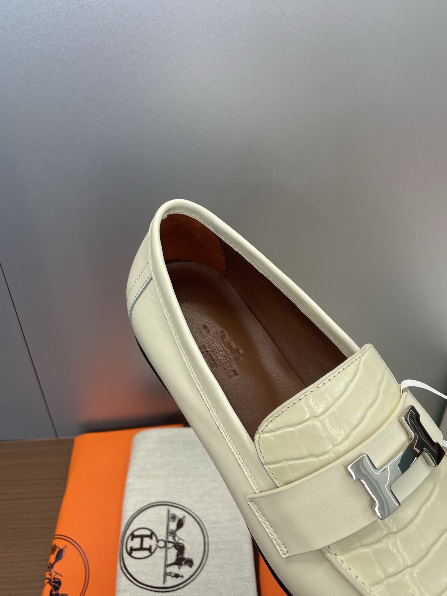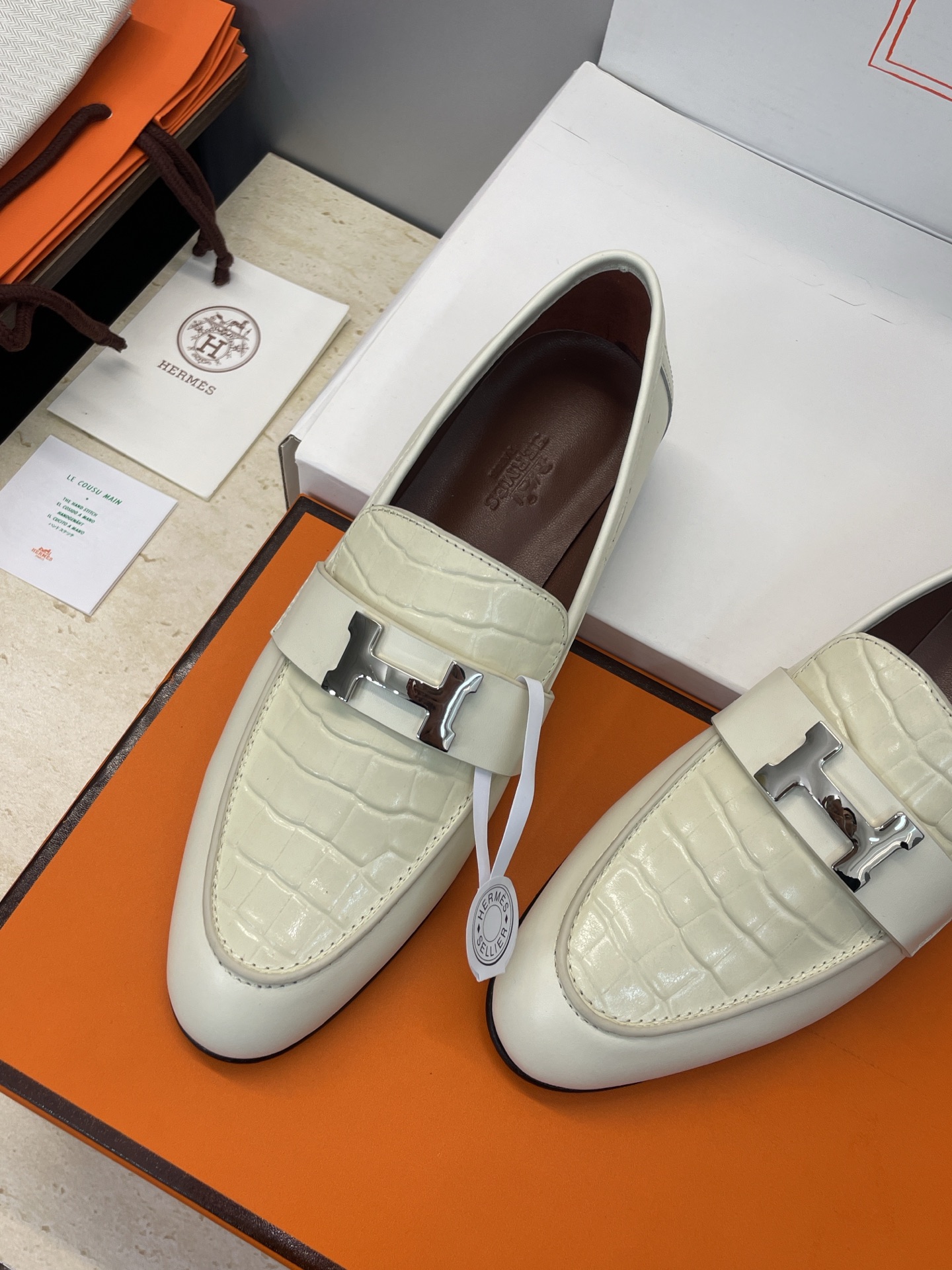 这款鞋子是AAAAA 1:1 质量 (非常棒). 使用了和原版一模一样的材料. 商标部分也保持了和爱马仕/Hermes一样. 图片拍摄是实物鞋子拍摄, 您所收到的实物保证和我们图片一模一样.