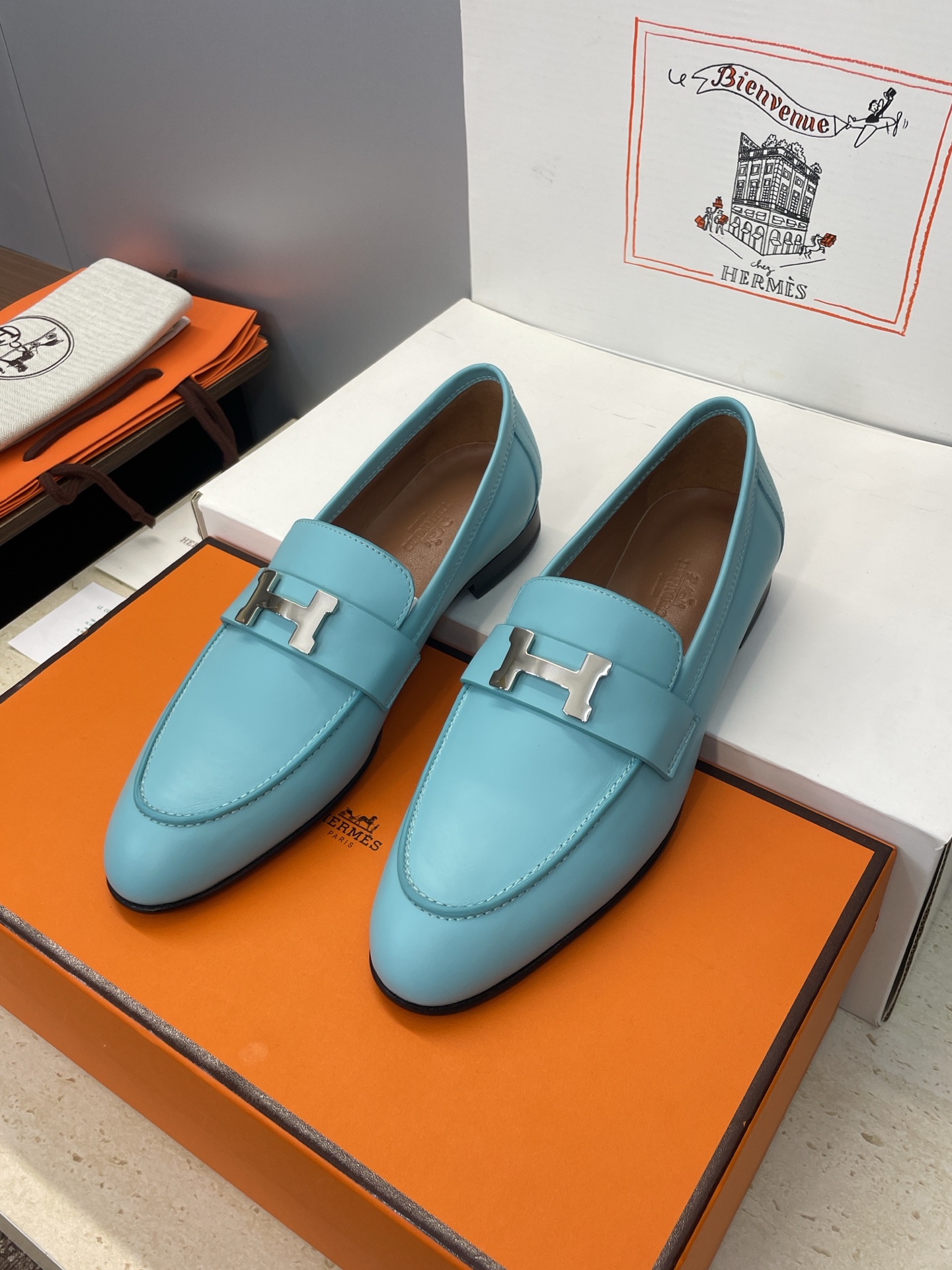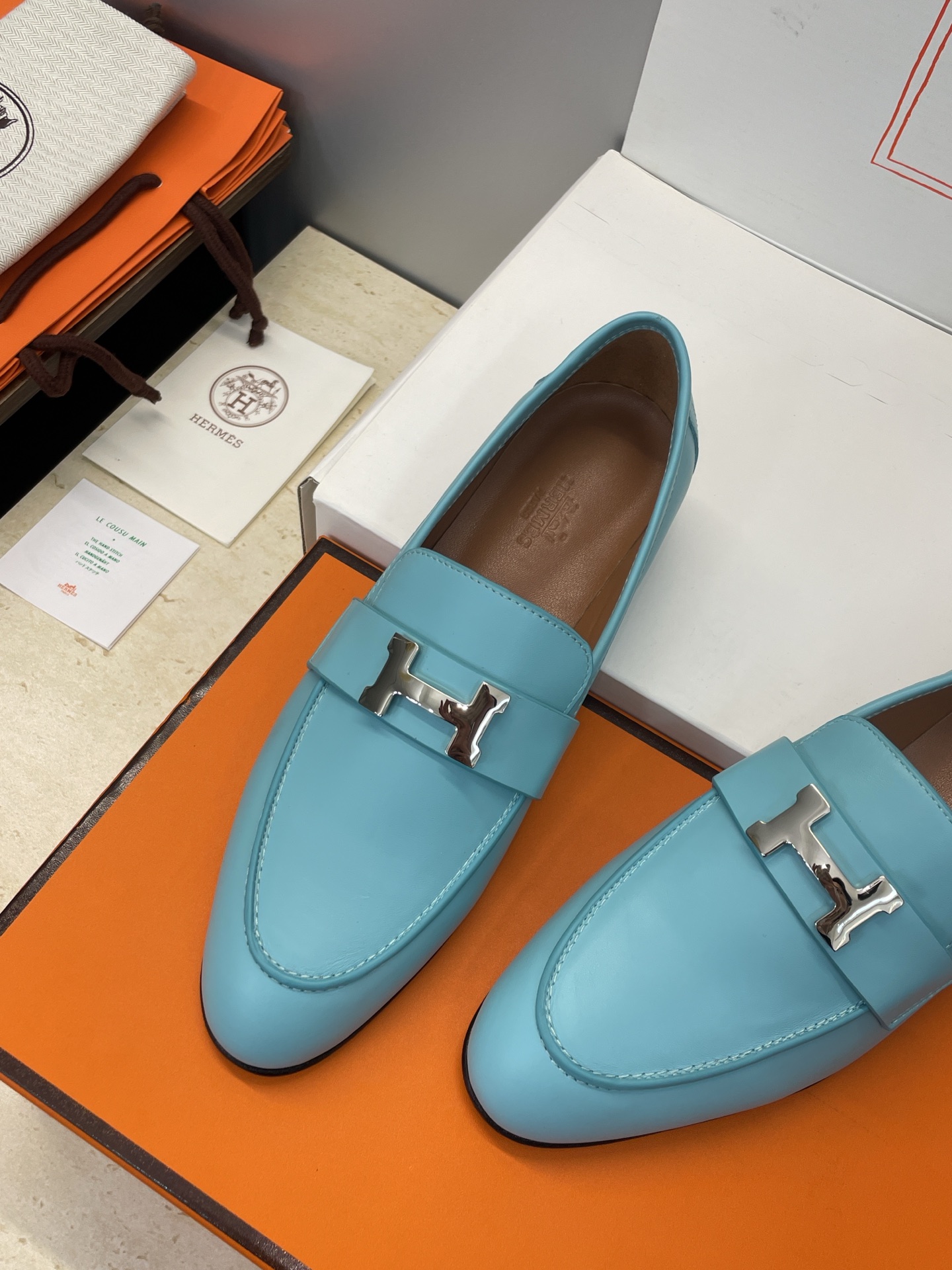 这款鞋子是AAAAA 1:1 质量 (非常棒). 使用了和原版一模一样的材料. 商标部分也保持了和爱马仕/Hermes一样. 图片拍摄是实物鞋子拍摄, 您所收到的实物保证和我们图片一模一样.