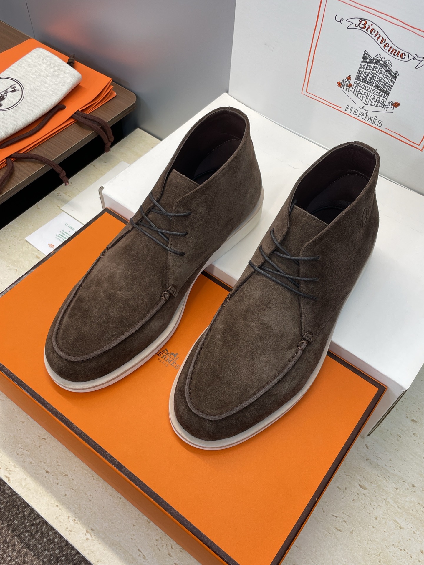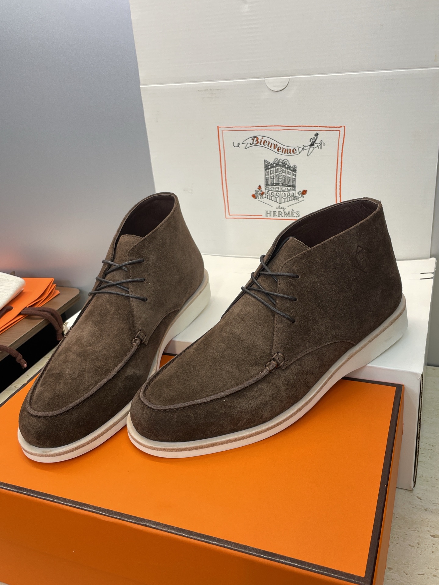 这款鞋子是AAAAA 1:1 质量 (非常棒). 使用了和原版一模一样的材料. 商标部分也保持了和爱马仕/Hermes一样. 图片拍摄是实物鞋子拍摄, 您所收到的实物保证和我们图片一模一样.