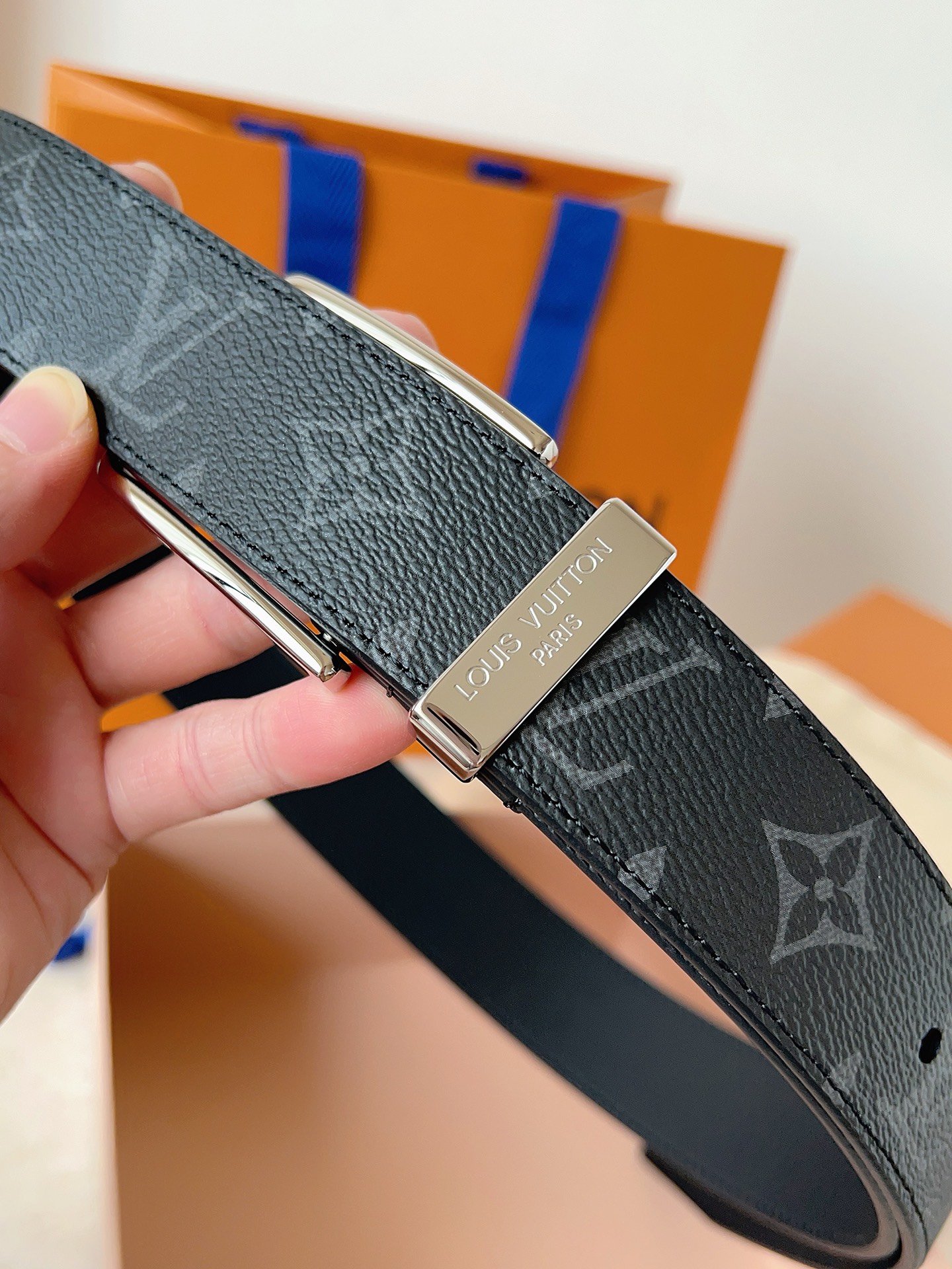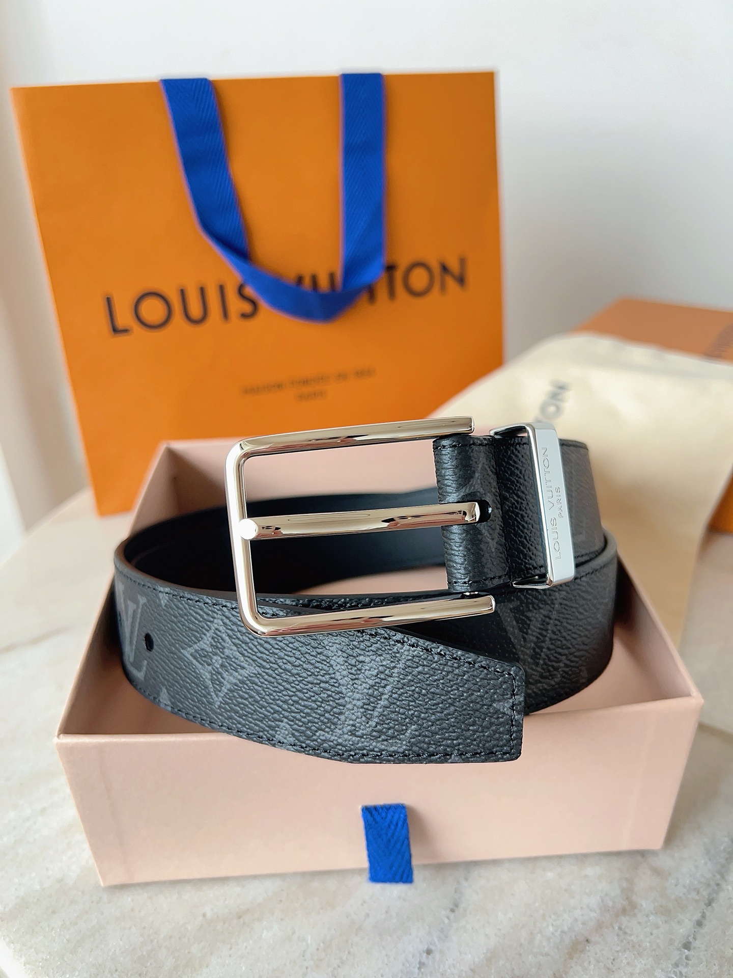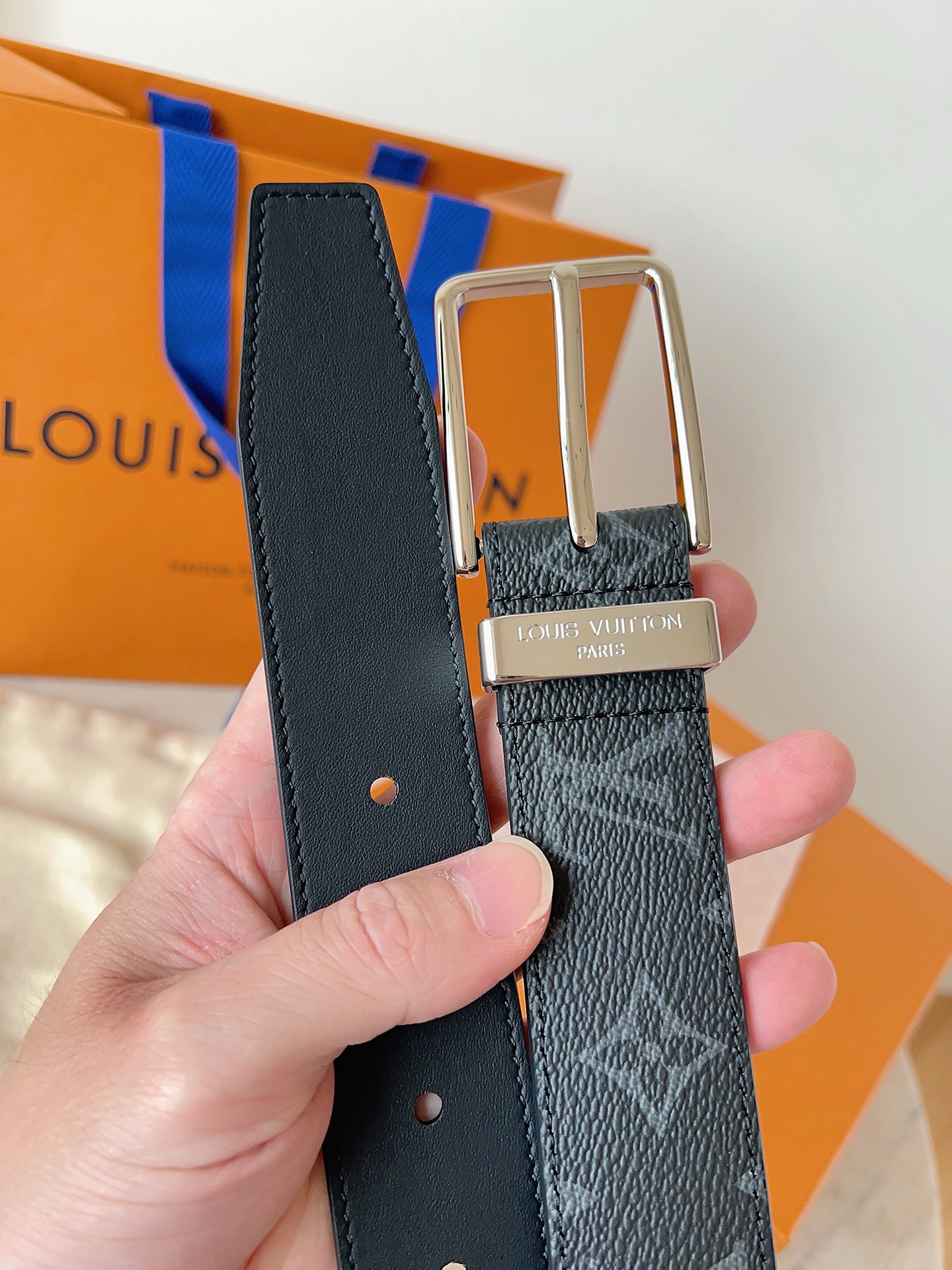 这款皮带是AAAAA 1:1 质量 (非常棒). 使用了和原版一模一样的材料. 商标部分也保持了和路易威登/Louis Vuitton一样. 图片拍摄是实物皮带拍摄, 您所收到的实物保证和我们图片一模一样.