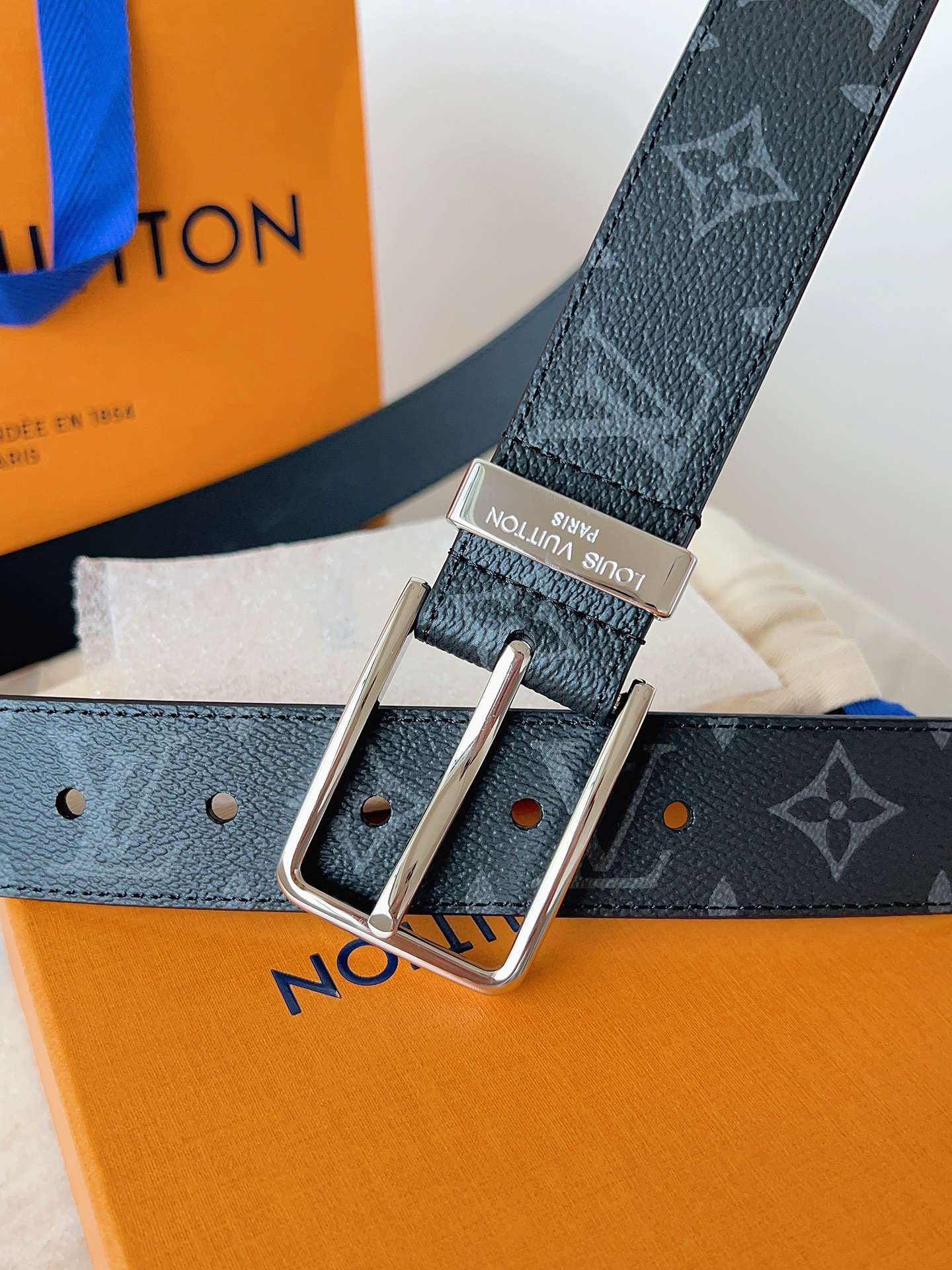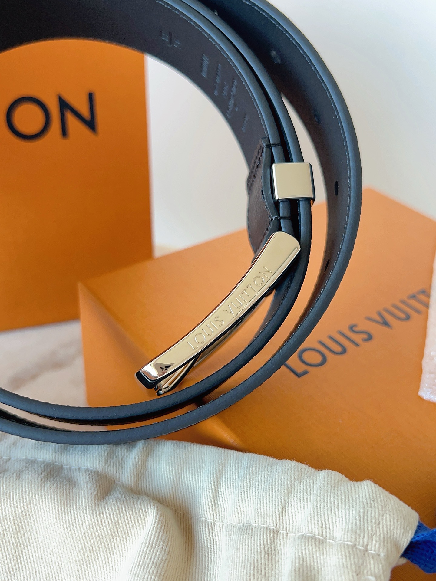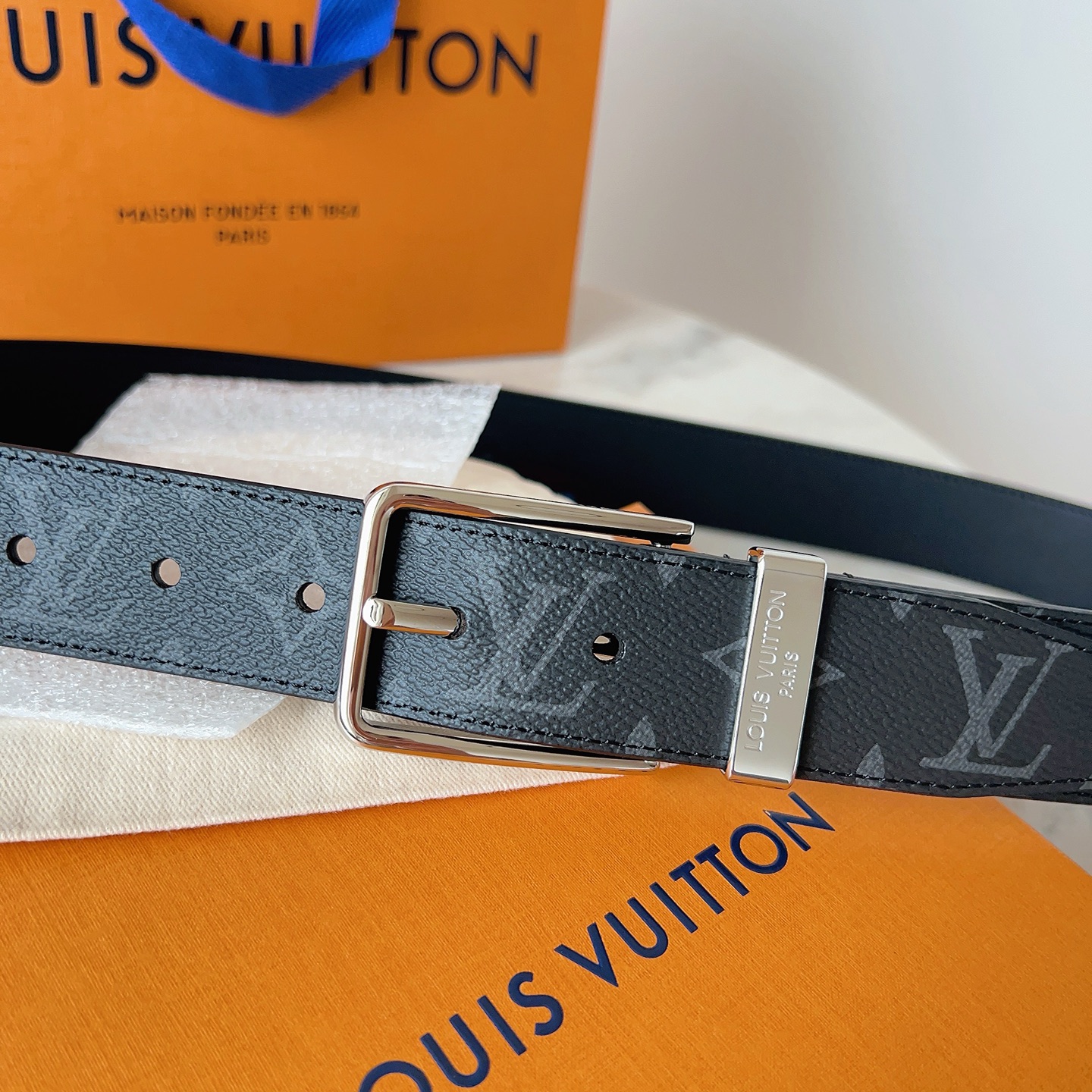 这款皮带是AAAAA 1:1 质量 (非常棒). 使用了和原版一模一样的材料. 商标部分也保持了和路易威登/Louis Vuitton一样. 图片拍摄是实物皮带拍摄, 您所收到的实物保证和我们图片一模一样.
