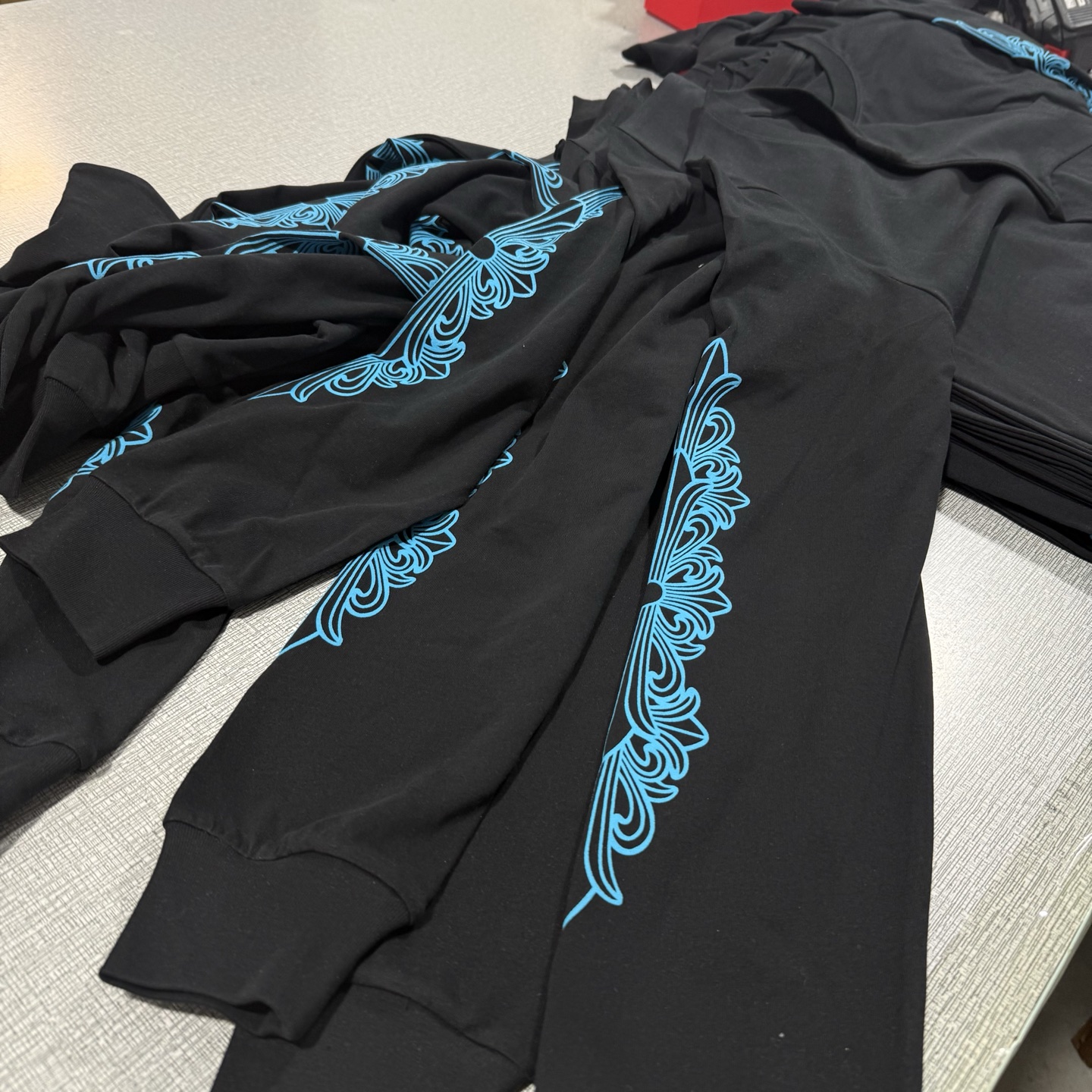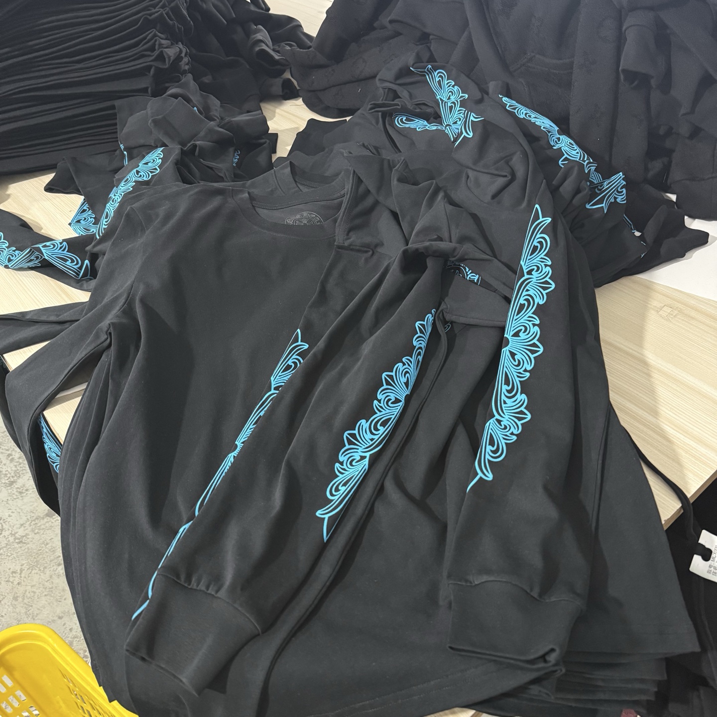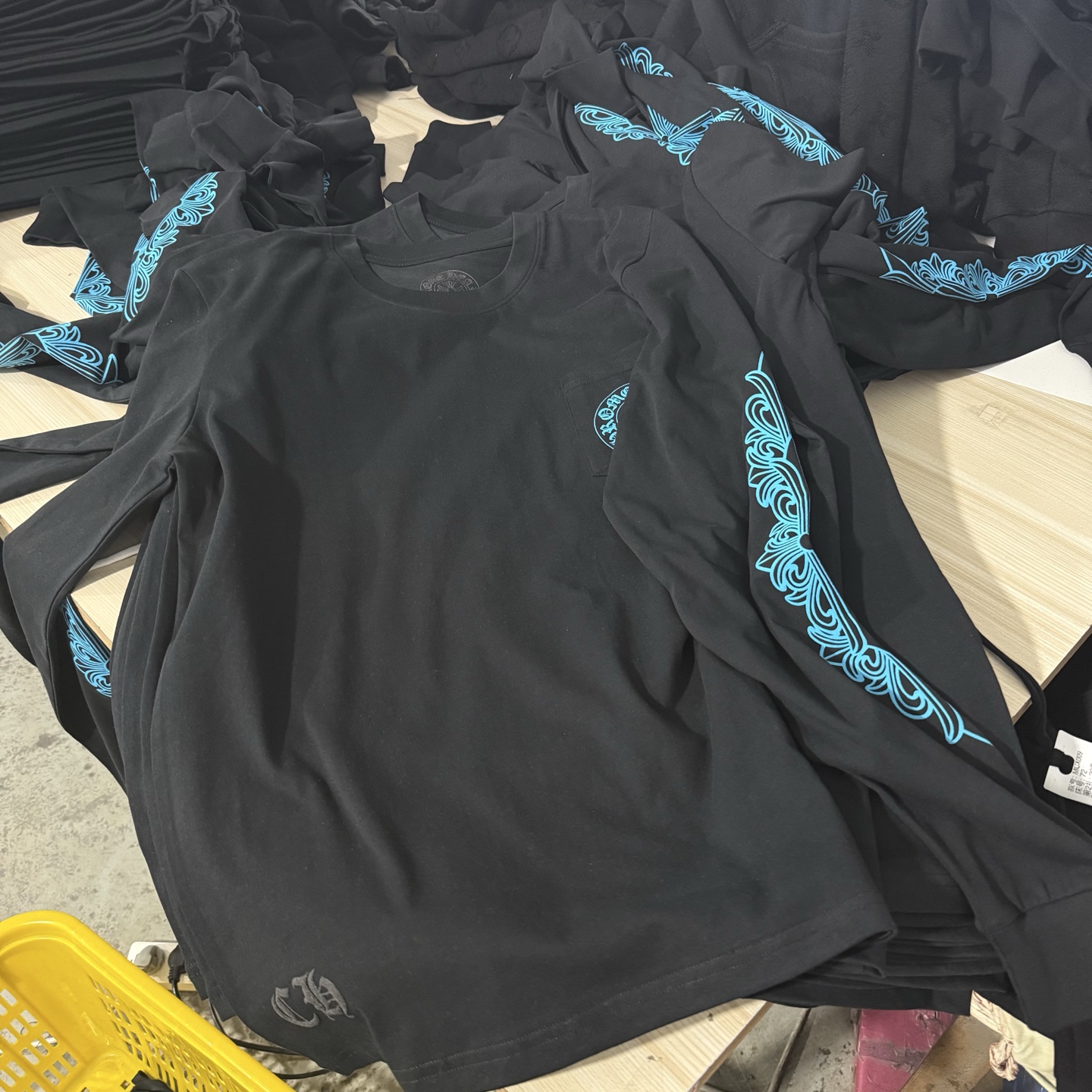 这款衣服是AAAAA 1:1 质量 (非常棒). 使用了和原版一模一样的材料. 商标部分也保持了和克罗心/Chrome Hearts一样. 图片拍摄是实物衣服拍摄, 您所收到的实物保证和我们图片一模一样.