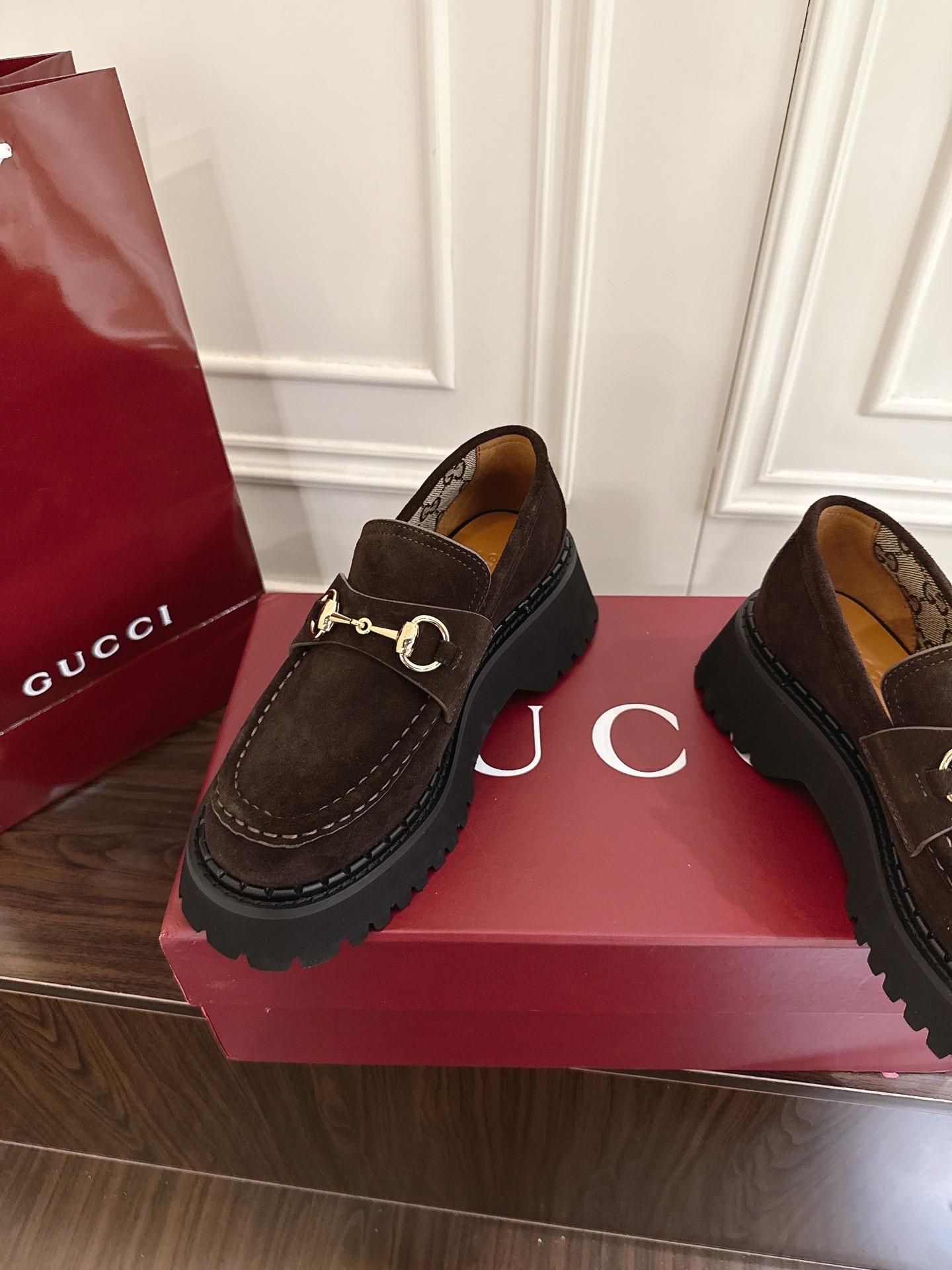 这款鞋子是AAAAA 1:1 质量 (非常棒). 使用了和原版一模一样的材料. 商标部分也保持了和古奇/Gucci一样. 图片拍摄是实物鞋子拍摄, 您所收到的实物保证和我们图片一模一样.