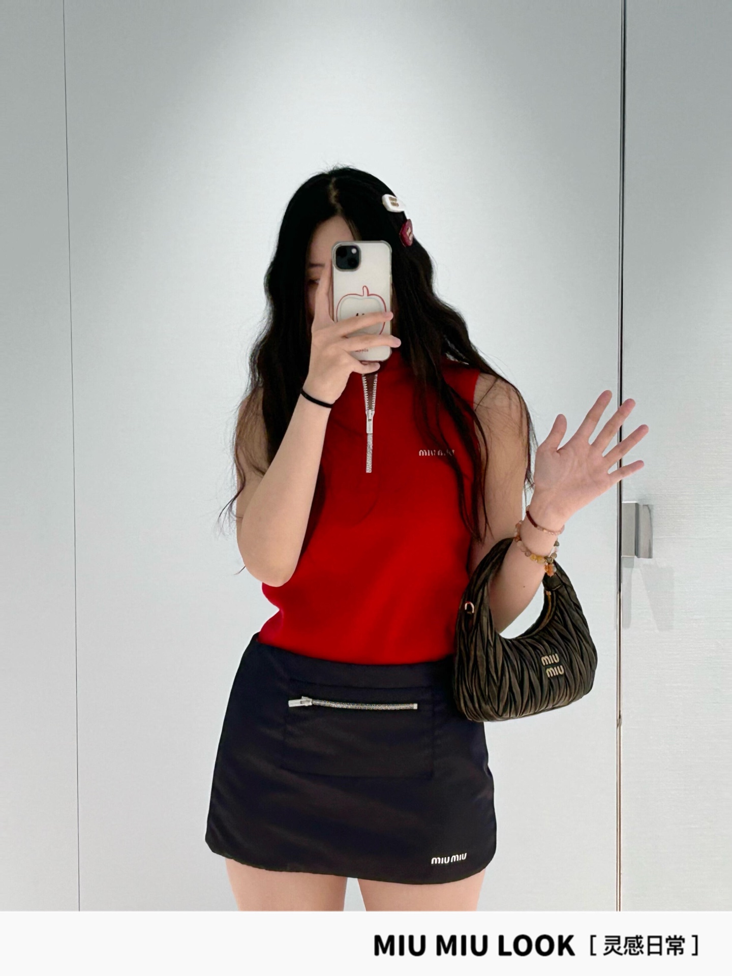 这款衣服是AAAAA 1:1 质量 (非常棒). 使用了和原版一模一样的材料. 商标部分也保持了和缪缪/Miu Miu一样. 图片拍摄是实物衣服拍摄, 您所收到的实物保证和我们图片一模一样.