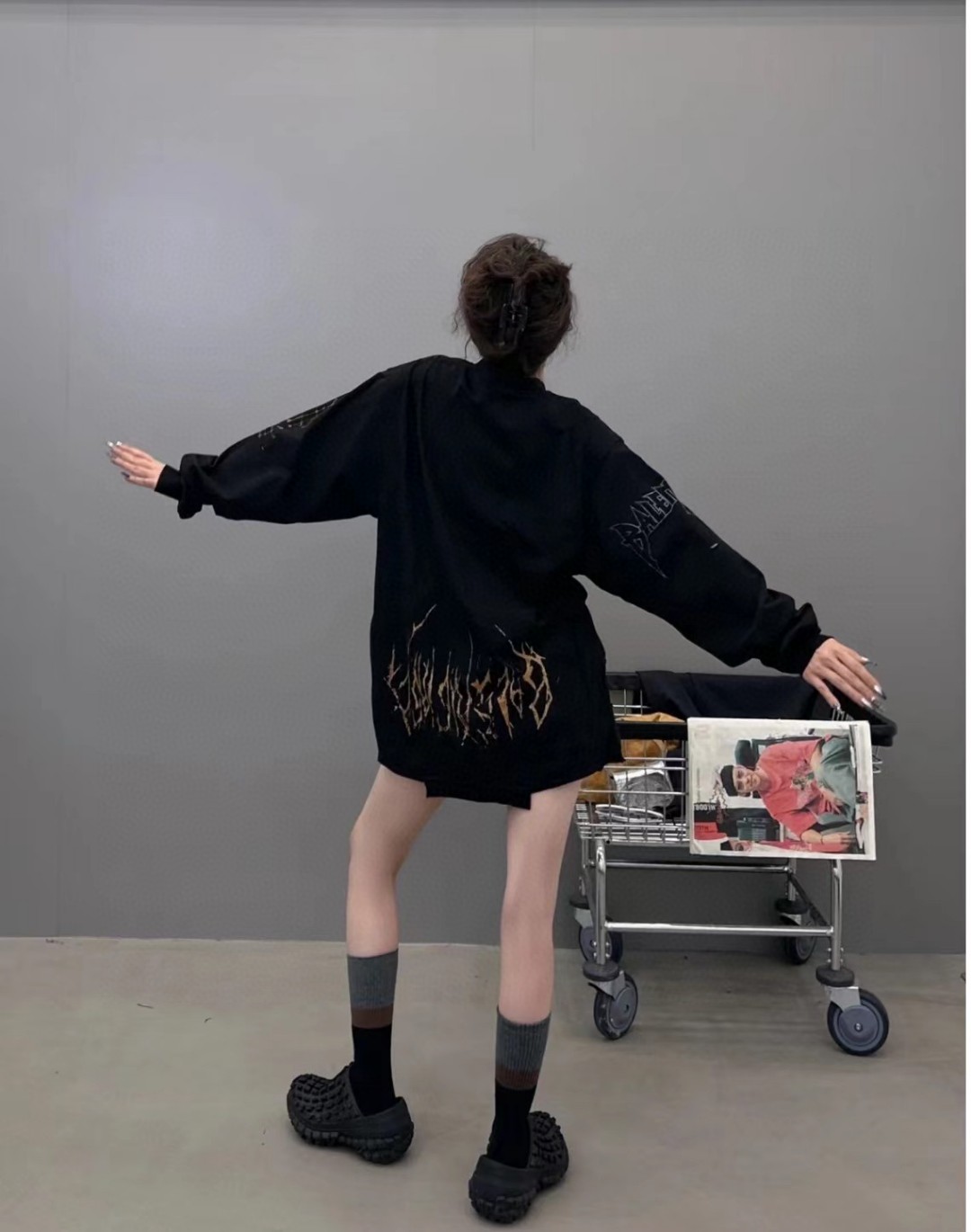 这款衣服是AAAAA 1:1 质量 (非常棒). 使用了和原版一模一样的材料. 商标部分也保持了和巴黎世家/Balenciaga一样. 图片拍摄是实物衣服拍摄, 您所收到的实物保证和我们图片一模一样.