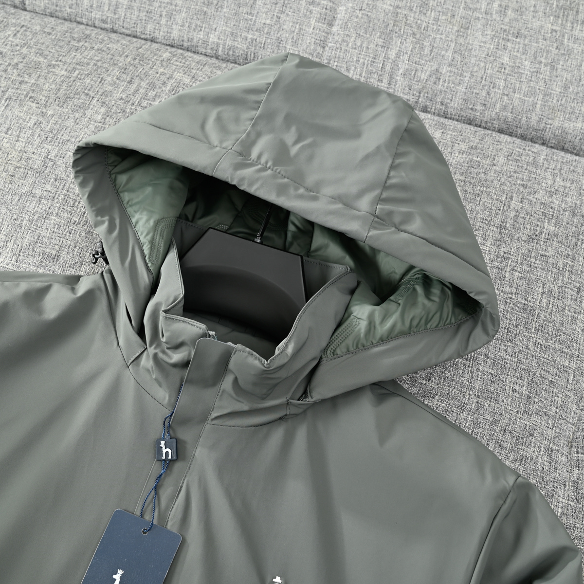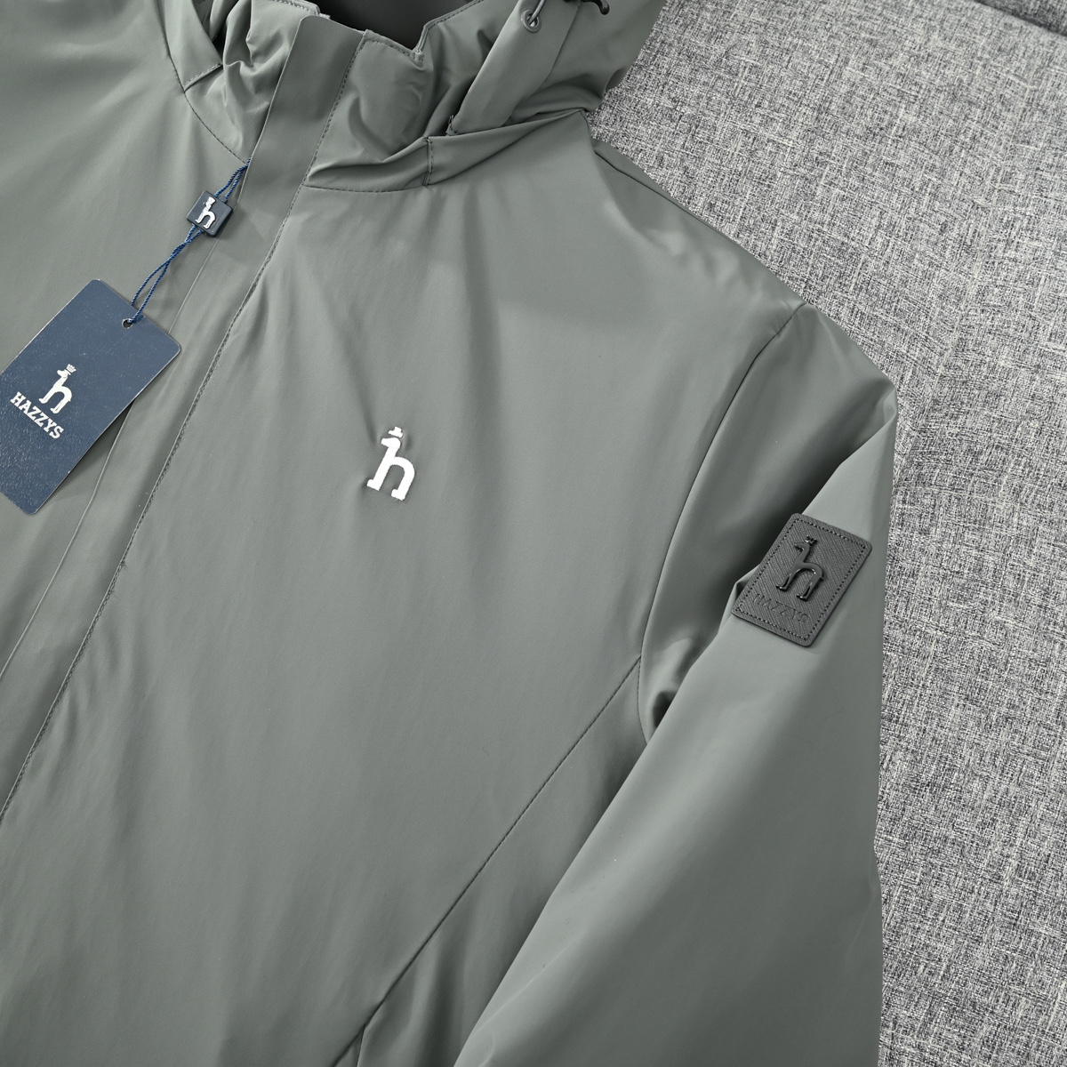 这款衣服是AAAAA 1:1 质量 (非常棒). 使用了和原版一模一样的材料. 商标部分也保持了和Hazzys一样. 图片拍摄是实物衣服拍摄, 您所收到的实物保证和我们图片一模一样.