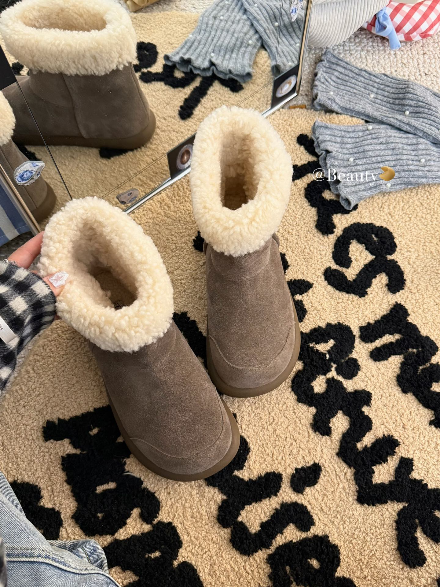 这款鞋子是AAAAA 1:1 质量 (非常棒). 使用了和原版一模一样的材料. 商标部分也保持了和UGG雪地靴一样. 图片拍摄是实物鞋子拍摄, 您所收到的实物保证和我们图片一模一样.