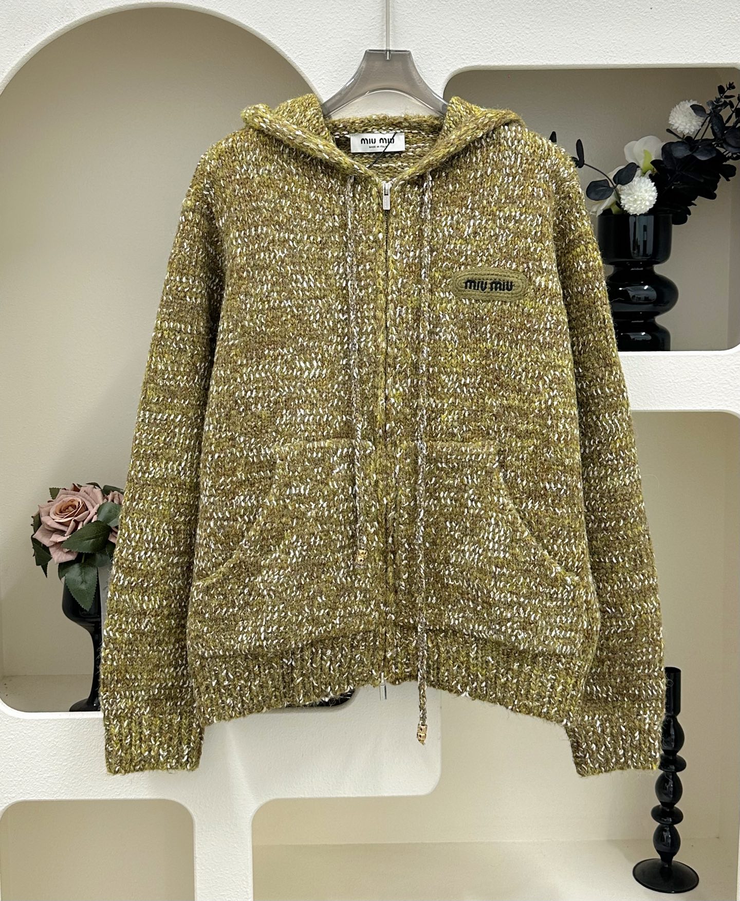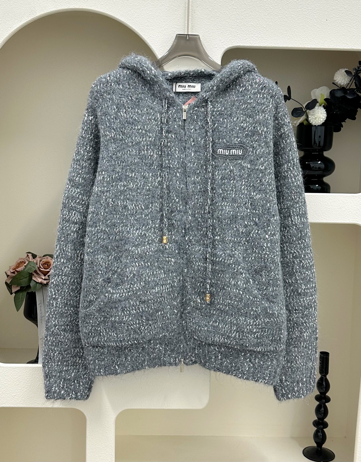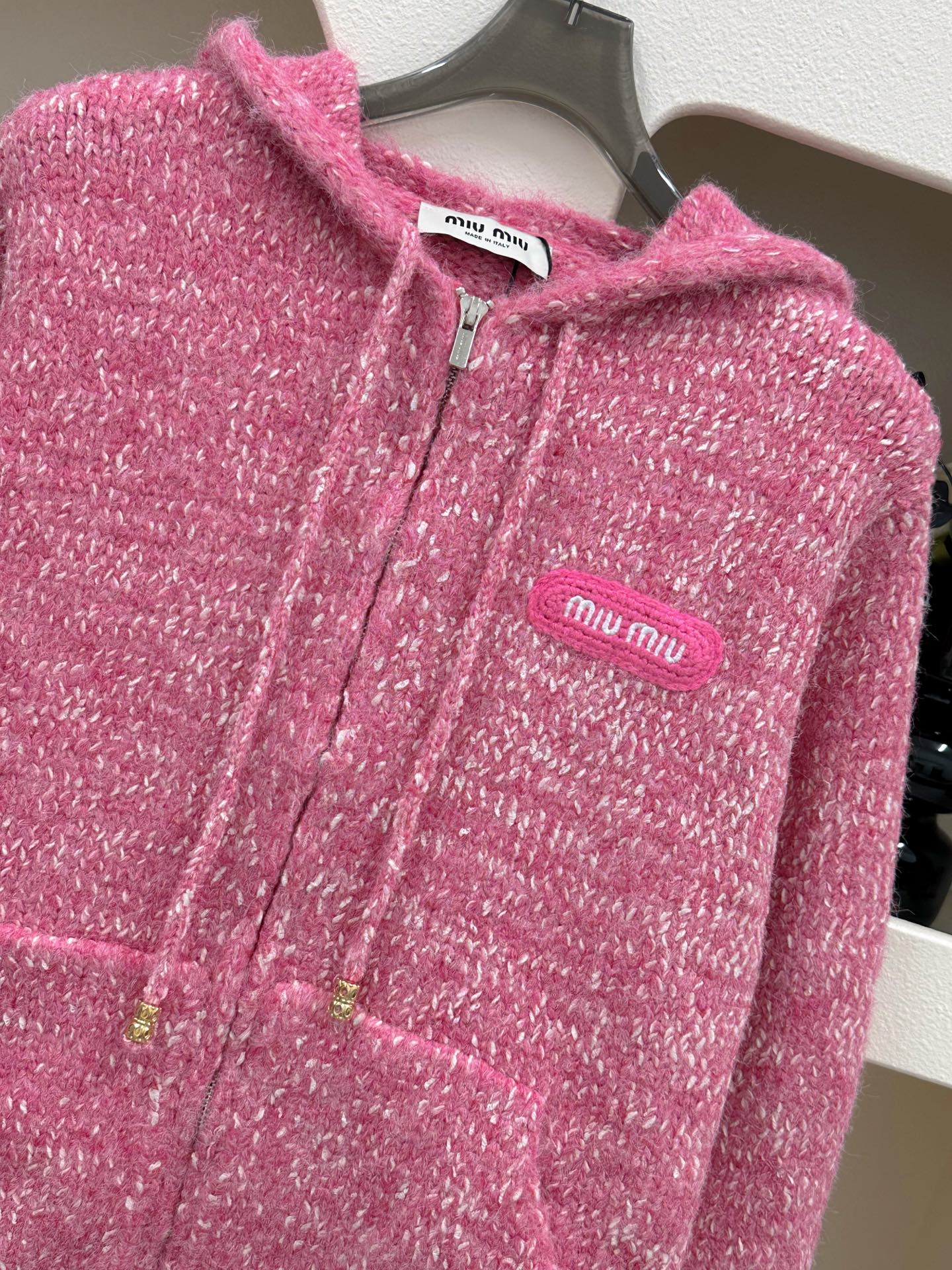 这款衣服是AAAAA 1:1 质量 (非常棒). 使用了和原版一模一样的材料. 商标部分也保持了和缪缪/Miu Miu一样. 图片拍摄是实物衣服拍摄, 您所收到的实物保证和我们图片一模一样.