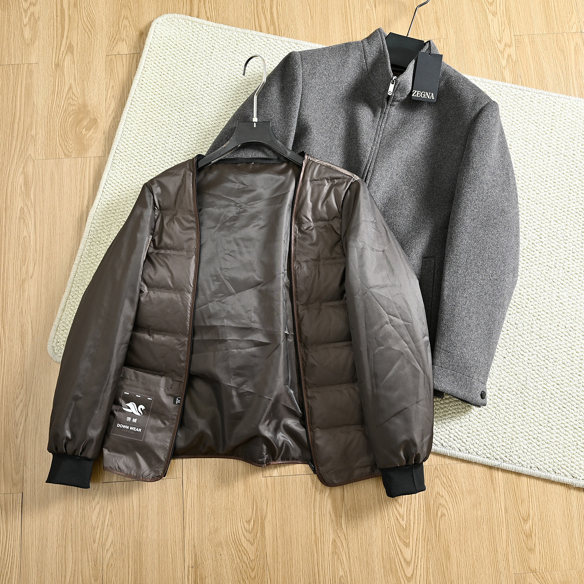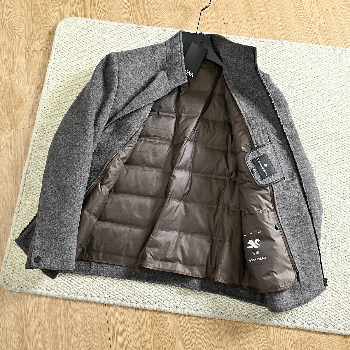 这款衣服是AAAAA 1:1 质量 (非常棒). 使用了和原版一模一样的材料. 商标部分也保持了和杰尼亚/Zegna一样. 图片拍摄是实物衣服拍摄, 您所收到的实物保证和我们图片一模一样.