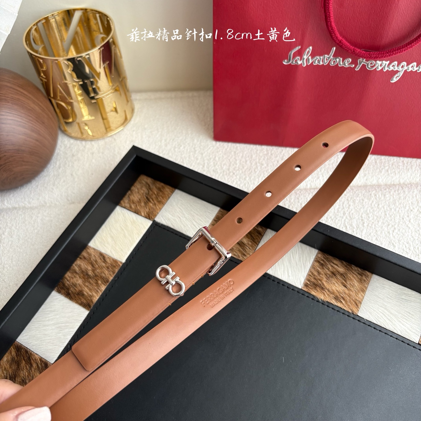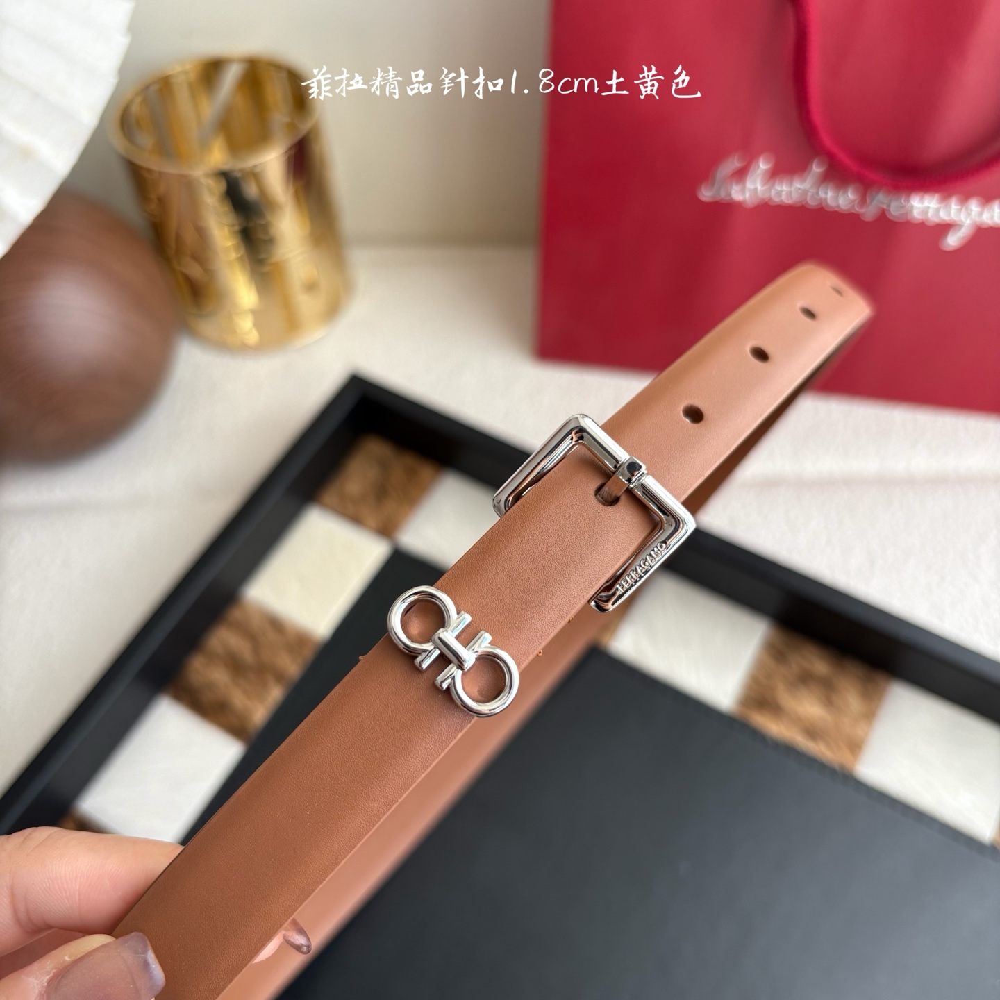 这款皮带是AAAAA 1:1 质量 (非常棒). 使用了和原版一模一样的材料. 商标部分也保持了和菲拉格慕/Salvatore Ferragamo一样. 图片拍摄是实物皮带拍摄, 您所收到的实物保证和我们图片一模一样.