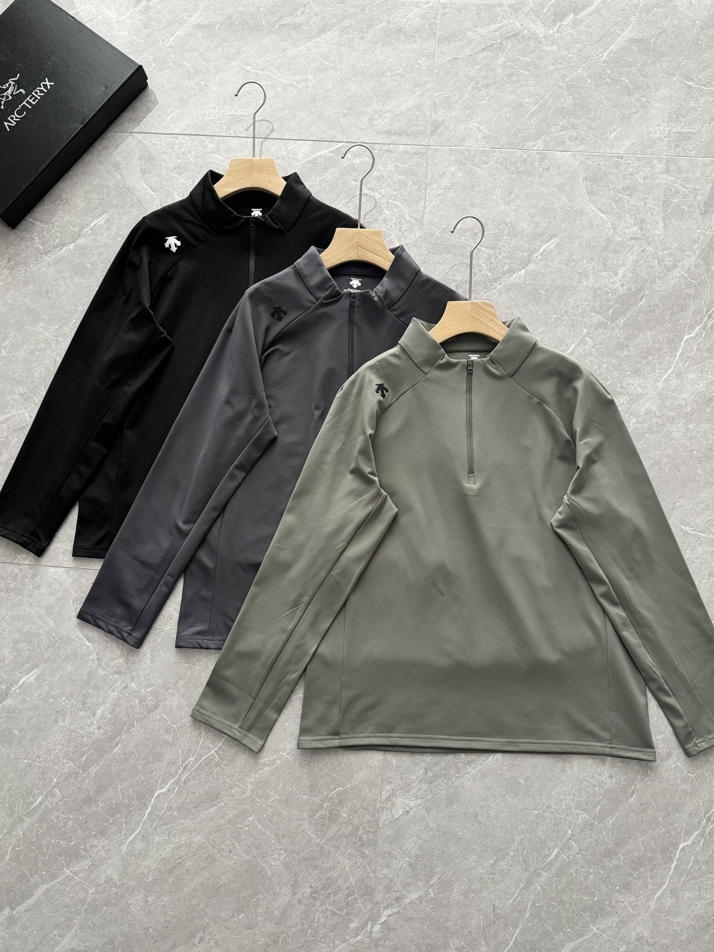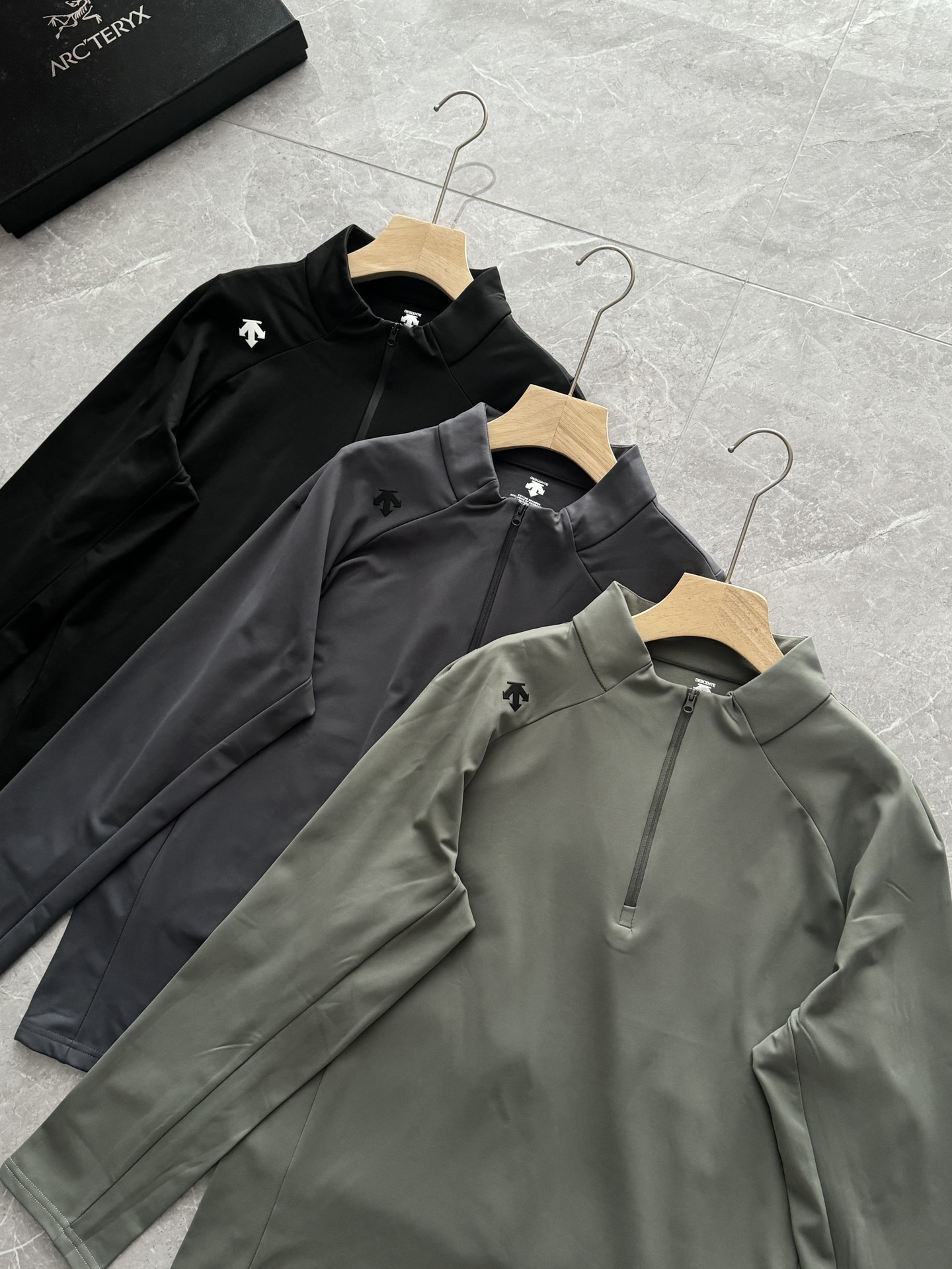 这款衣服是AAAAA 1:1 质量 (非常棒). 使用了和原版一模一样的材料. 商标部分也保持了和Descente一样. 图片拍摄是实物衣服拍摄, 您所收到的实物保证和我们图片一模一样.