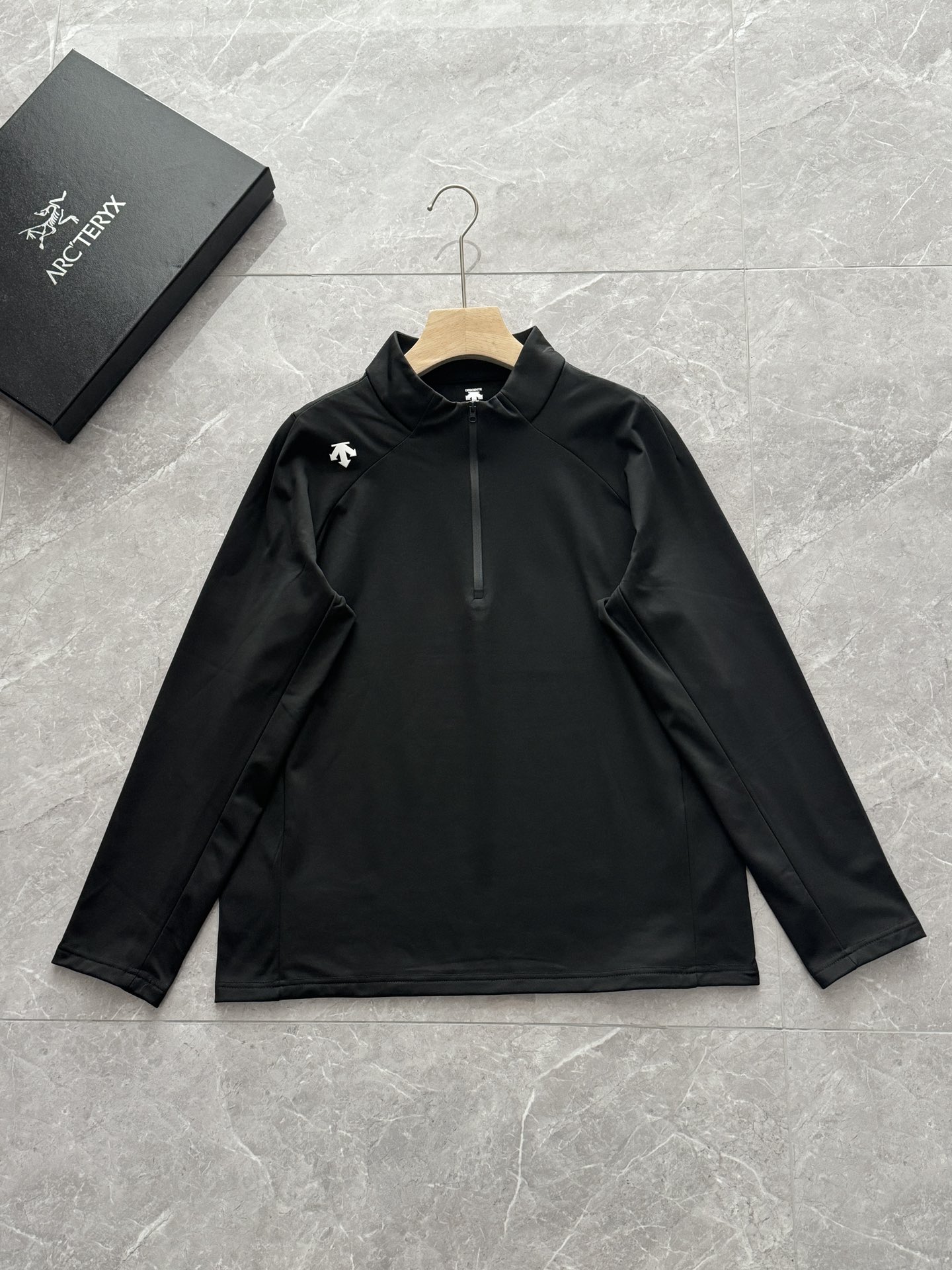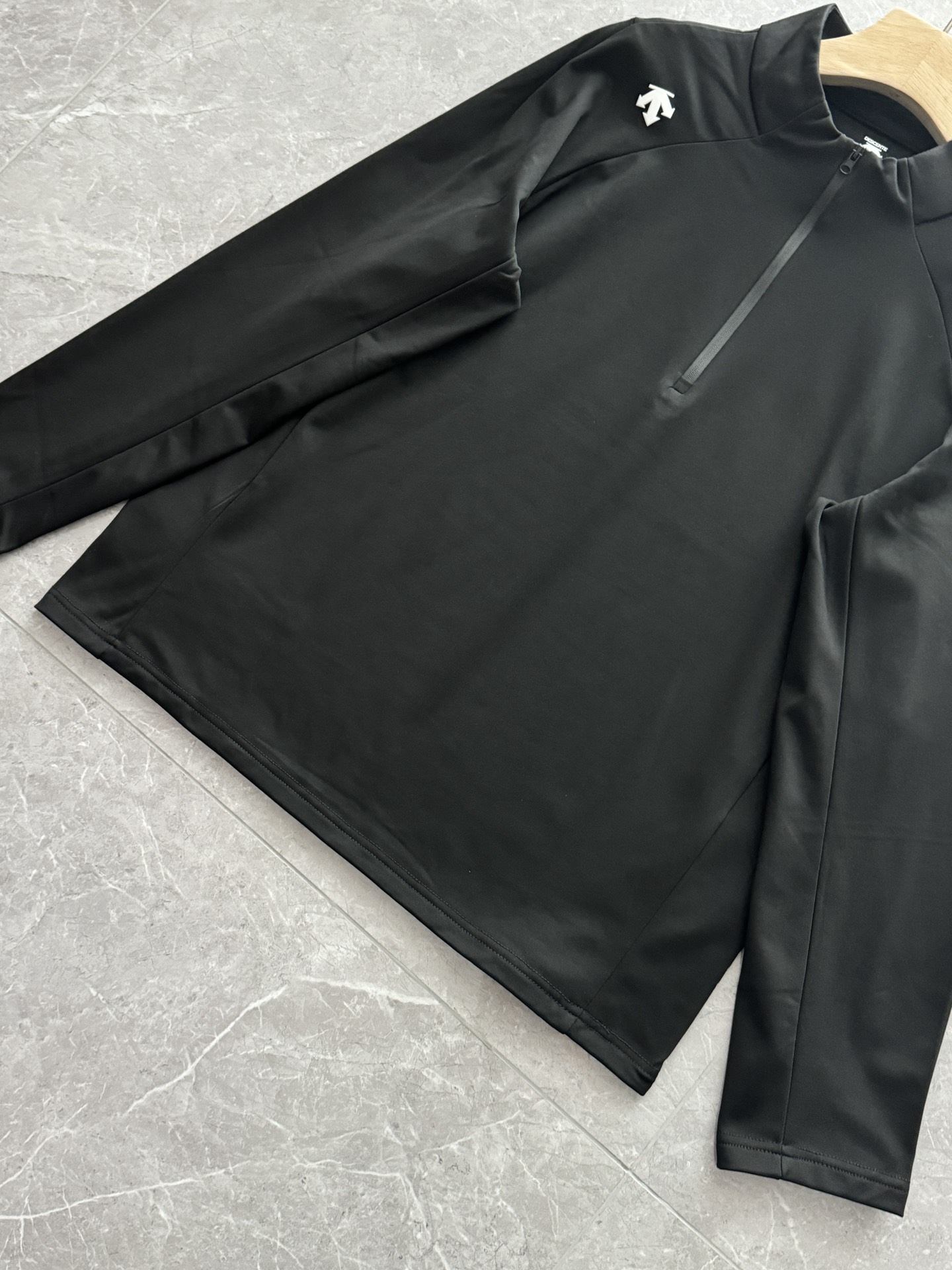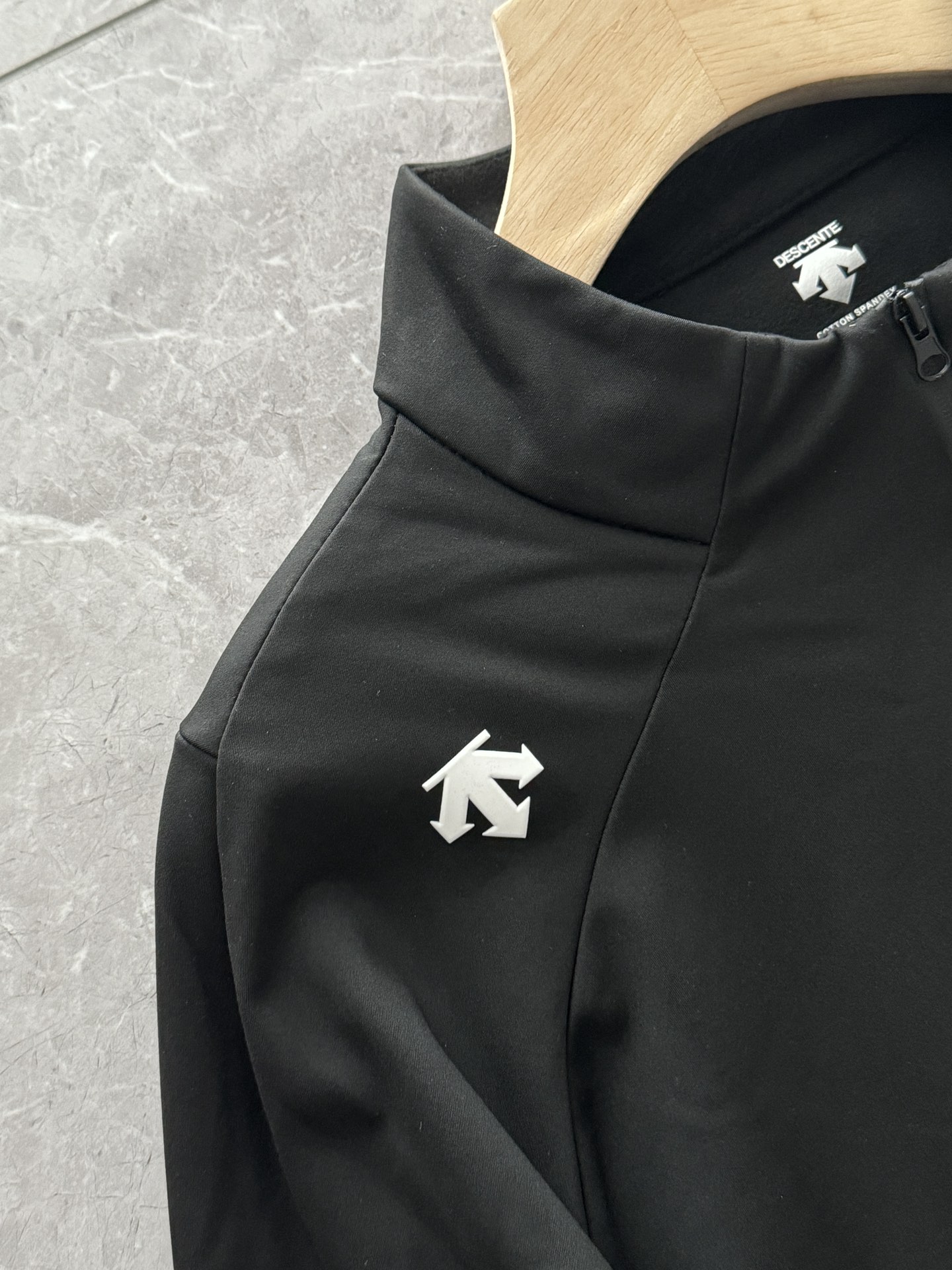 这款衣服是AAAAA 1:1 质量 (非常棒). 使用了和原版一模一样的材料. 商标部分也保持了和Descente一样. 图片拍摄是实物衣服拍摄, 您所收到的实物保证和我们图片一模一样.