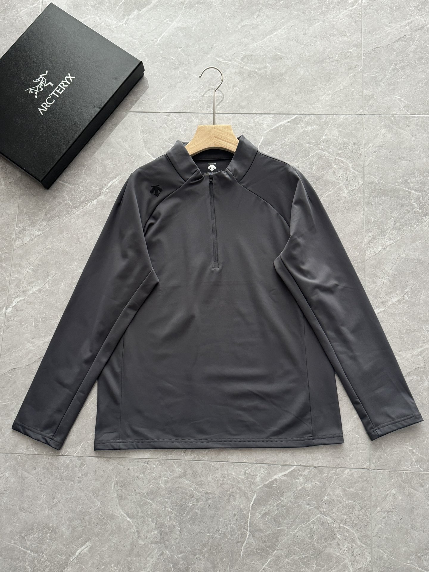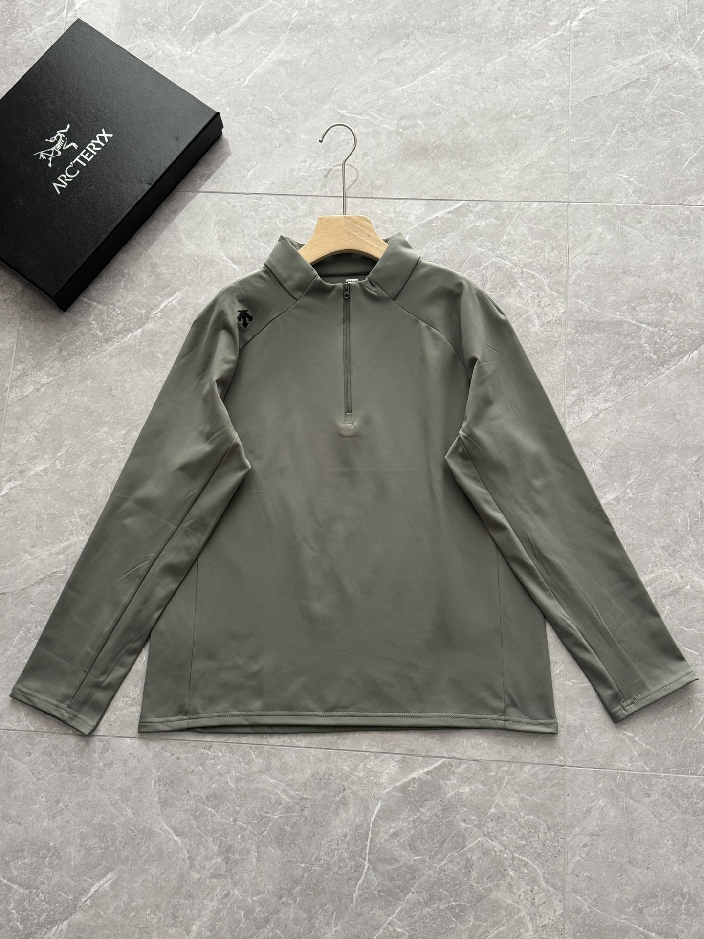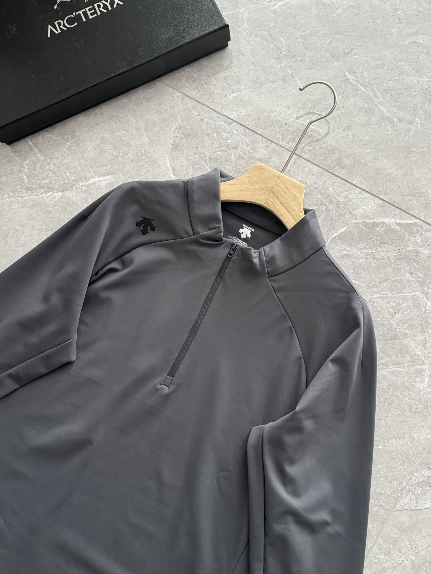 这款衣服是AAAAA 1:1 质量 (非常棒). 使用了和原版一模一样的材料. 商标部分也保持了和Descente一样. 图片拍摄是实物衣服拍摄, 您所收到的实物保证和我们图片一模一样.
