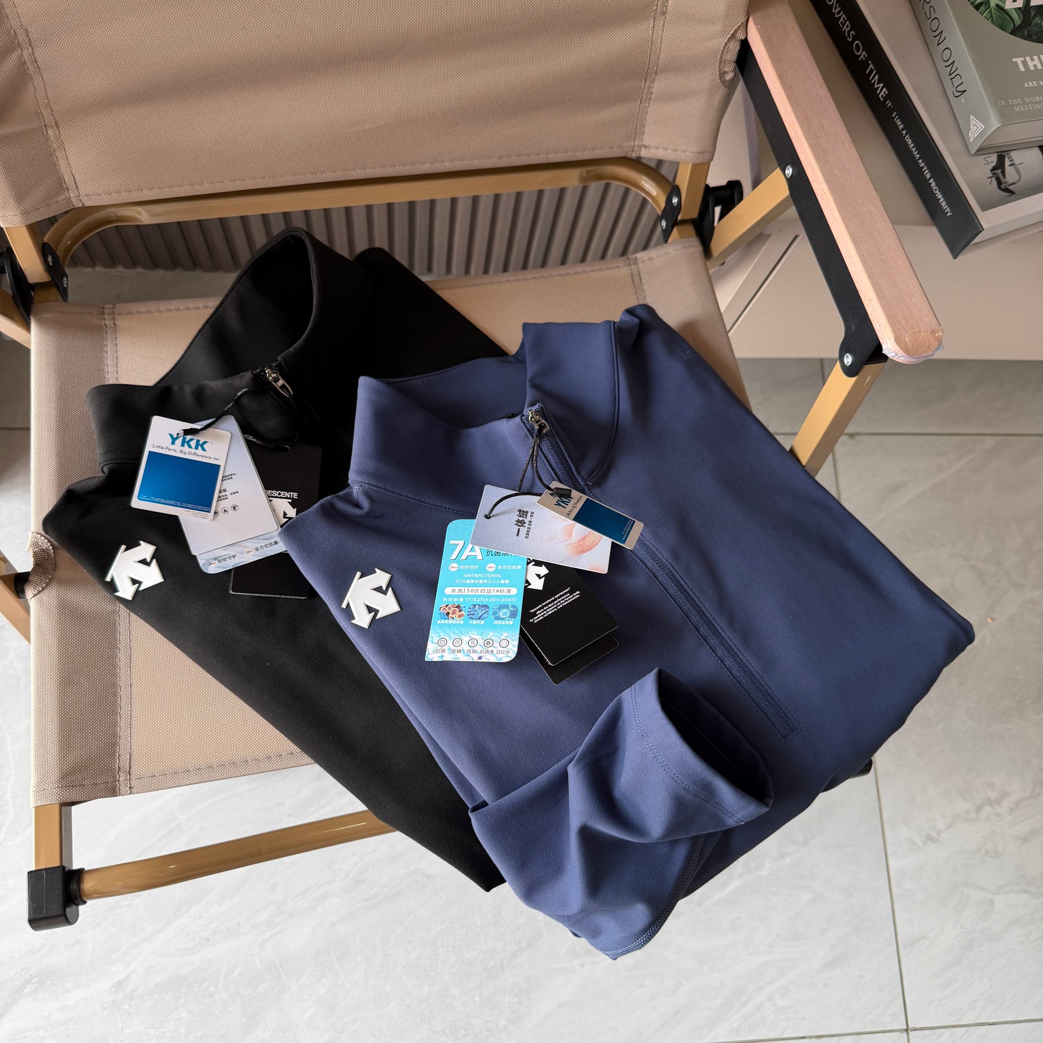 这款衣服是AAAAA 1:1 质量 (非常棒). 使用了和原版一模一样的材料. 商标部分也保持了和Descente一样. 图片拍摄是实物衣服拍摄, 您所收到的实物保证和我们图片一模一样.