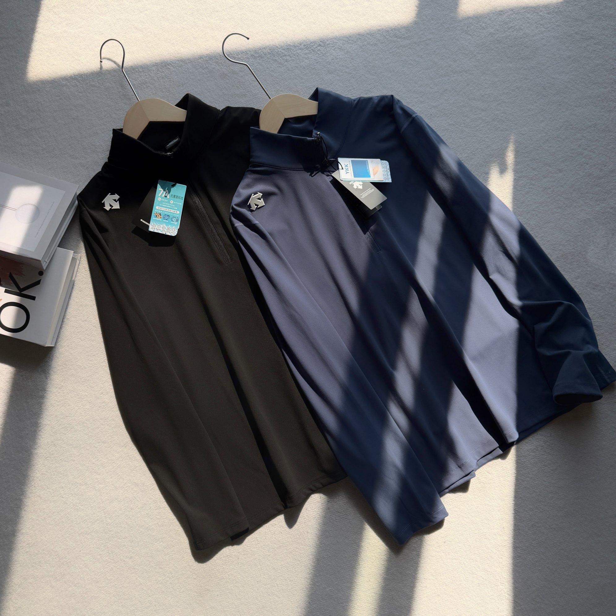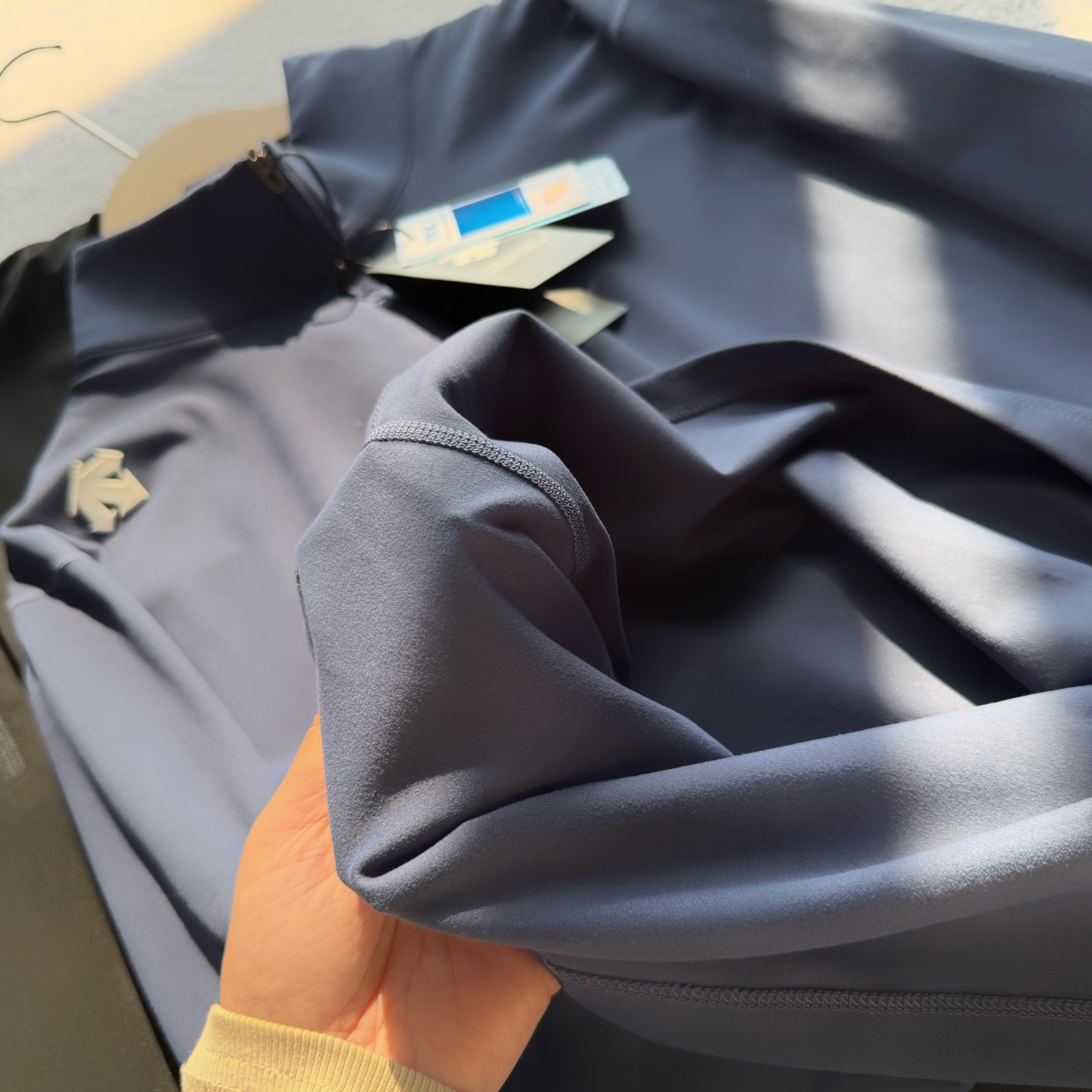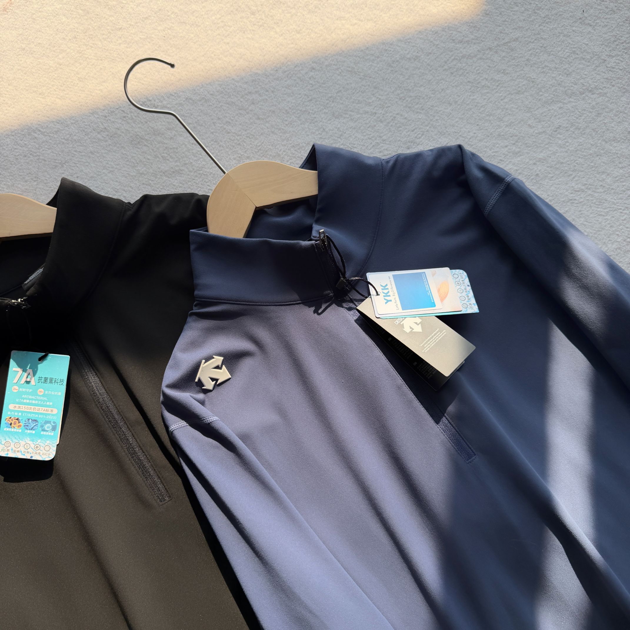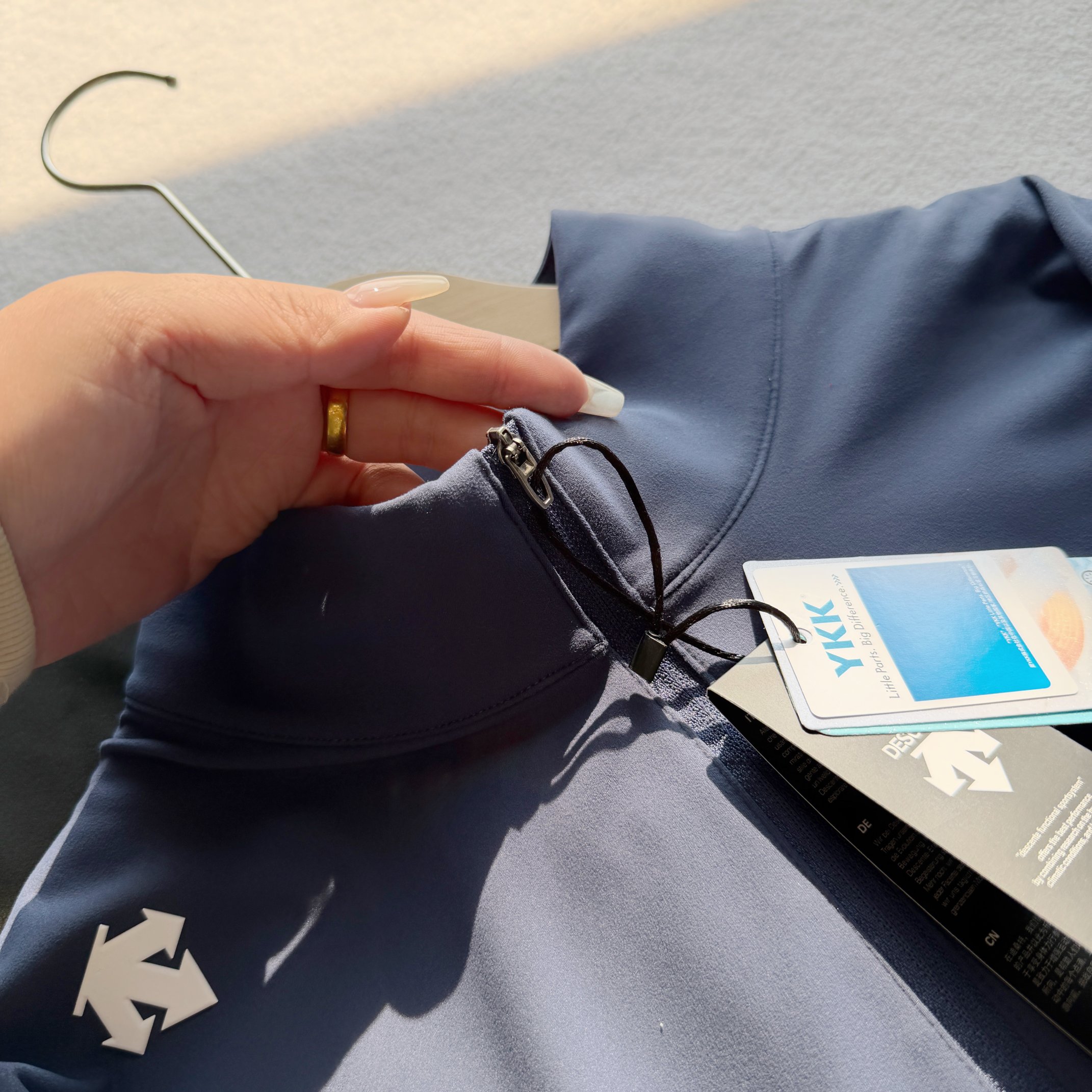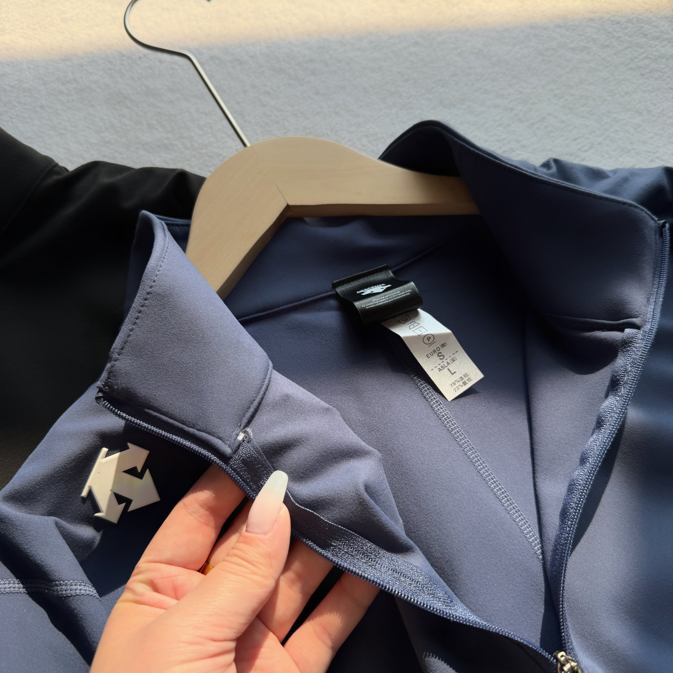 这款衣服是AAAAA 1:1 质量 (非常棒). 使用了和原版一模一样的材料. 商标部分也保持了和Descente一样. 图片拍摄是实物衣服拍摄, 您所收到的实物保证和我们图片一模一样.