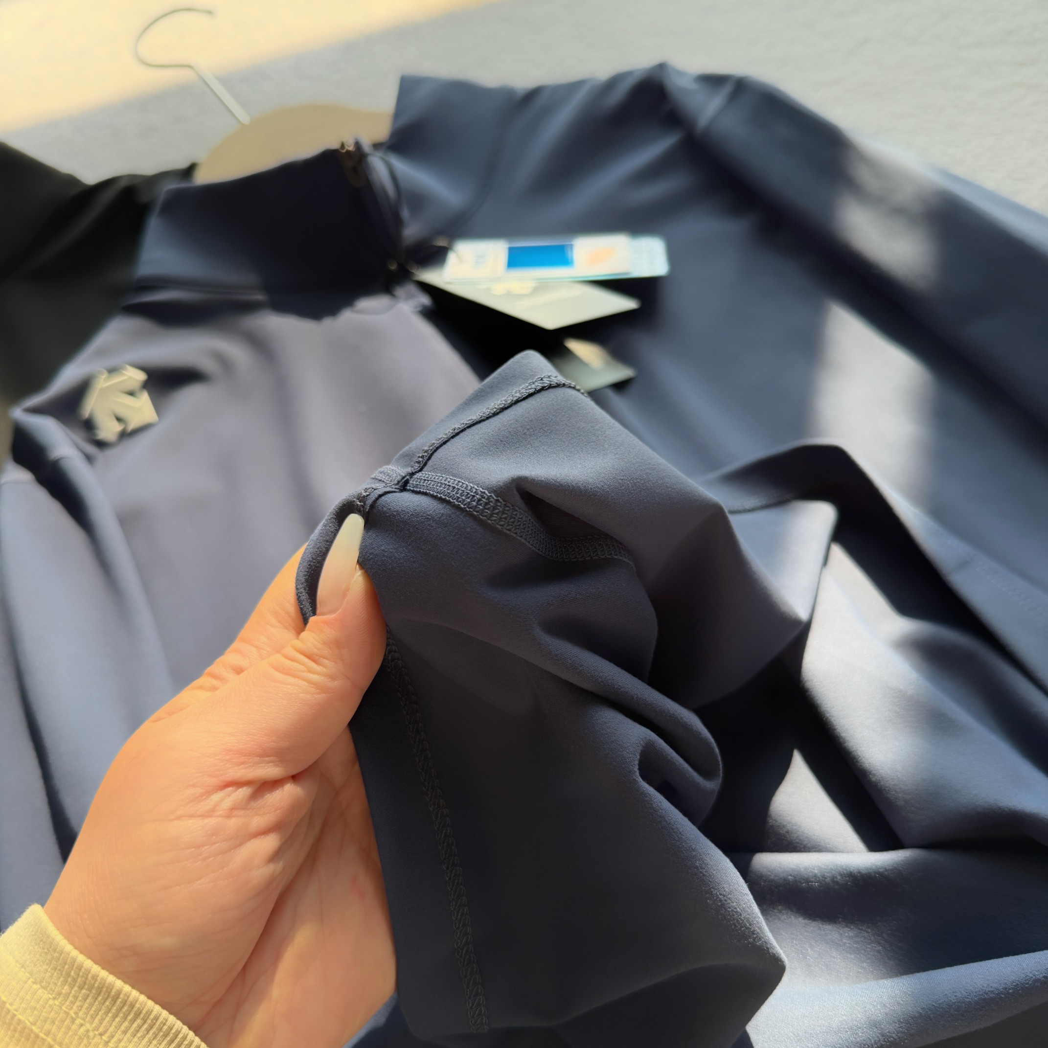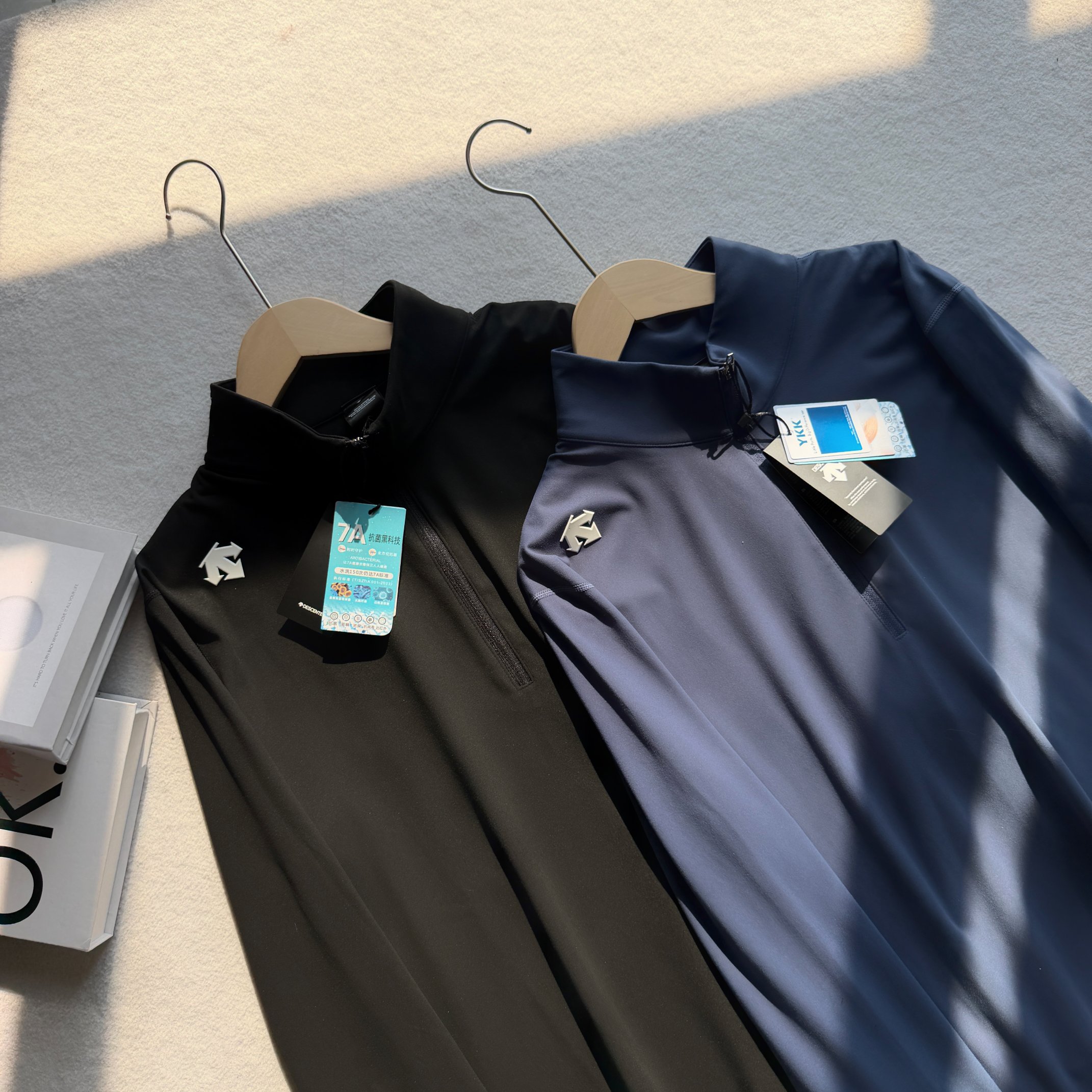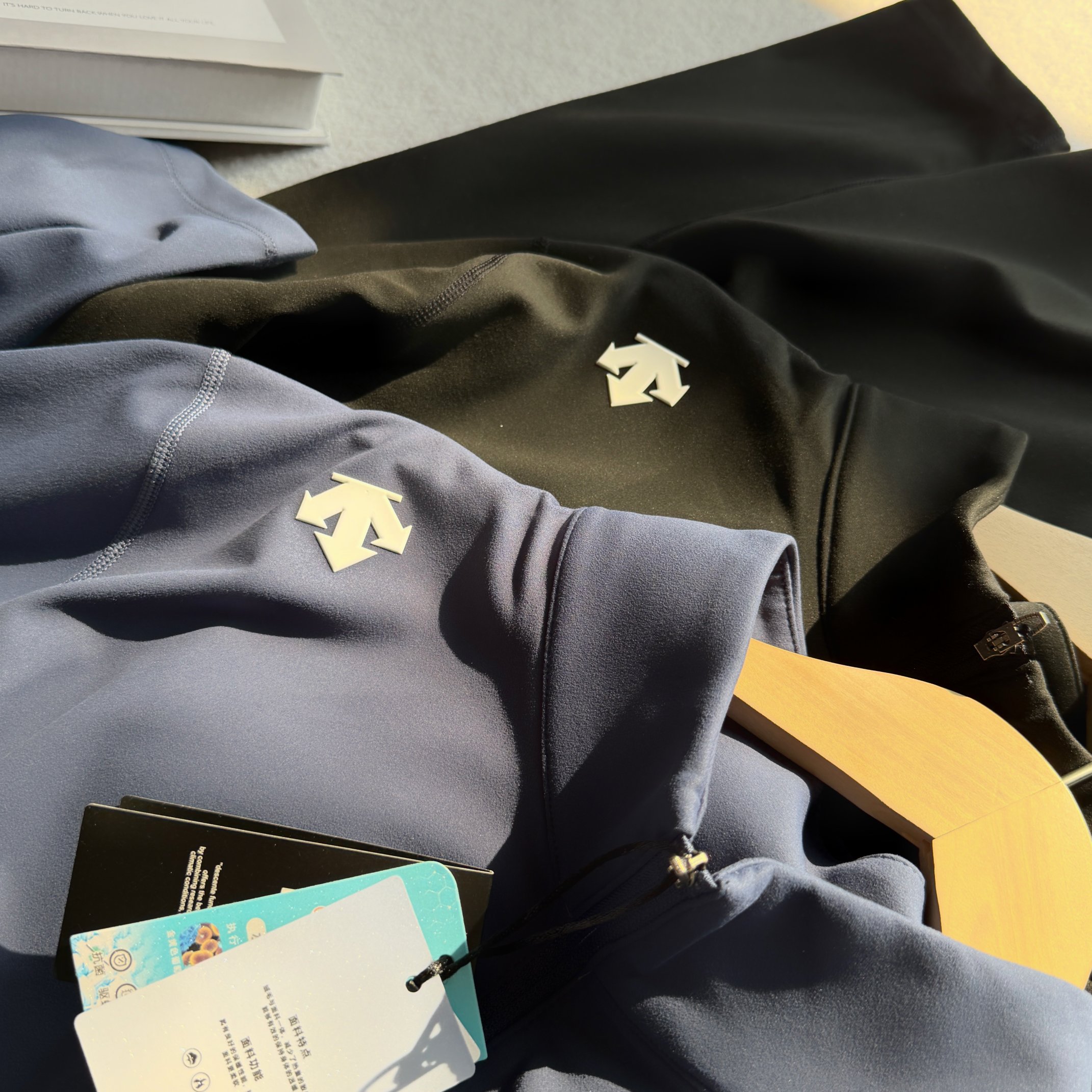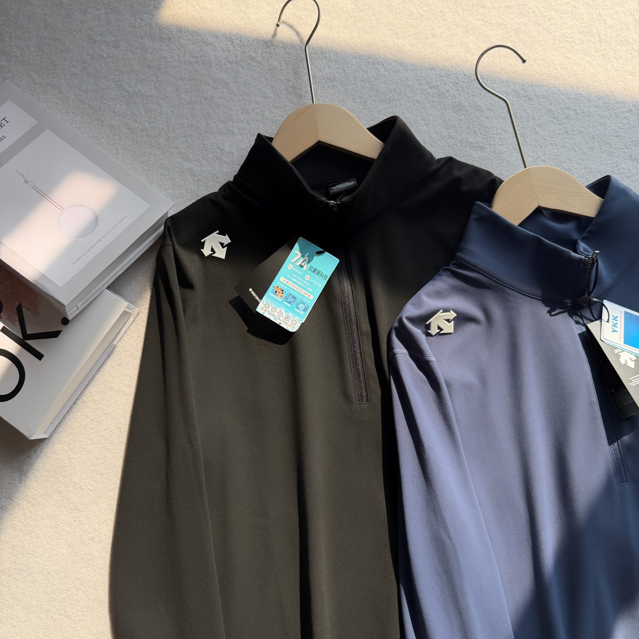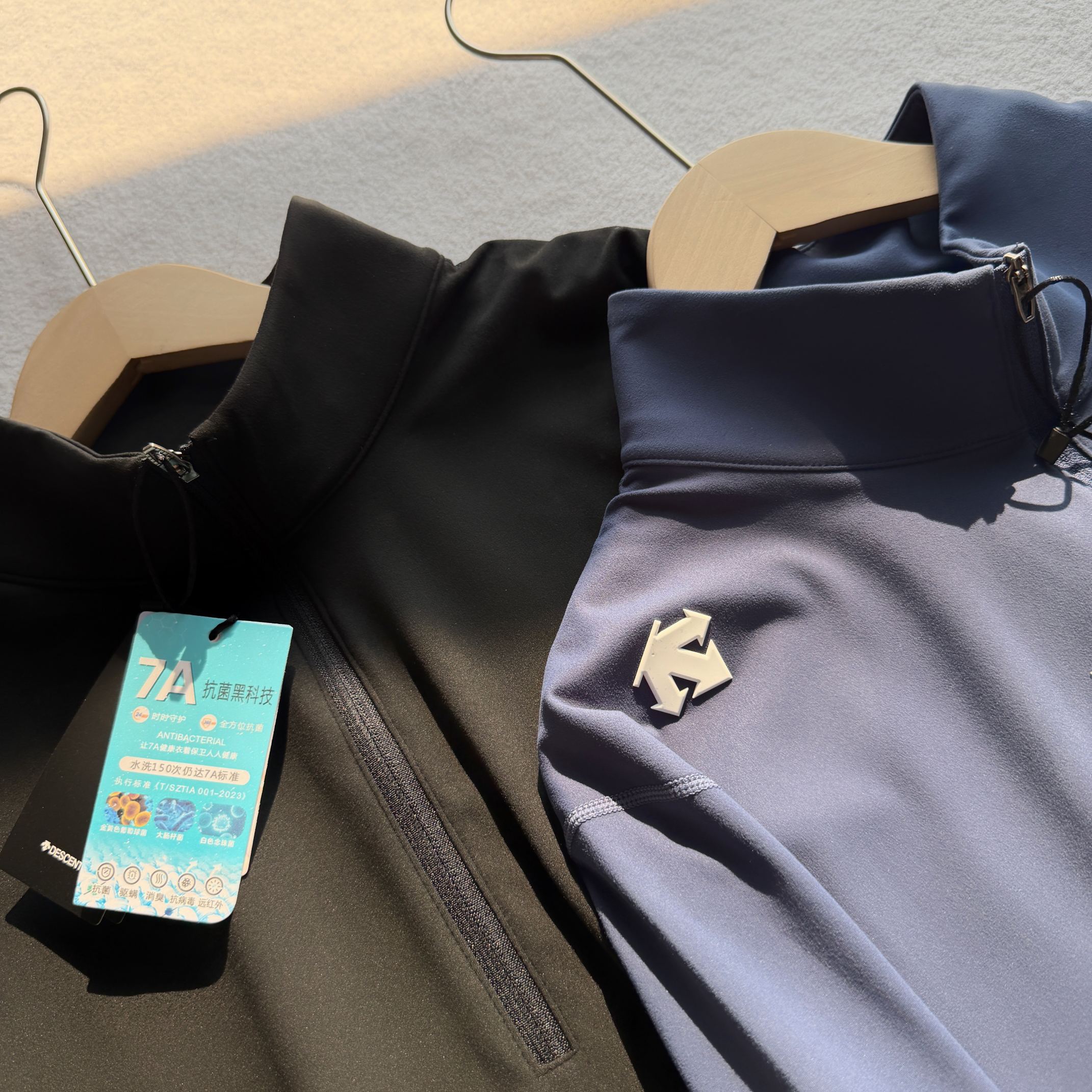 这款衣服是AAAAA 1:1 质量 (非常棒). 使用了和原版一模一样的材料. 商标部分也保持了和Descente一样. 图片拍摄是实物衣服拍摄, 您所收到的实物保证和我们图片一模一样.