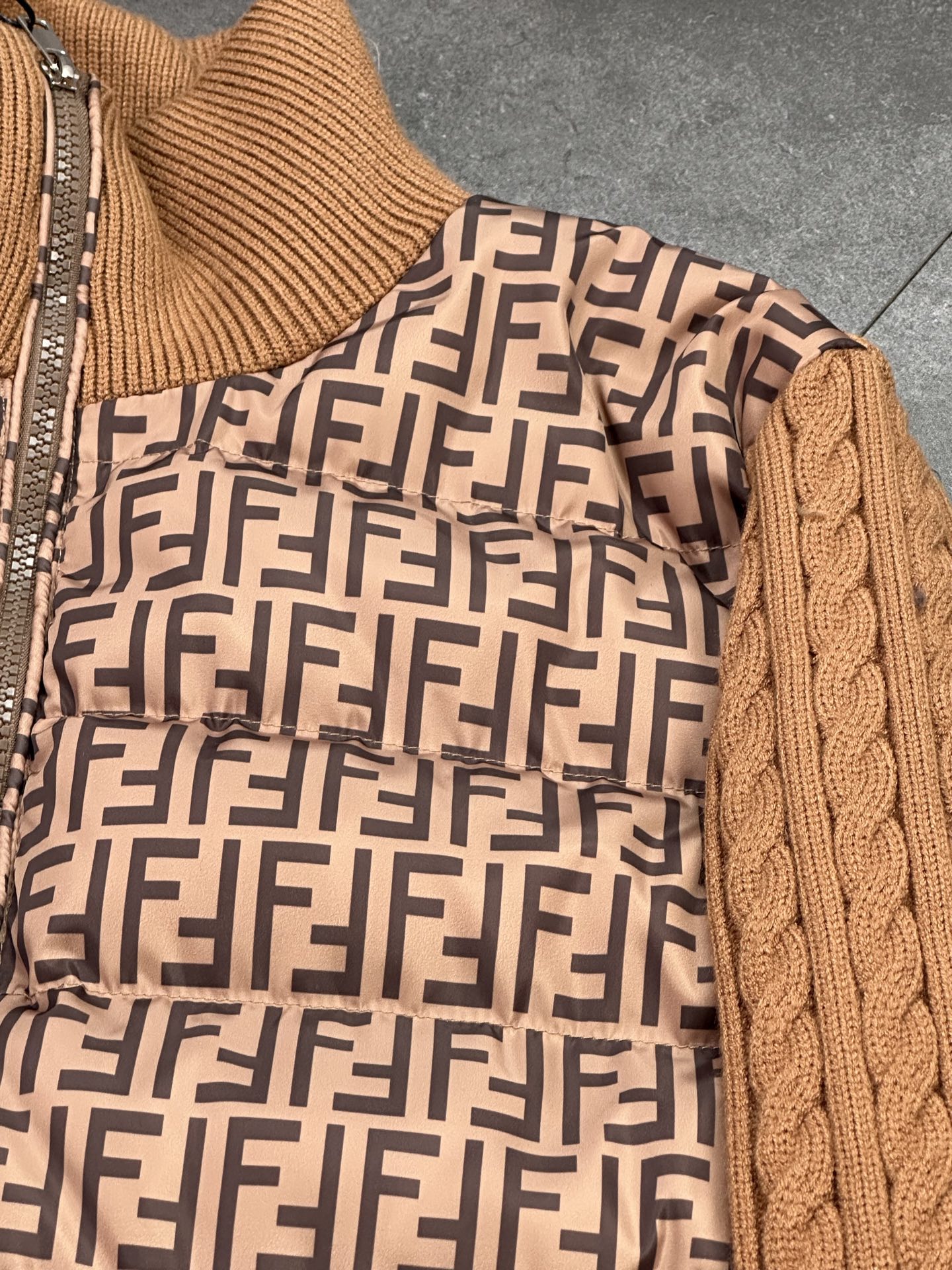 这款衣服是AAAAA 1:1 质量 (非常棒). 使用了和原版一模一样的材料. 商标部分也保持了和芬迪/Fendi一样. 图片拍摄是实物衣服拍摄, 您所收到的实物保证和我们图片一模一样.