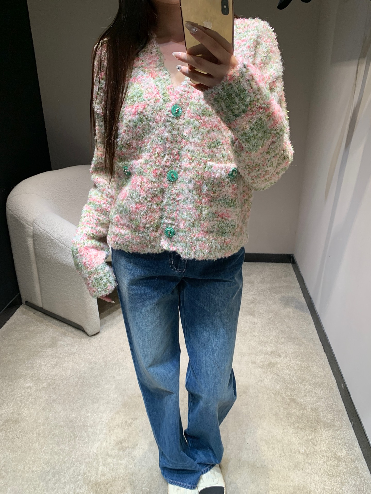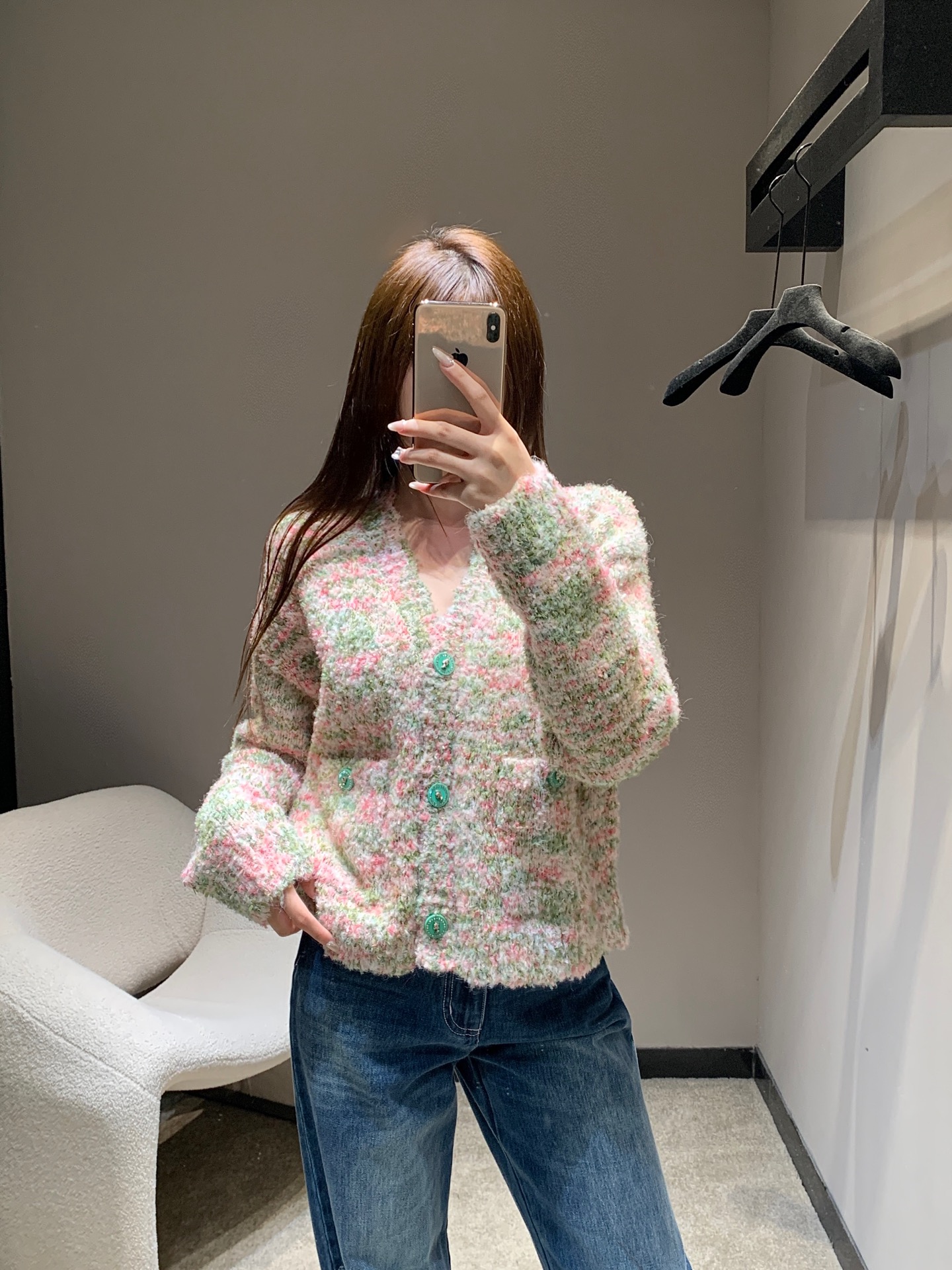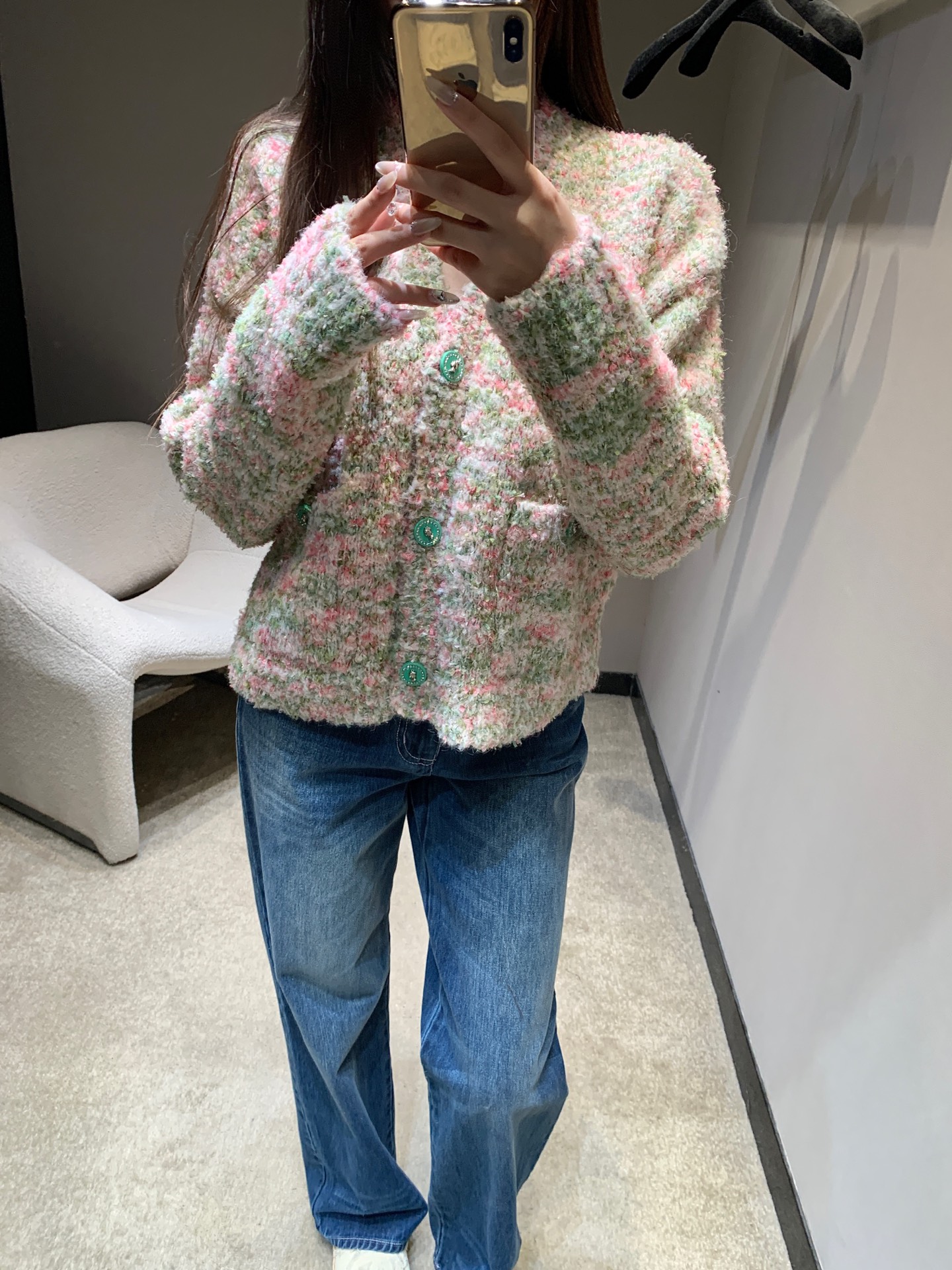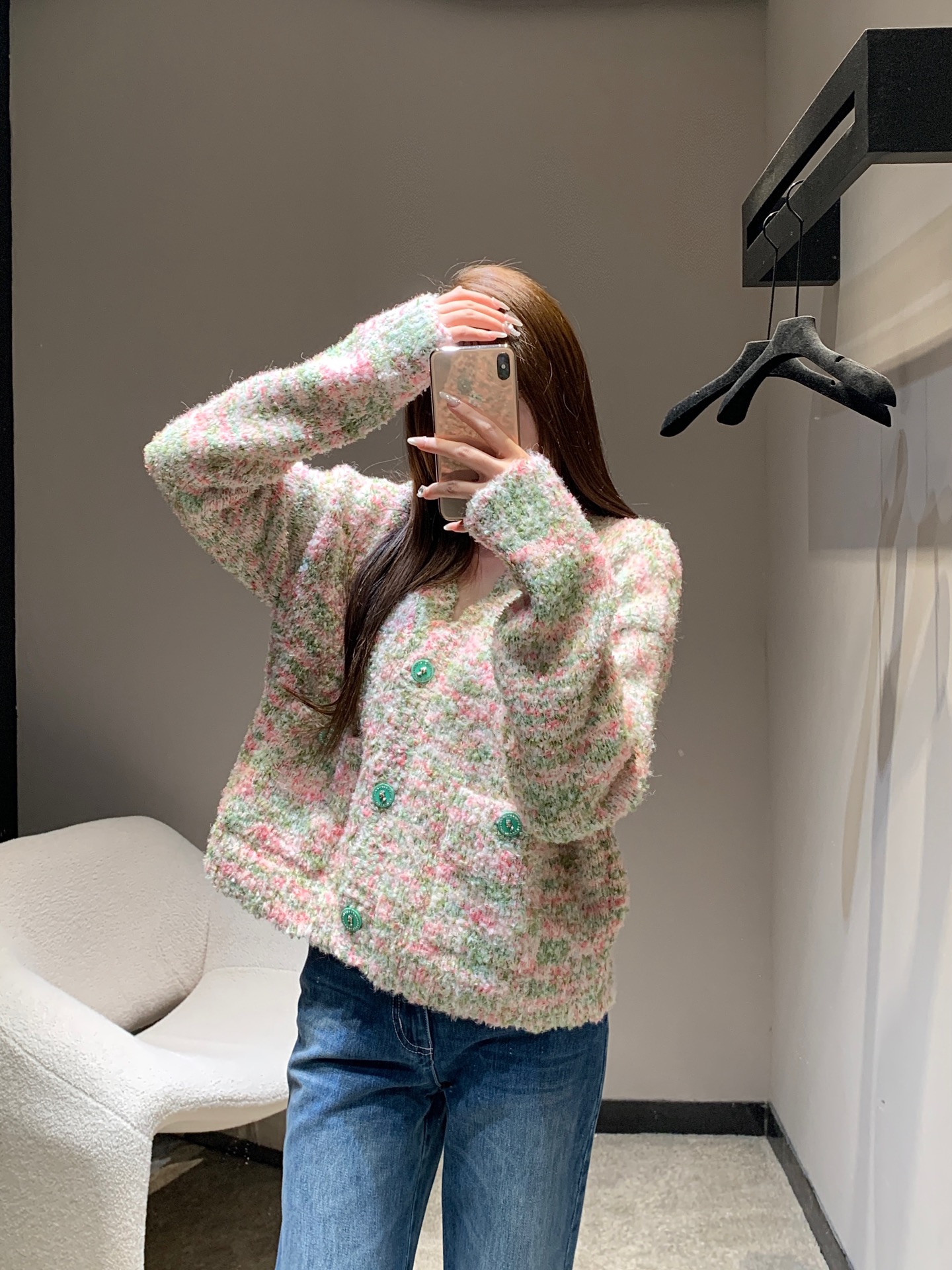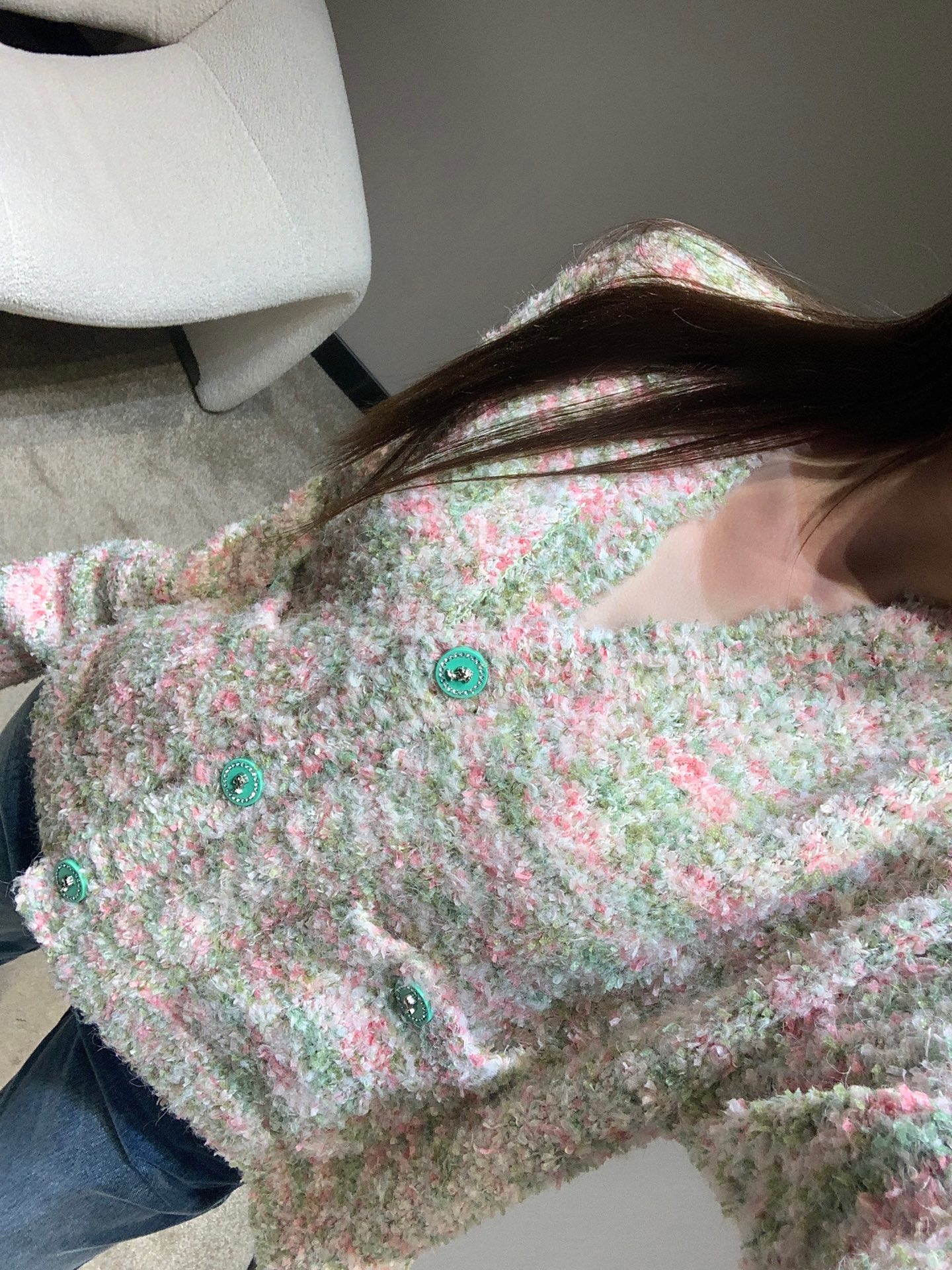 这款衣服是AAAAA 1:1 质量 (非常棒). 使用了和原版一模一样的材料. 商标部分也保持了和香奈儿/Chanel一样. 图片拍摄是实物衣服拍摄, 您所收到的实物保证和我们图片一模一样.