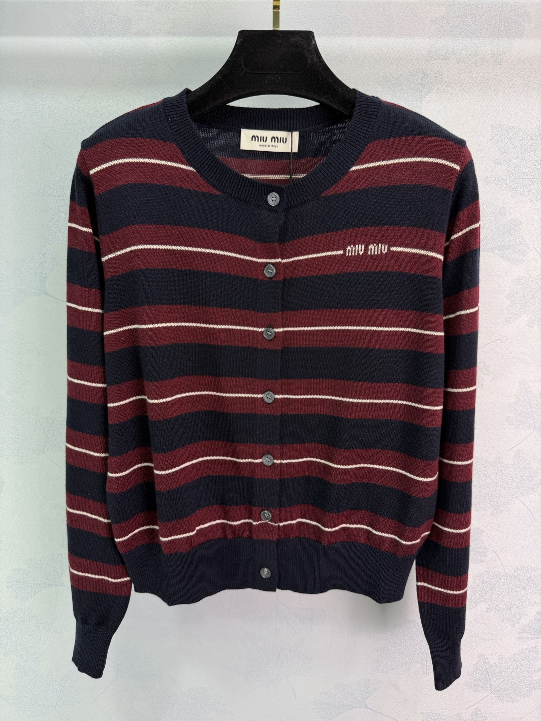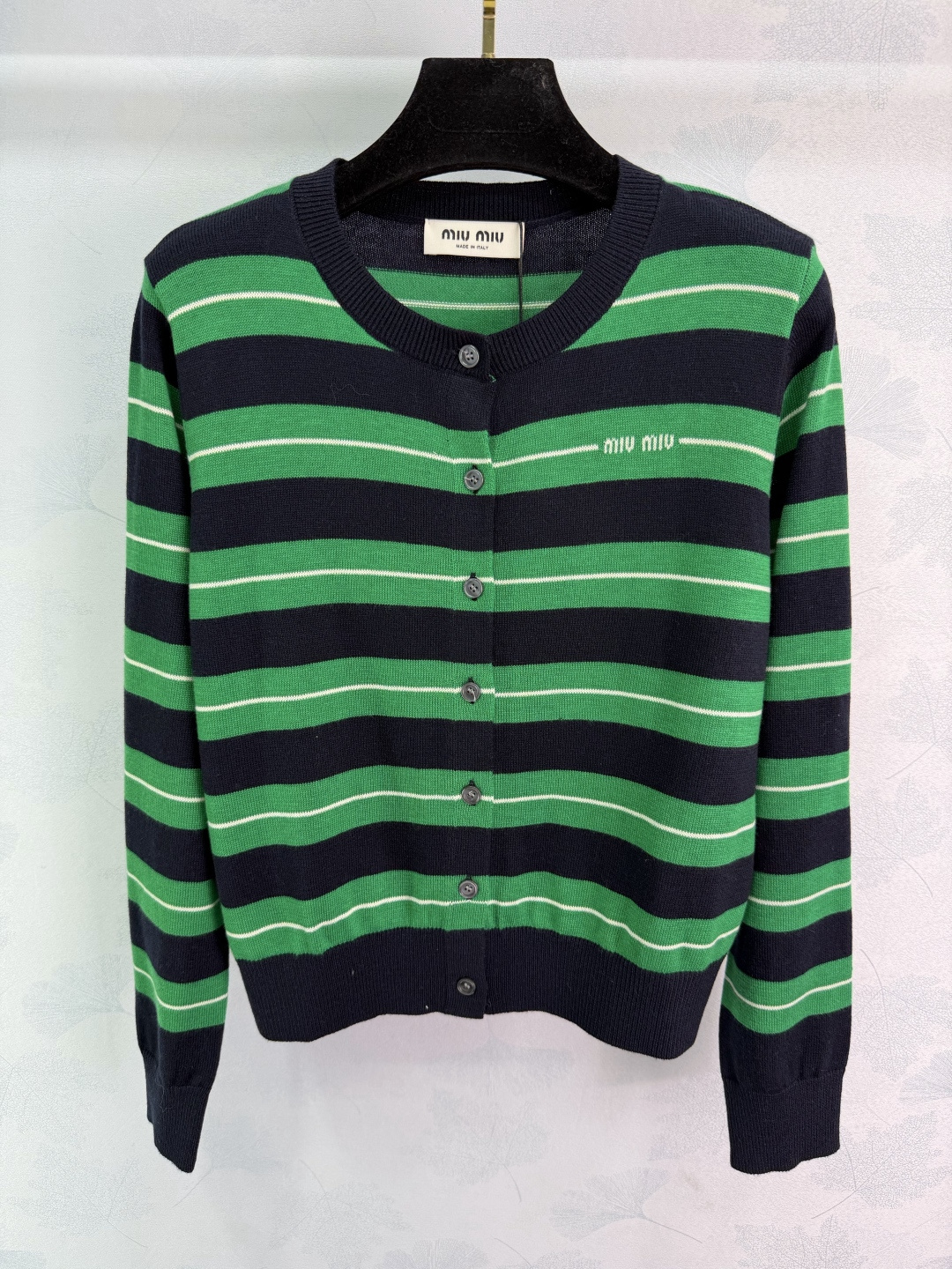 这款衣服是AAAAA 1:1 质量 (非常棒). 使用了和原版一模一样的材料. 商标部分也保持了和缪缪/Miu Miu一样. 图片拍摄是实物衣服拍摄, 您所收到的实物保证和我们图片一模一样.