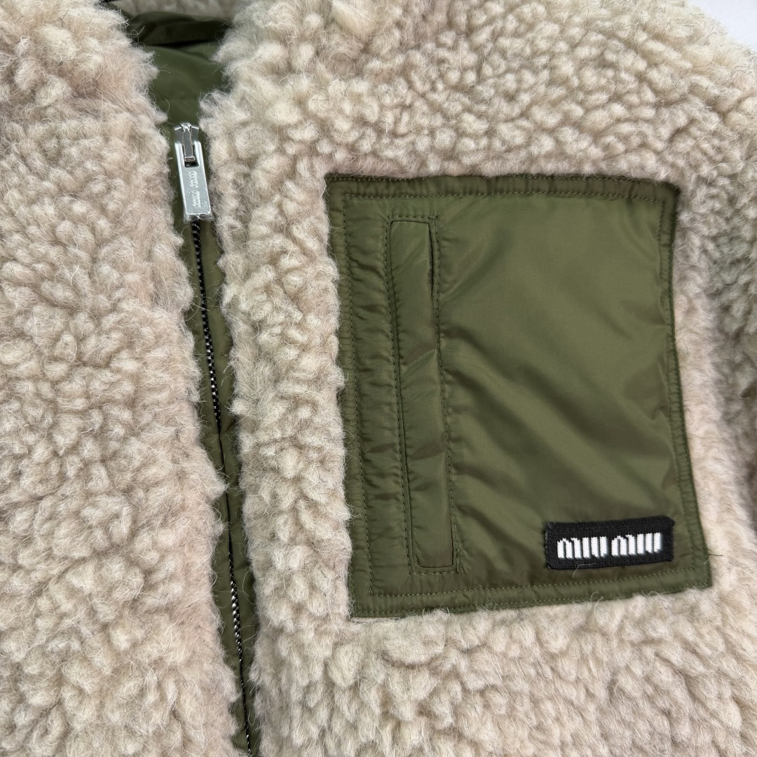 这款衣服是AAAAA 1:1 质量 (非常棒). 使用了和原版一模一样的材料. 商标部分也保持了和缪缪/Miu Miu一样. 图片拍摄是实物衣服拍摄, 您所收到的实物保证和我们图片一模一样.