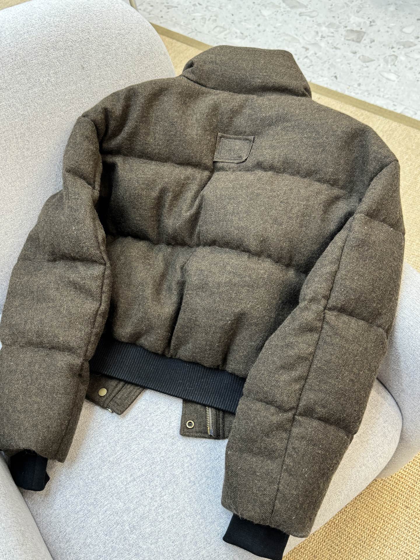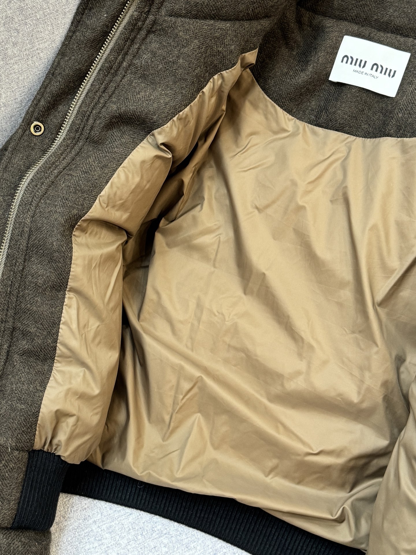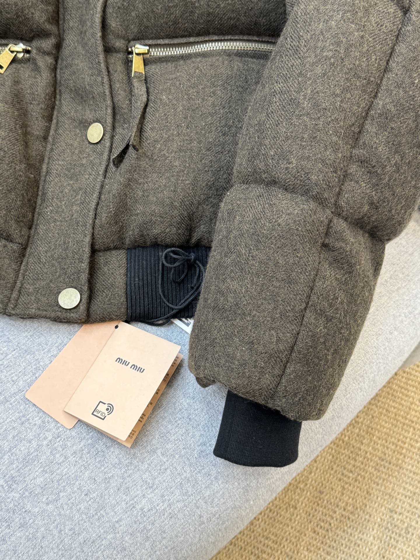 这款衣服是AAAAA 1:1 质量 (非常棒). 使用了和原版一模一样的材料. 商标部分也保持了和缪缪/Miu Miu一样. 图片拍摄是实物衣服拍摄, 您所收到的实物保证和我们图片一模一样.