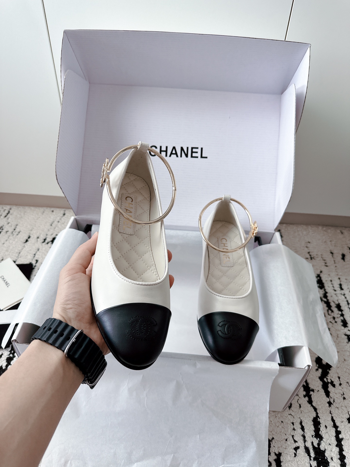 这款鞋子是AAAAA 1:1 质量 (非常棒). 使用了和原版一模一样的材料. 商标部分也保持了和香奈儿/Chanel一样. 图片拍摄是实物鞋子拍摄, 您所收到的实物保证和我们图片一模一样.