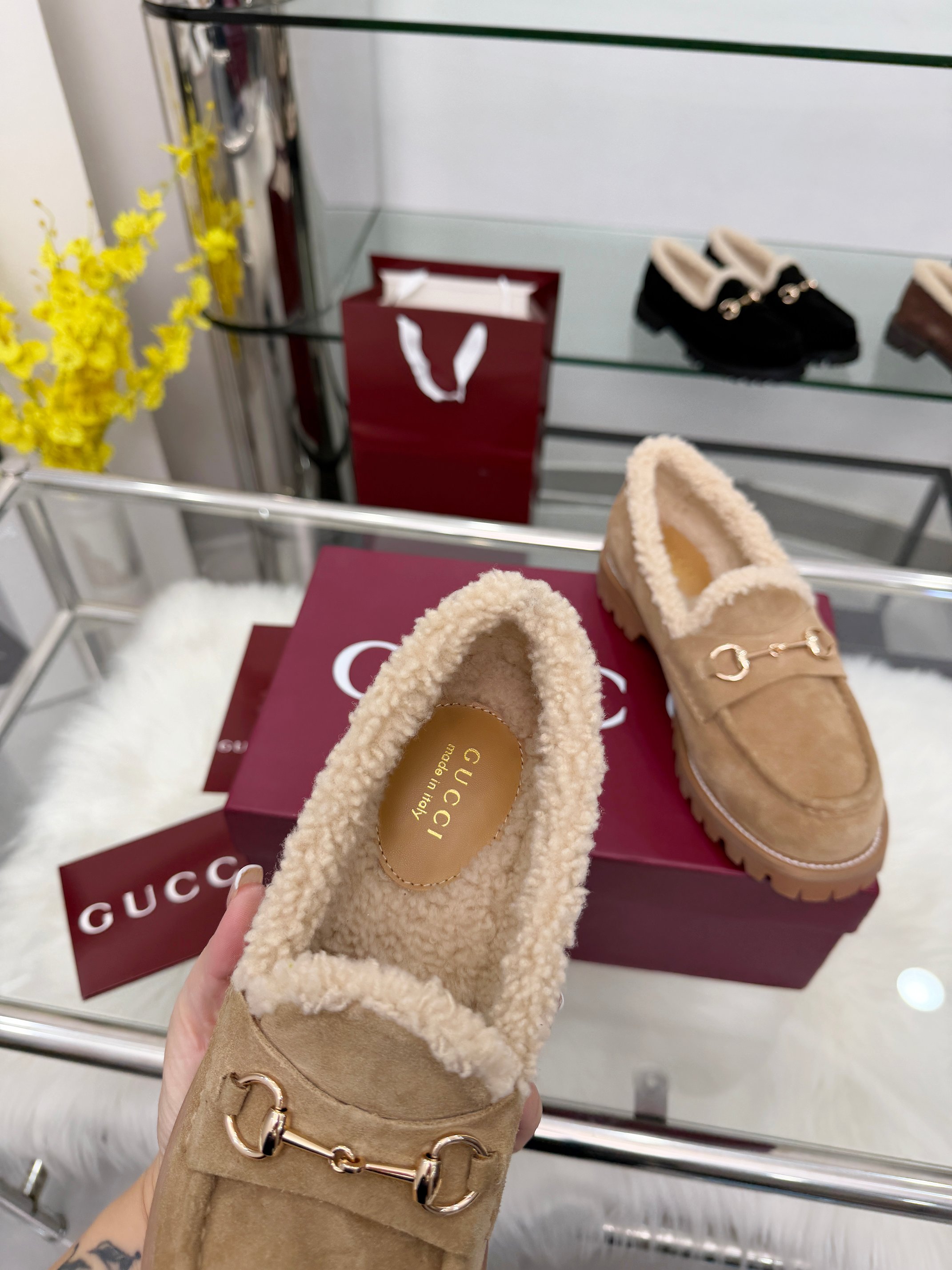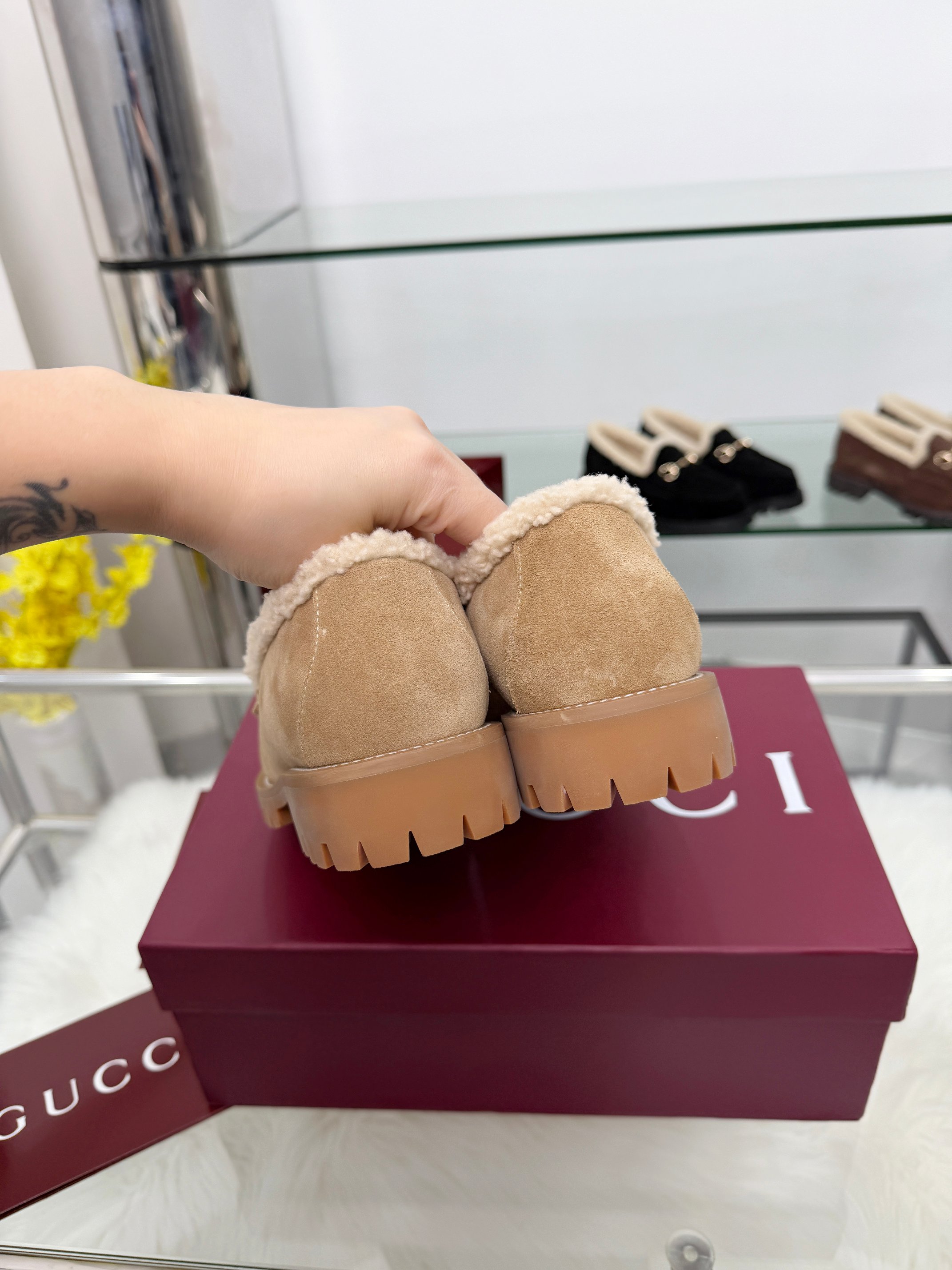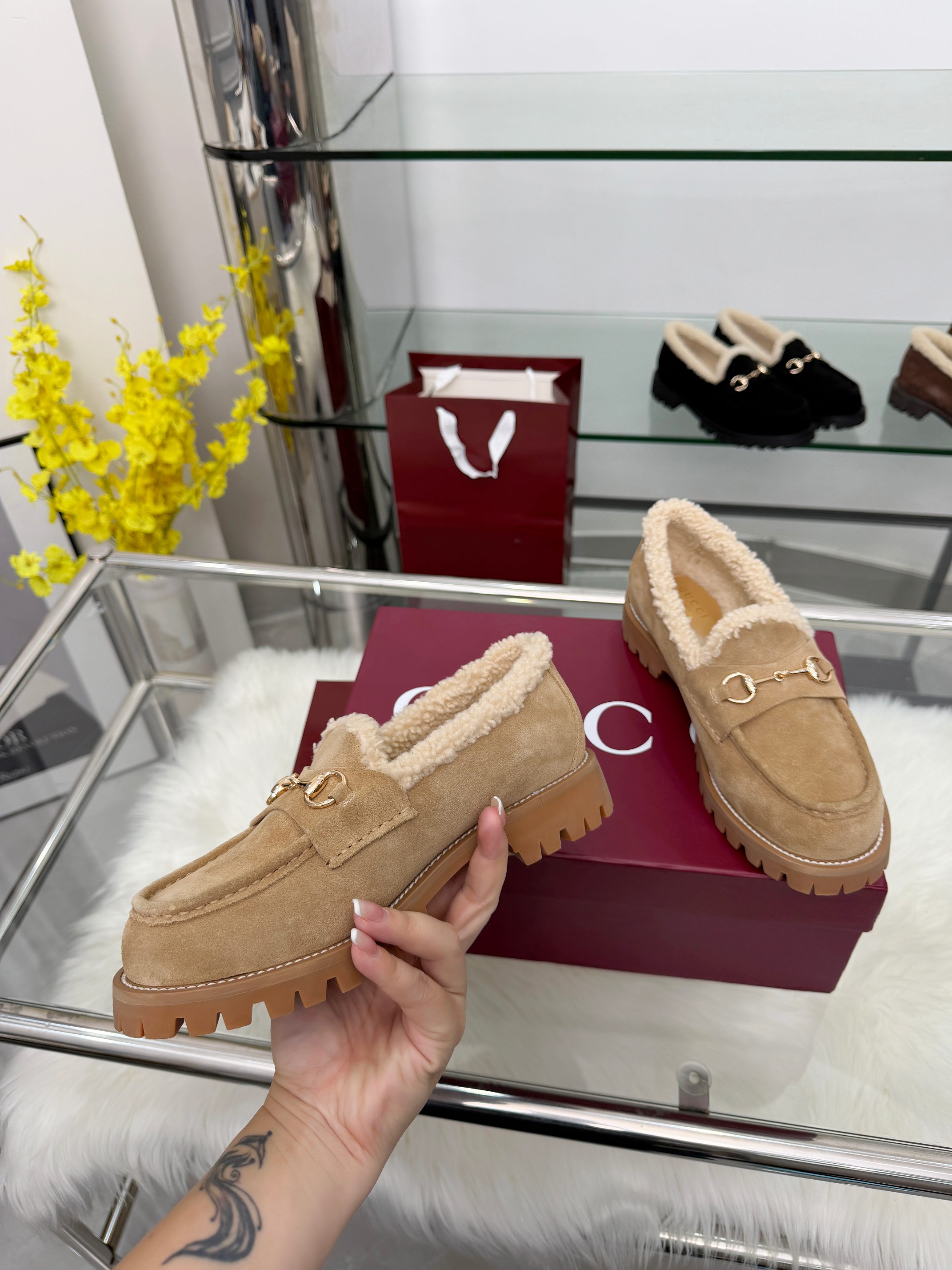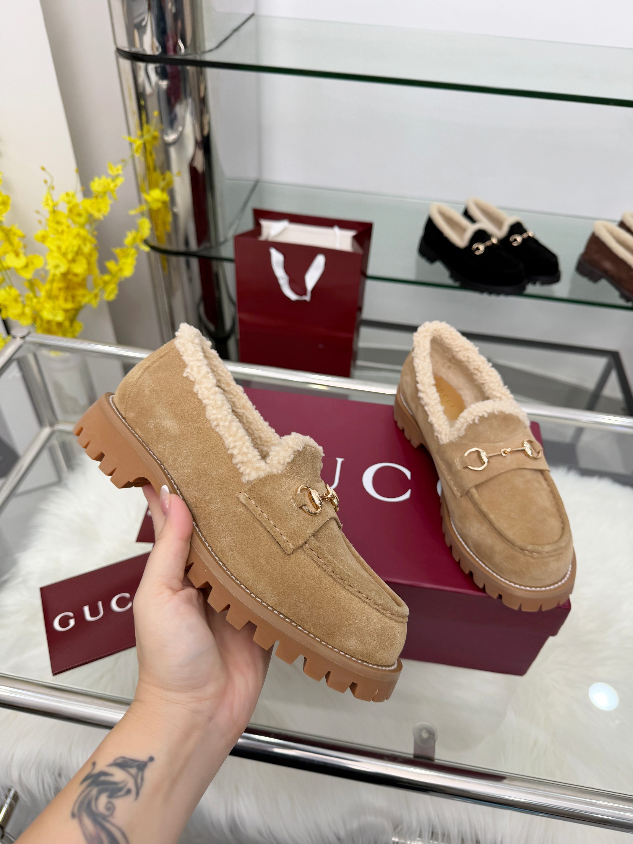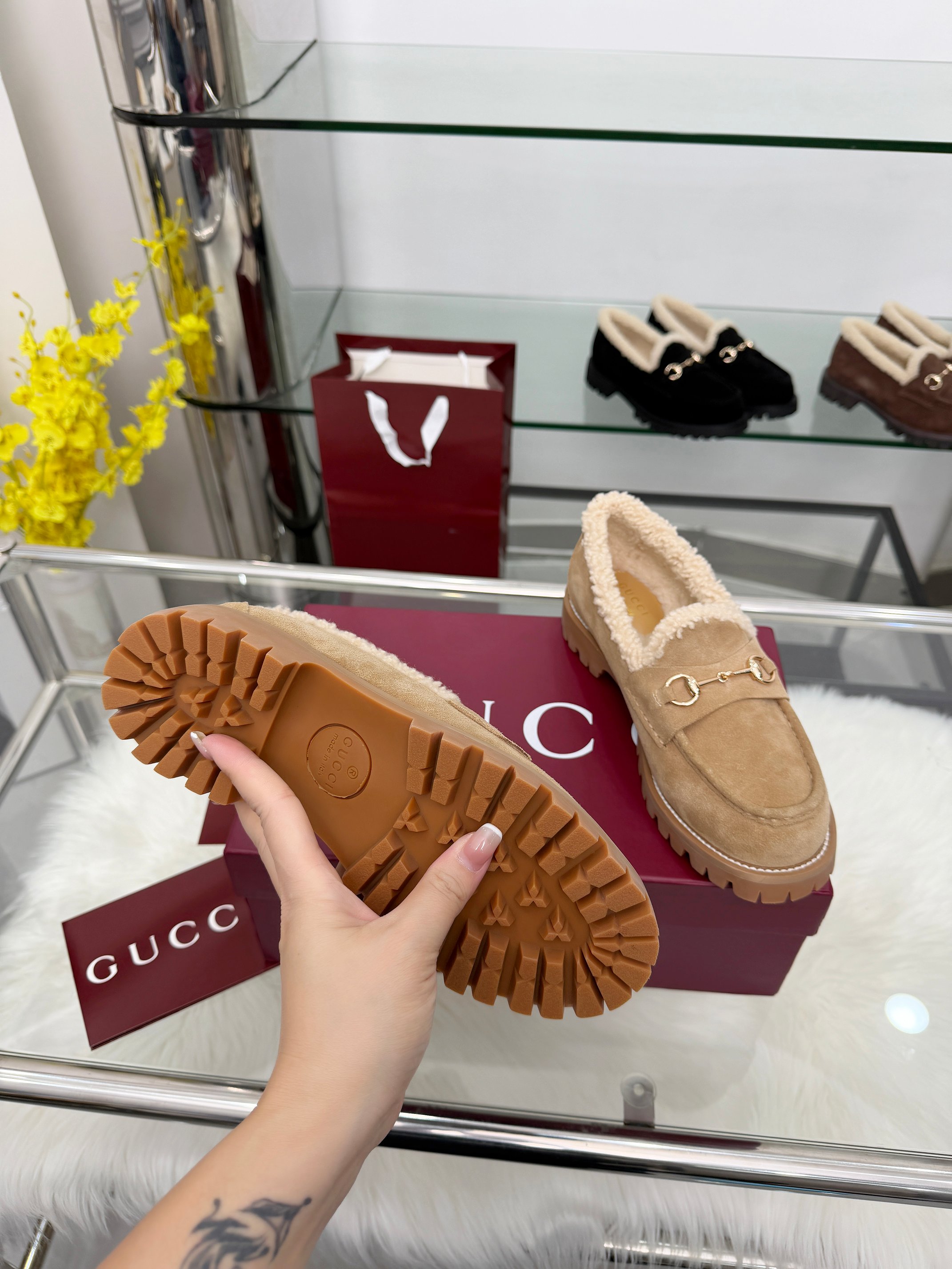 这款鞋子是AAAAA 1:1 质量 (非常棒). 使用了和原版一模一样的材料. 商标部分也保持了和古奇/Gucci一样. 图片拍摄是实物鞋子拍摄, 您所收到的实物保证和我们图片一模一样.