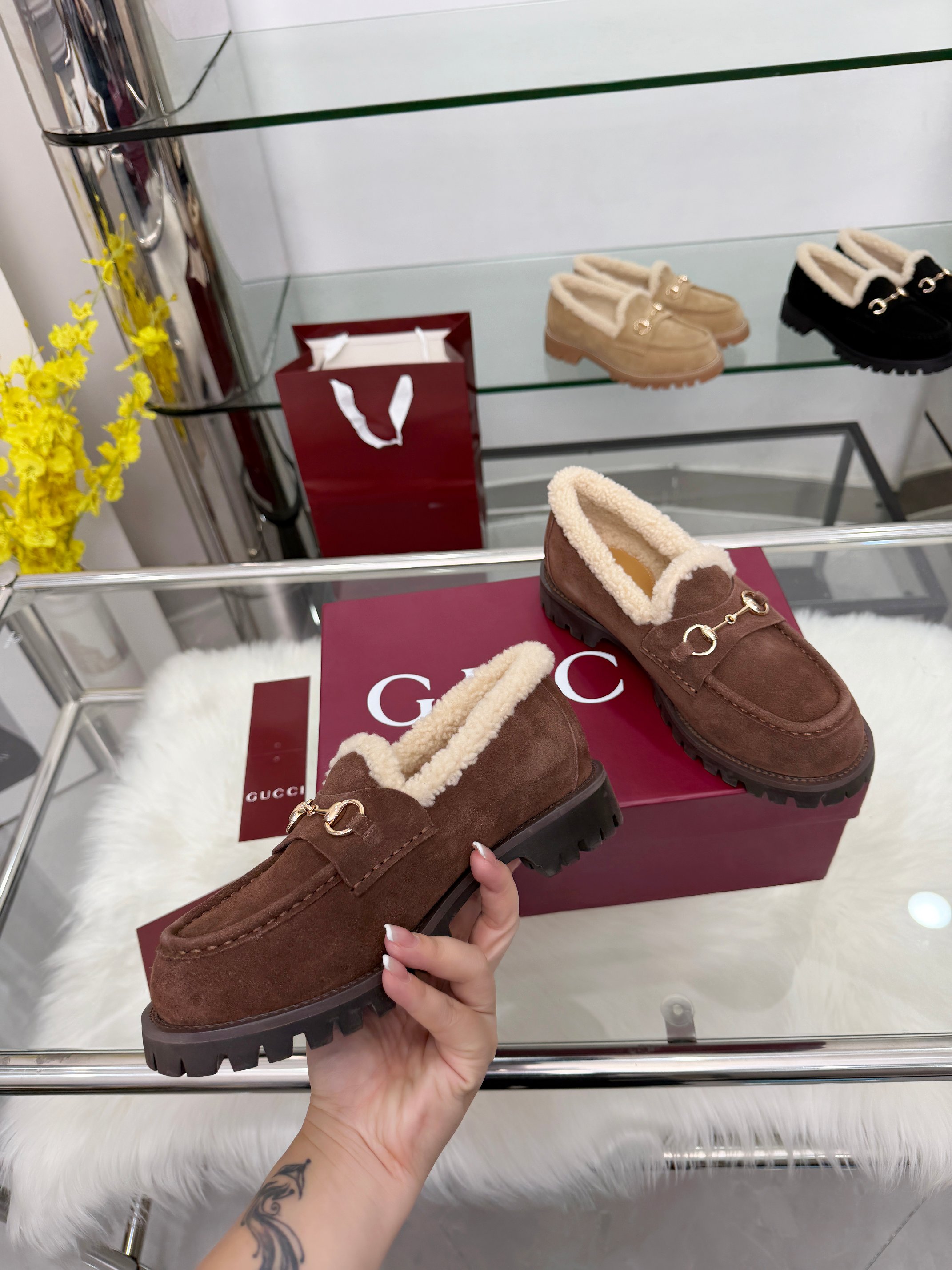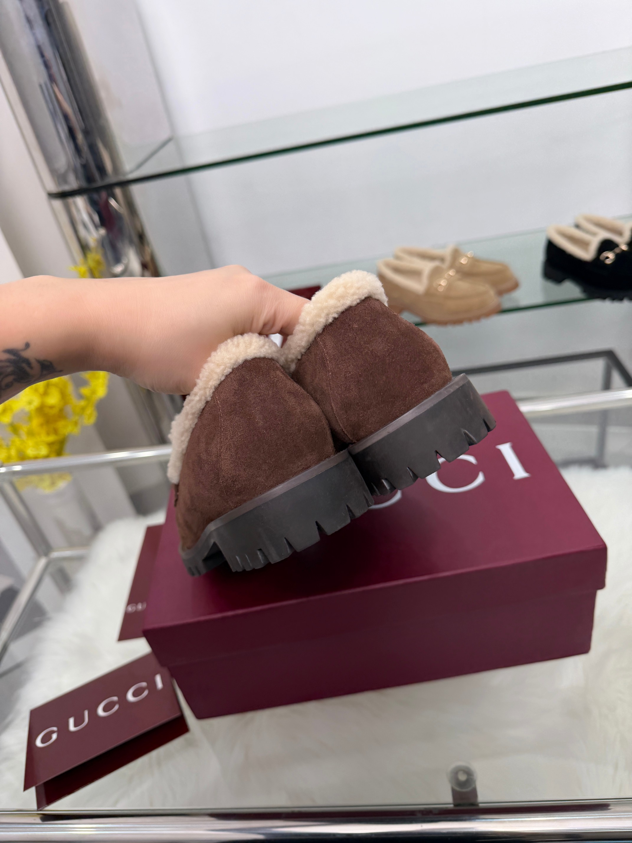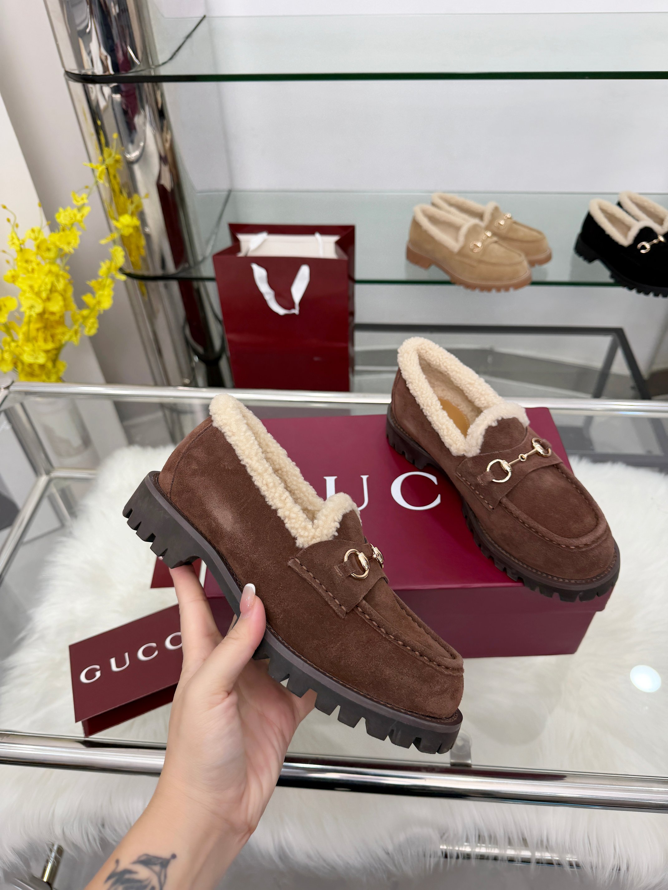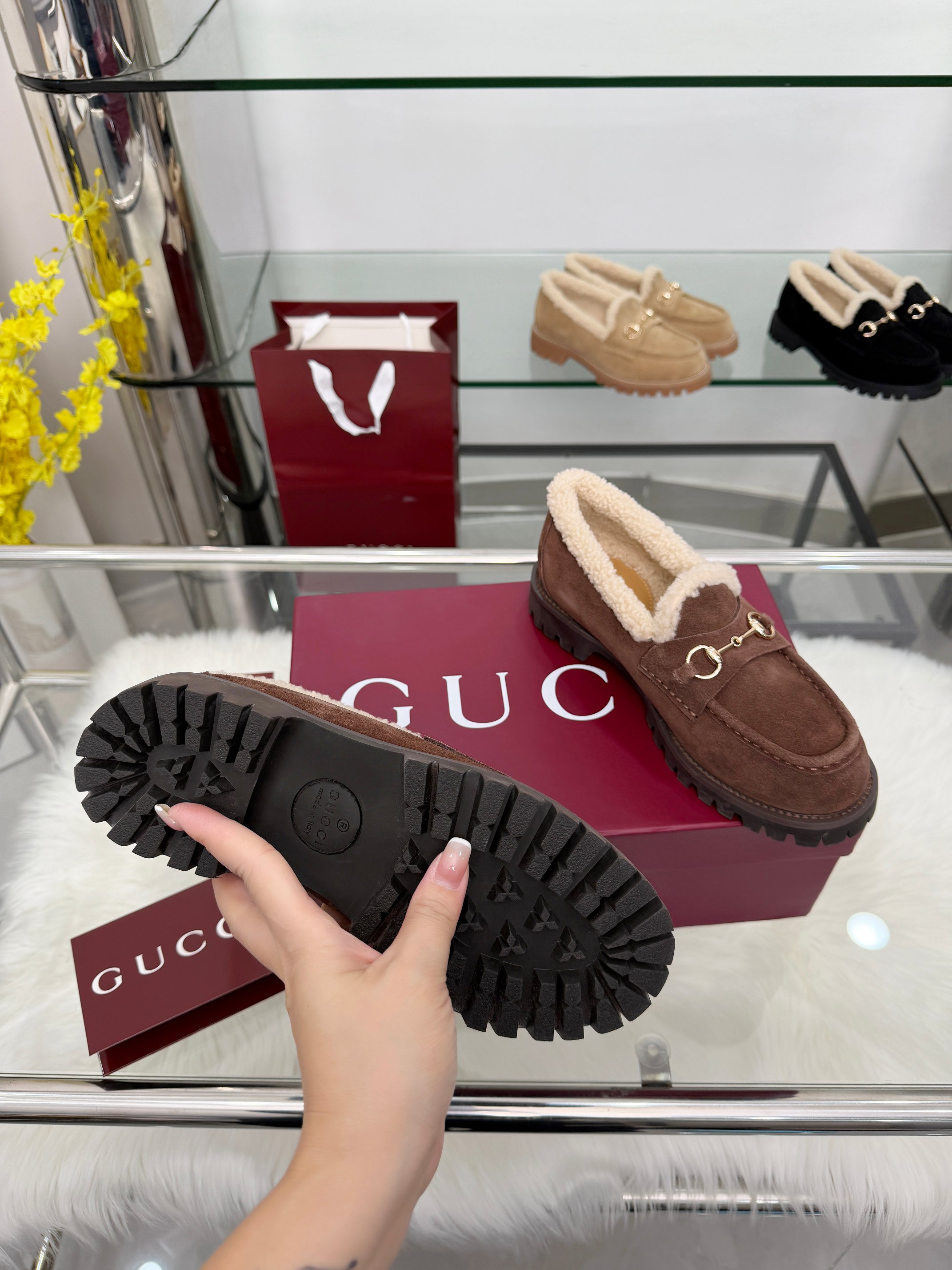 这款鞋子是AAAAA 1:1 质量 (非常棒). 使用了和原版一模一样的材料. 商标部分也保持了和古奇/Gucci一样. 图片拍摄是实物鞋子拍摄, 您所收到的实物保证和我们图片一模一样.