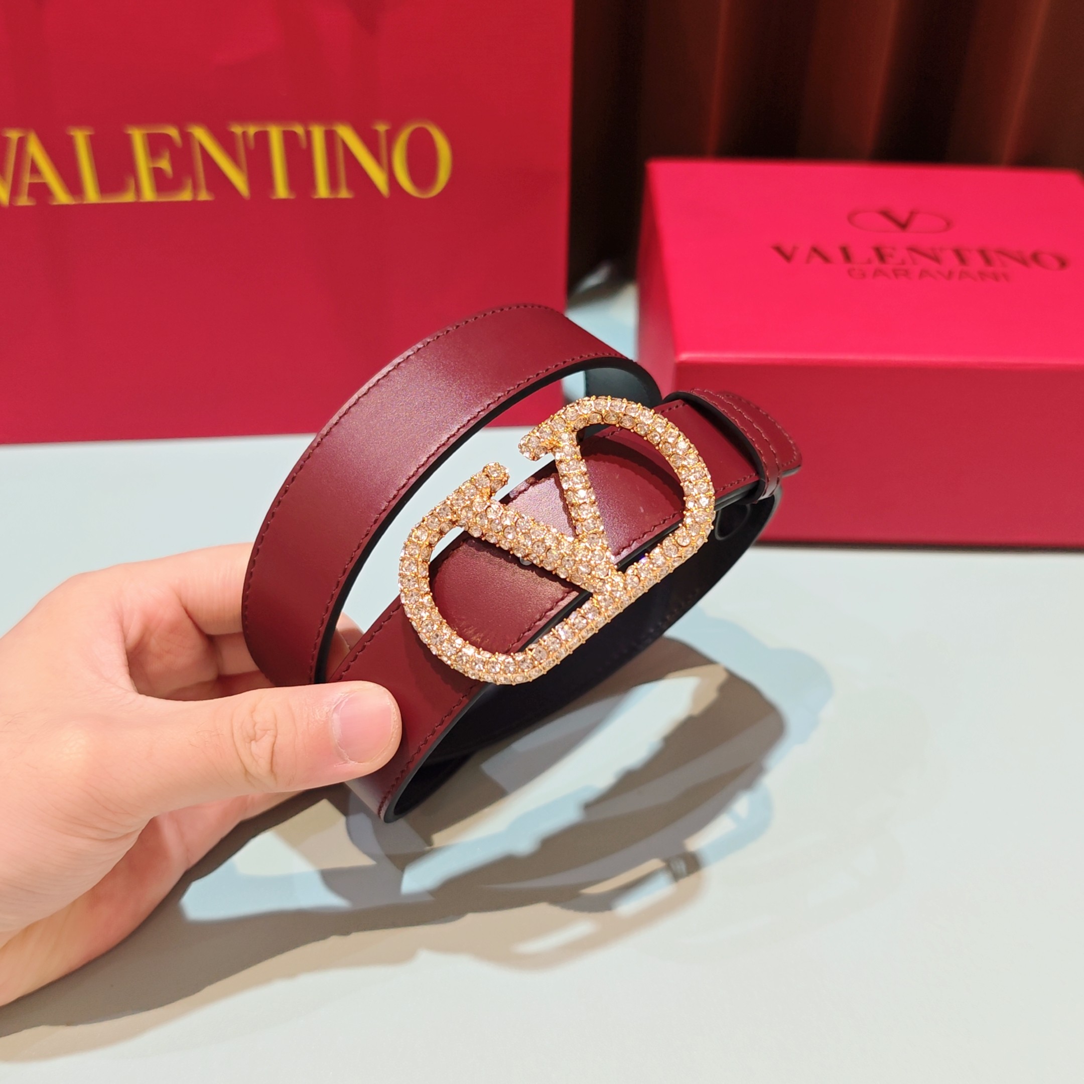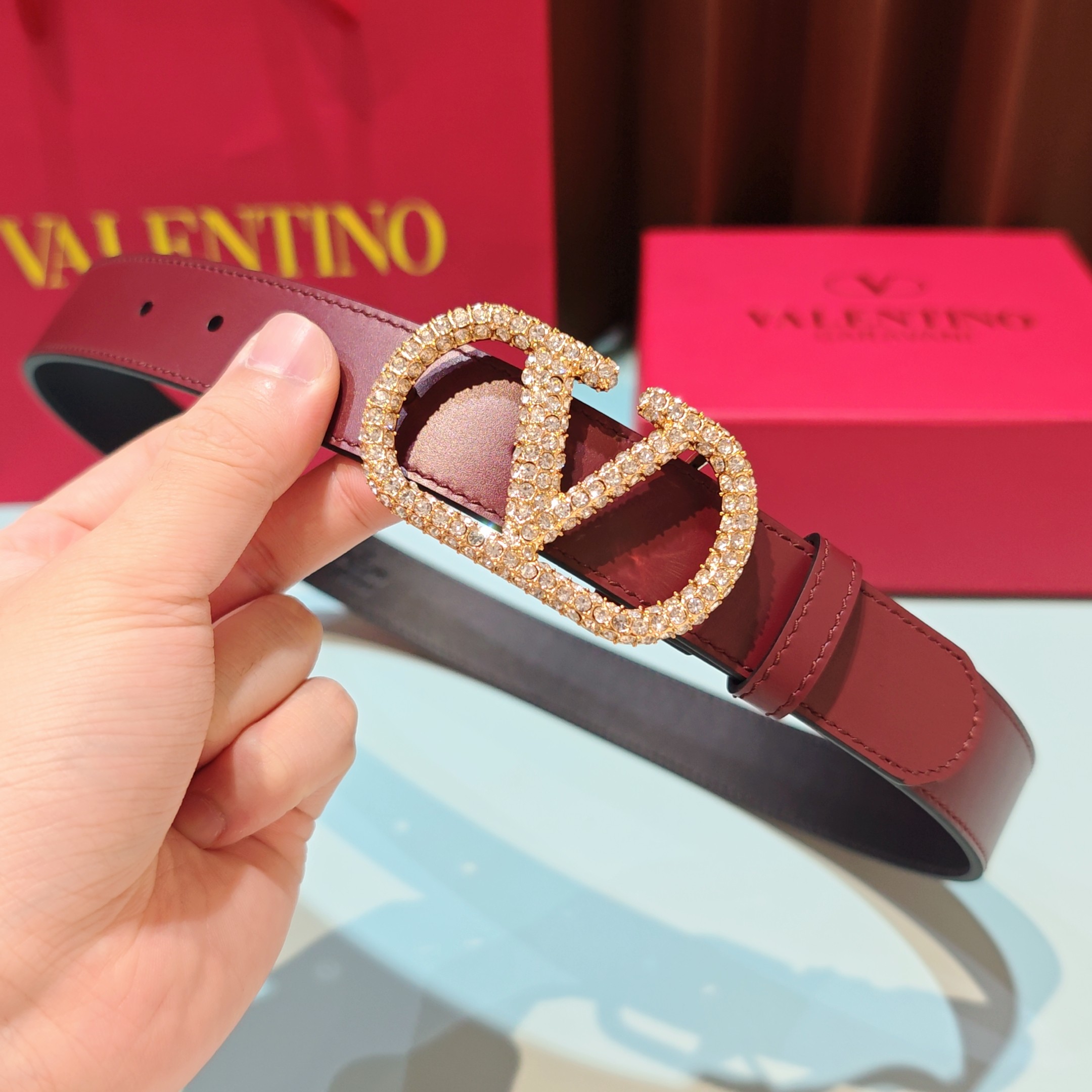 这款皮带是AAAAA 1:1 质量 (非常棒). 使用了和原版一模一样的材料. 商标部分也保持了和华伦天奴/Valentino一样. 图片拍摄是实物皮带拍摄, 您所收到的实物保证和我们图片一模一样.