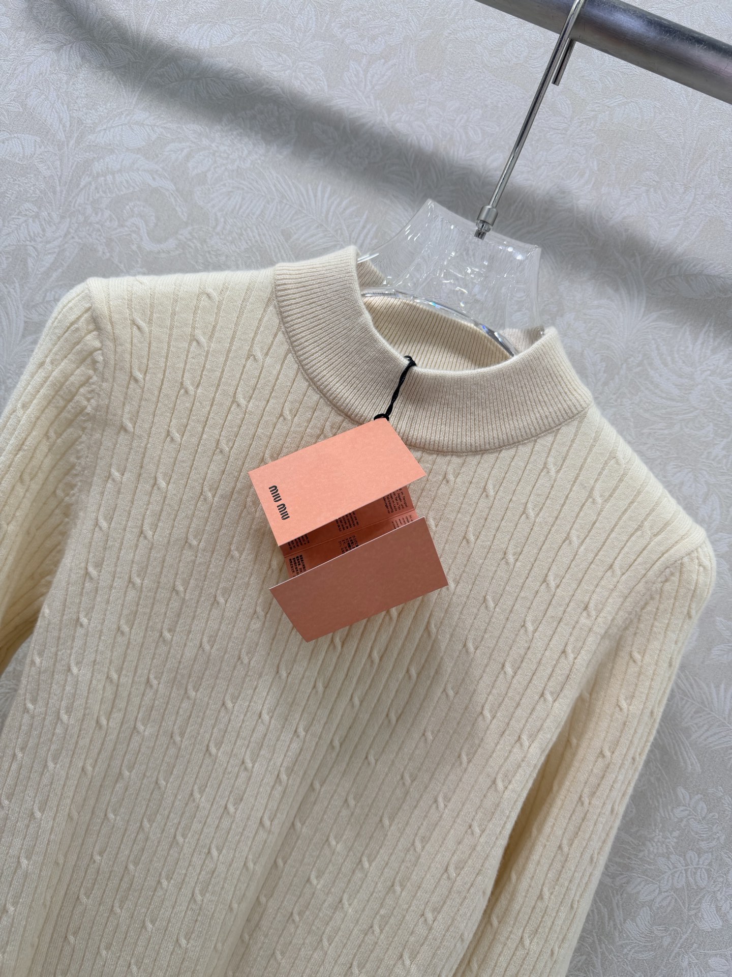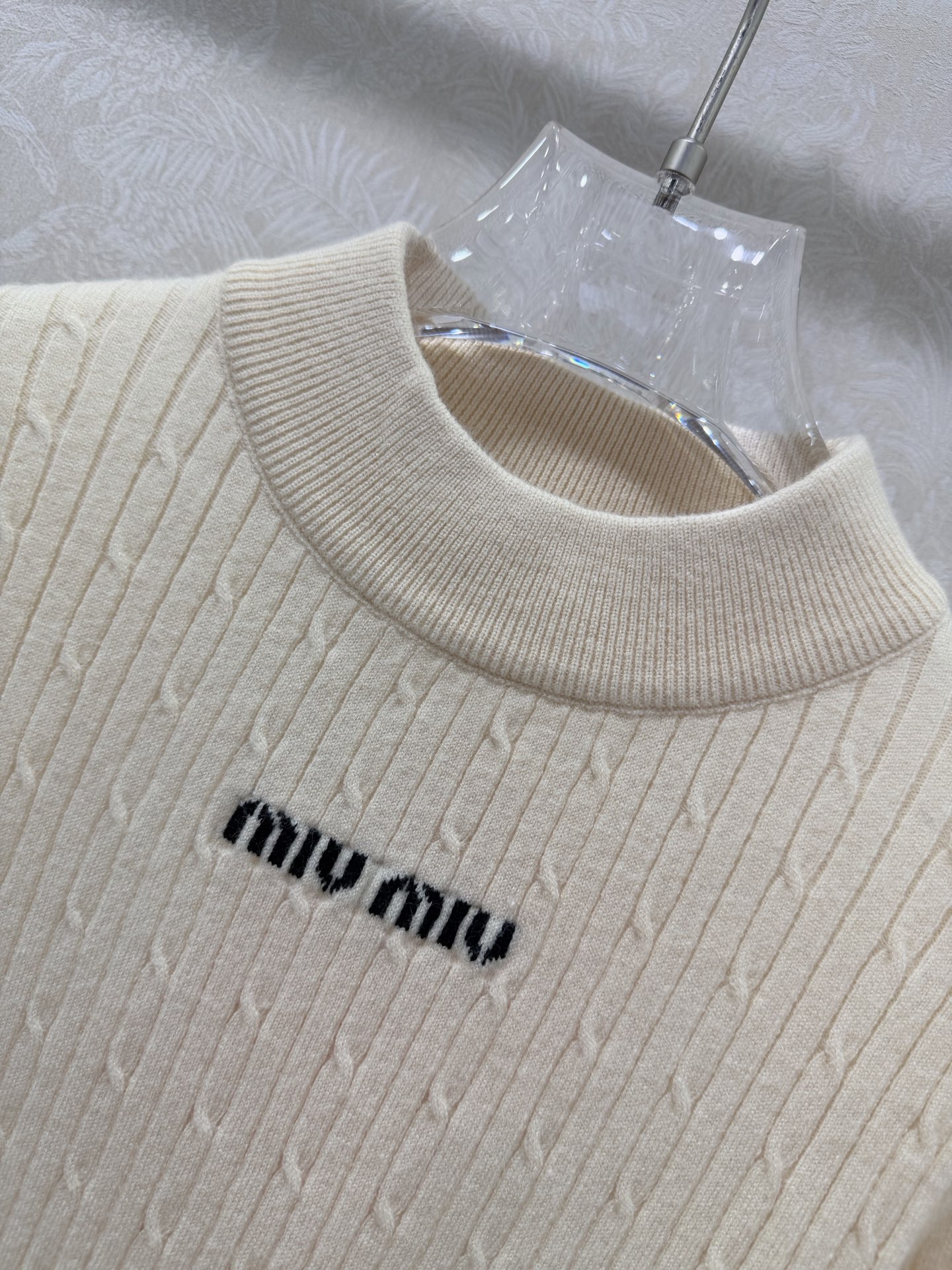 这款衣服是AAAAA 1:1 质量 (非常棒). 使用了和原版一模一样的材料. 商标部分也保持了和缪缪/Miu Miu一样. 图片拍摄是实物衣服拍摄, 您所收到的实物保证和我们图片一模一样.