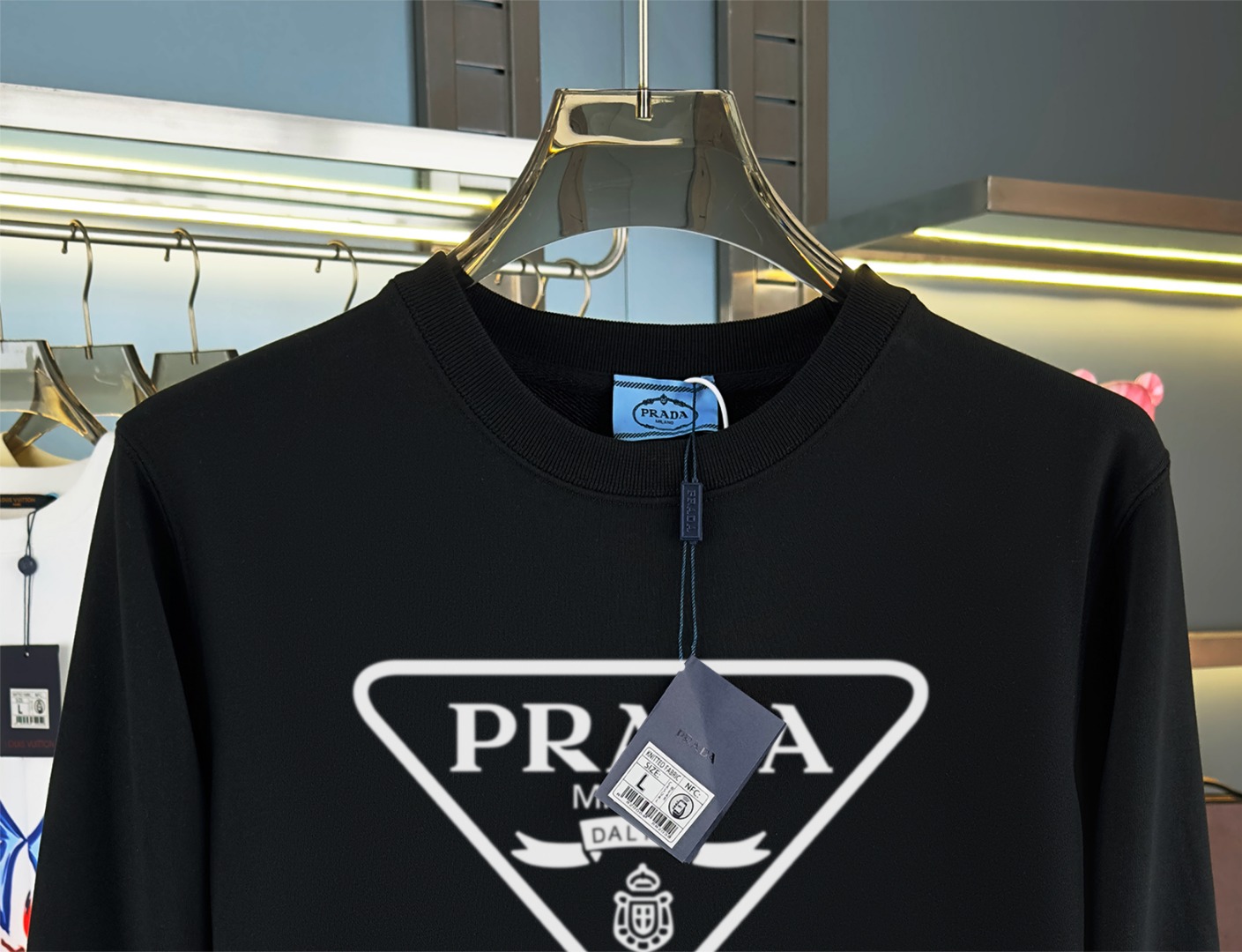 这款衣服是AAAAA 1:1 质量 (非常棒). 使用了和原版一模一样的材料. 商标部分也保持了和普拉达/Prada一样. 图片拍摄是实物衣服拍摄, 您所收到的实物保证和我们图片一模一样.