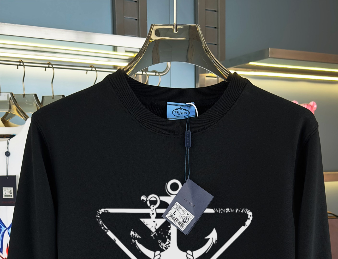 这款衣服是AAAAA 1:1 质量 (非常棒). 使用了和原版一模一样的材料. 商标部分也保持了和普拉达/Prada一样. 图片拍摄是实物衣服拍摄, 您所收到的实物保证和我们图片一模一样.