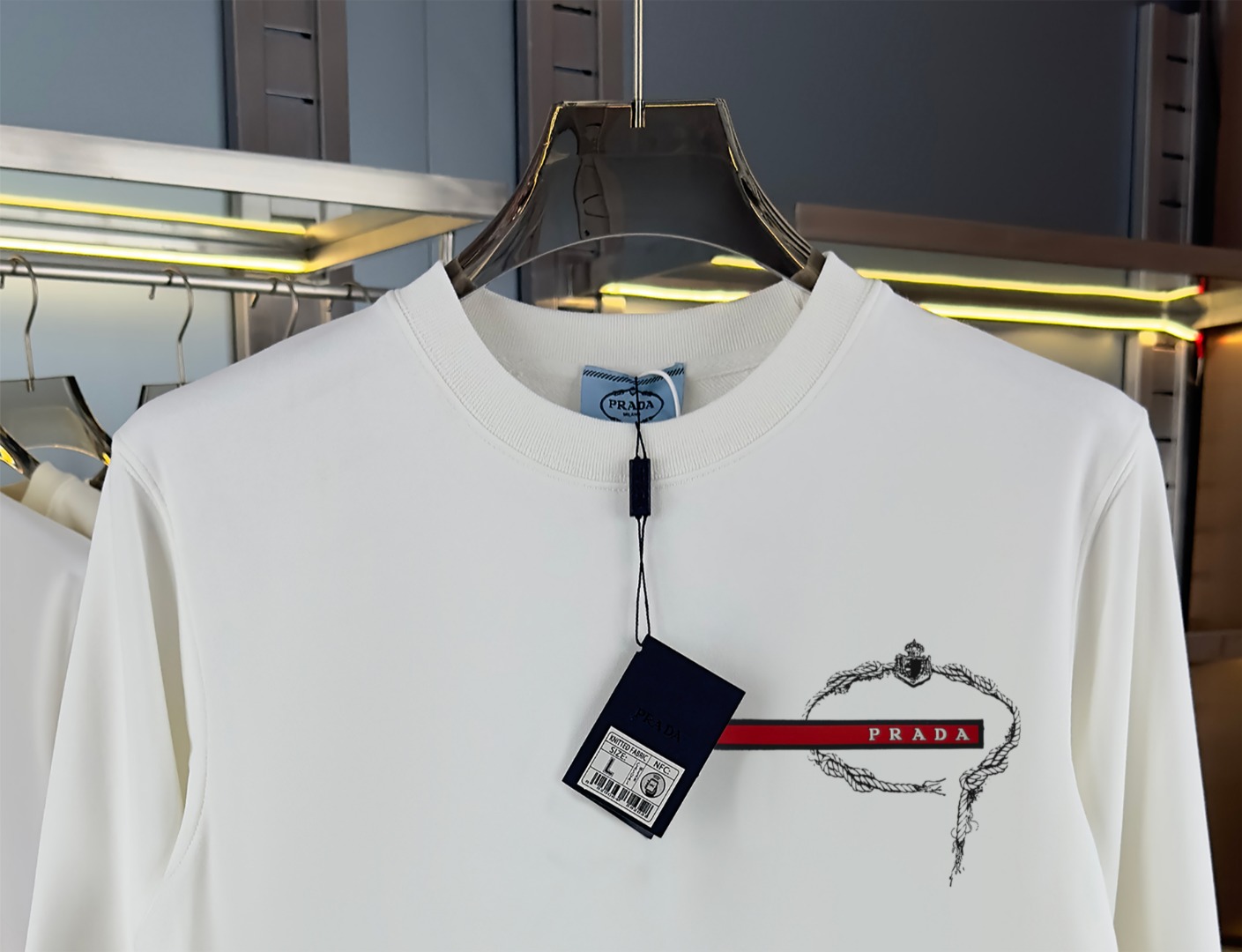 这款衣服是AAAAA 1:1 质量 (非常棒). 使用了和原版一模一样的材料. 商标部分也保持了和普拉达/Prada一样. 图片拍摄是实物衣服拍摄, 您所收到的实物保证和我们图片一模一样.