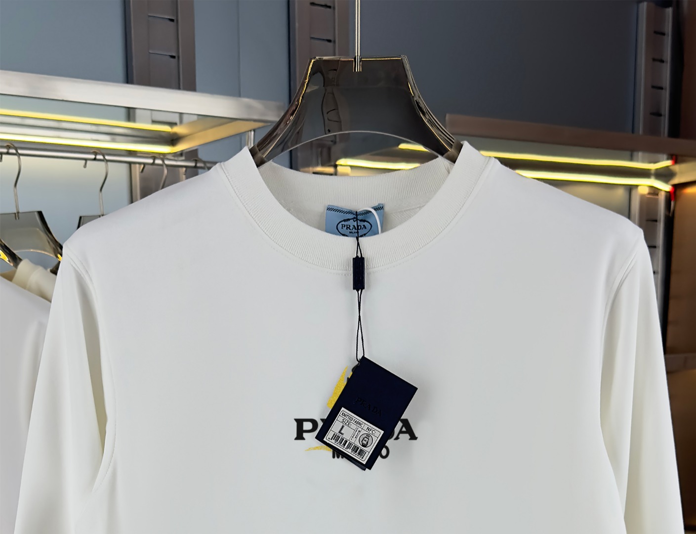 这款衣服是AAAAA 1:1 质量 (非常棒). 使用了和原版一模一样的材料. 商标部分也保持了和普拉达/Prada一样. 图片拍摄是实物衣服拍摄, 您所收到的实物保证和我们图片一模一样.