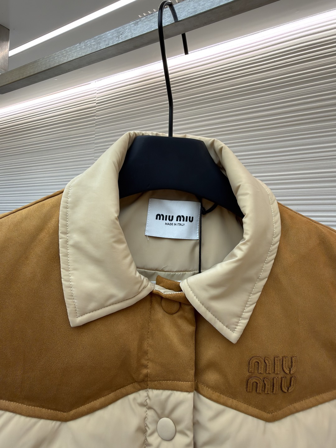 这款衣服是AAAAA 1:1 质量 (非常棒). 使用了和原版一模一样的材料. 商标部分也保持了和缪缪/Miu Miu一样. 图片拍摄是实物衣服拍摄, 您所收到的实物保证和我们图片一模一样.