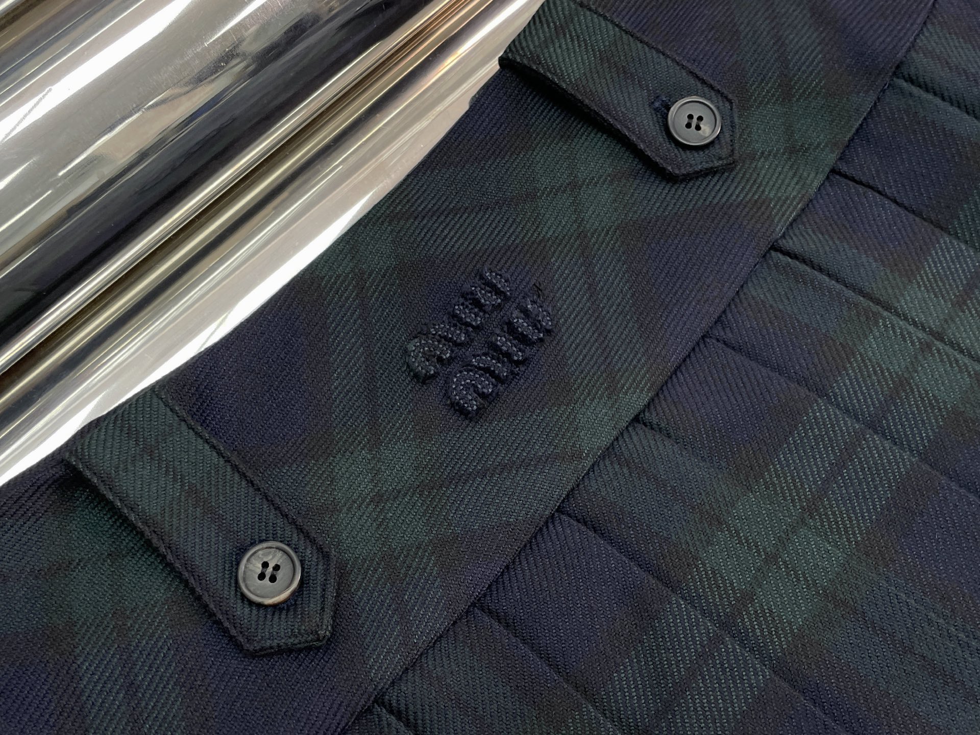 这款衣服是AAAAA 1:1 质量 (非常棒). 使用了和原版一模一样的材料. 商标部分也保持了和缪缪/Miu Miu一样. 图片拍摄是实物衣服拍摄, 您所收到的实物保证和我们图片一模一样.