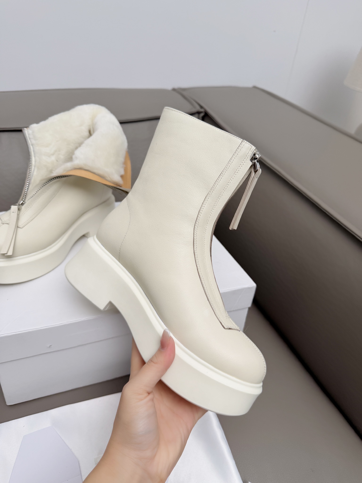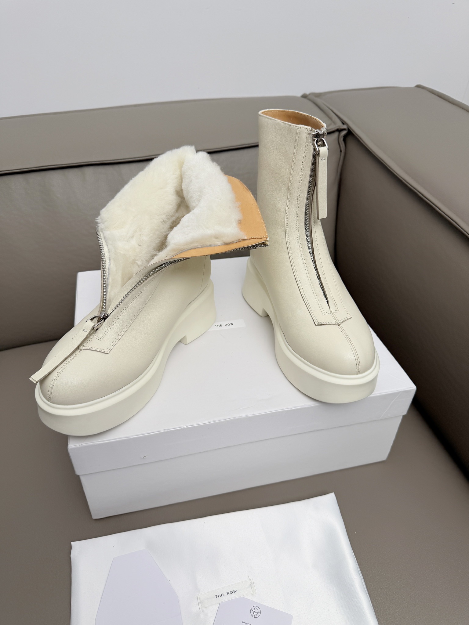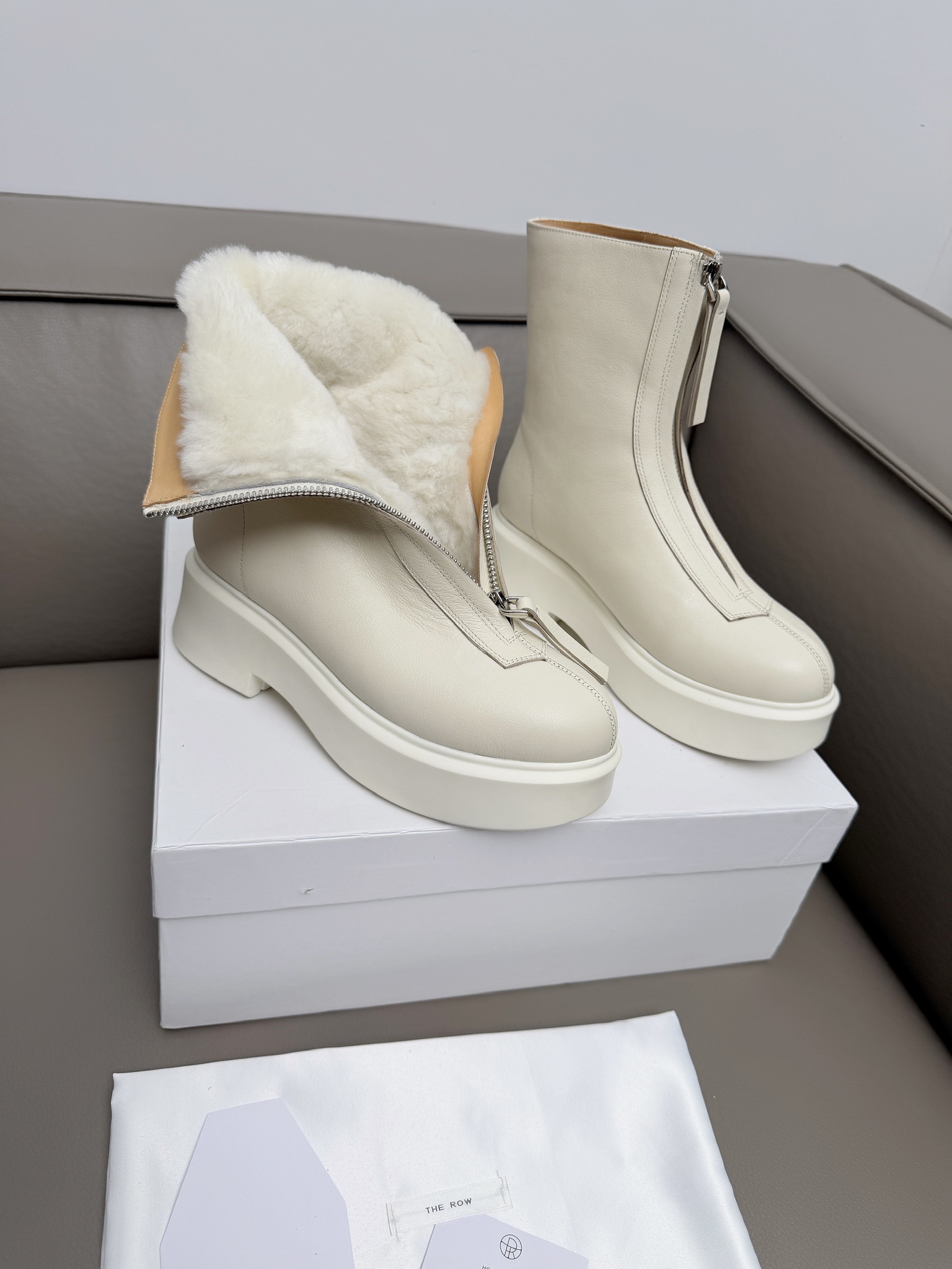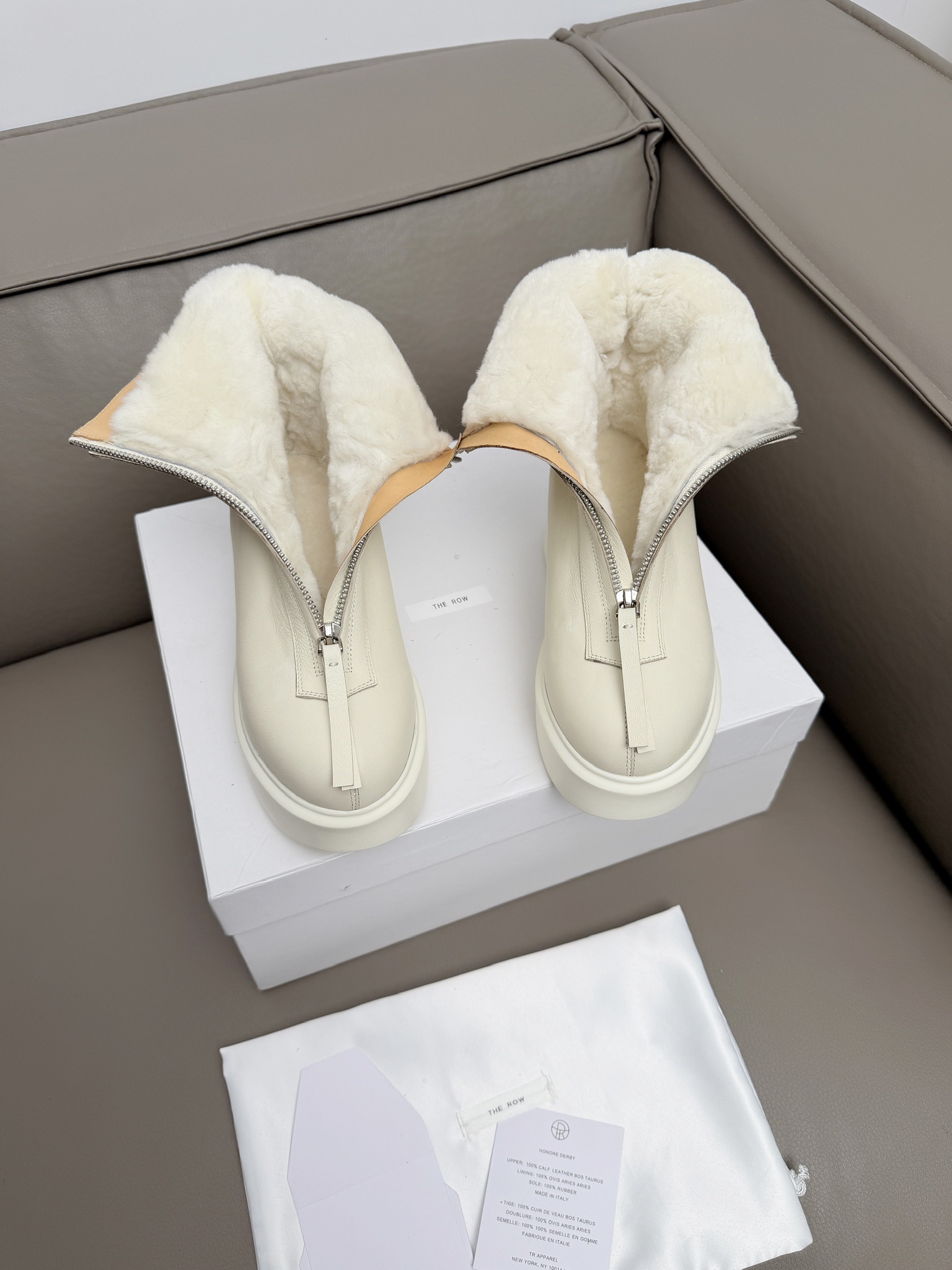 这款鞋子是AAAAA 1:1 质量 (非常棒). 使用了和原版一模一样的材料. 商标部分也保持了和The Row一样. 图片拍摄是实物鞋子拍摄, 您所收到的实物保证和我们图片一模一样.
