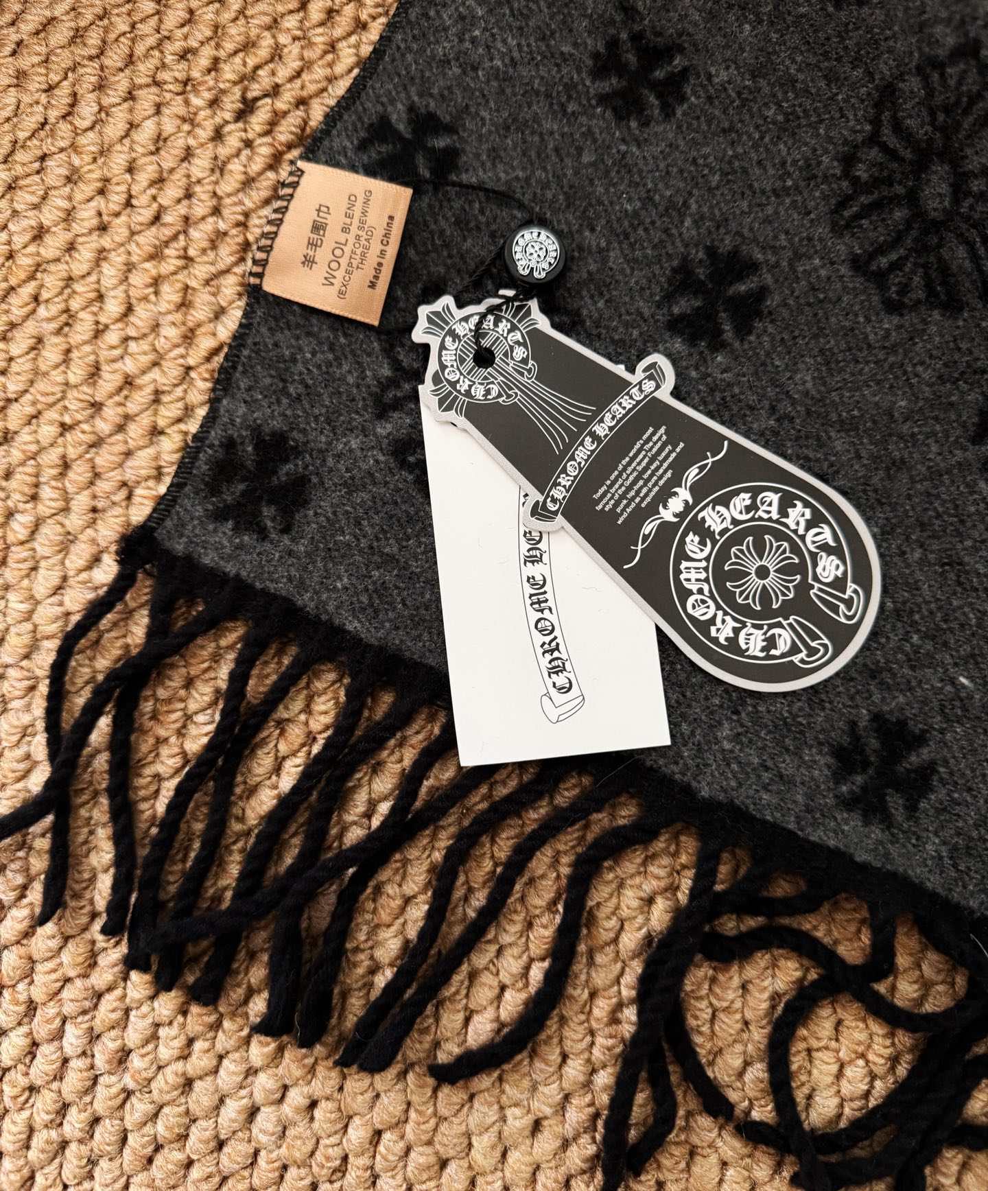 这款衣服是AAAAA 1:1 质量 (非常棒). 使用了和原版一模一样的材料. 商标部分也保持了和克罗心/Chrome Hearts一样. 图片拍摄是实物衣服拍摄, 您所收到的实物保证和我们图片一模一样.