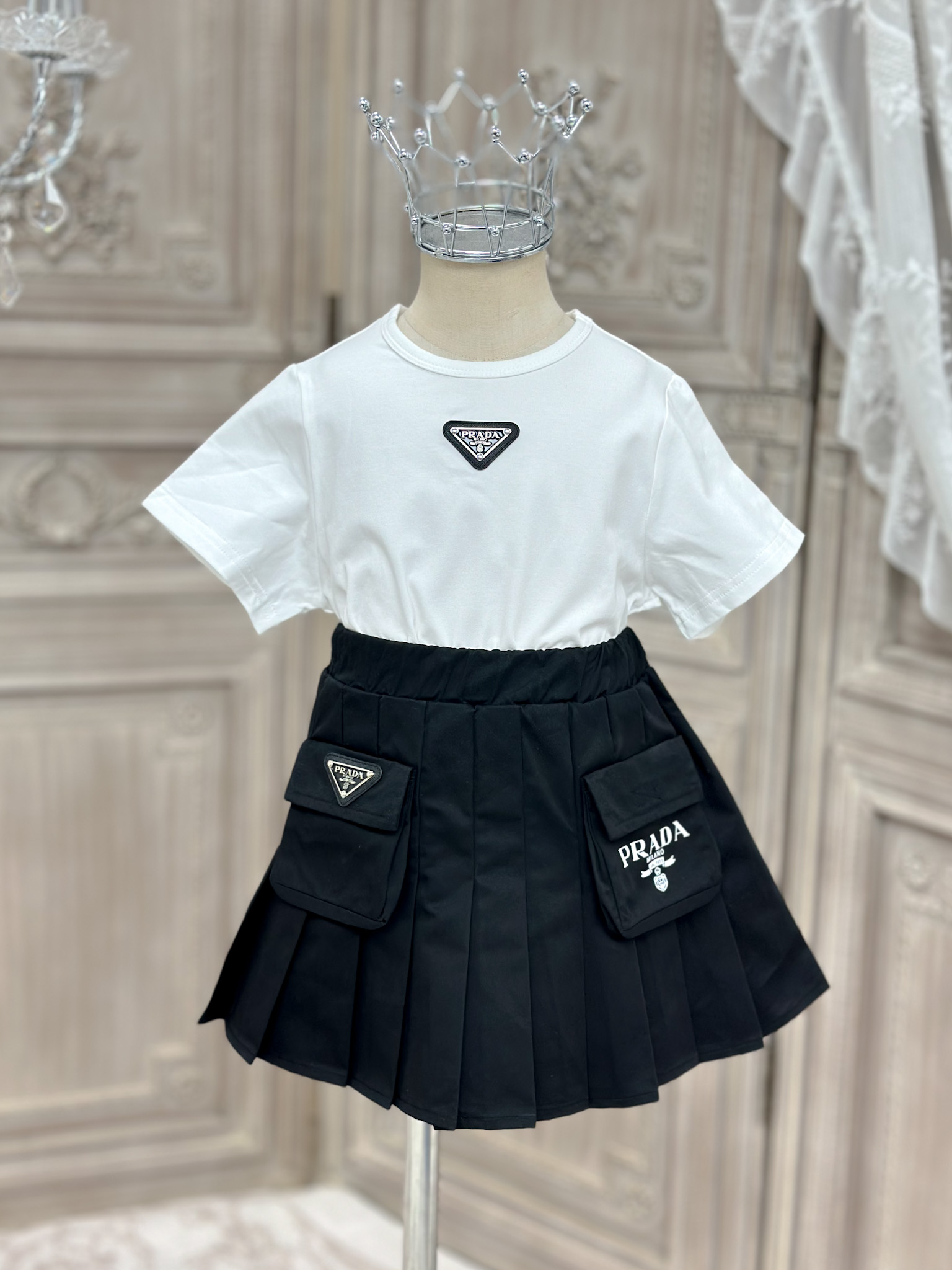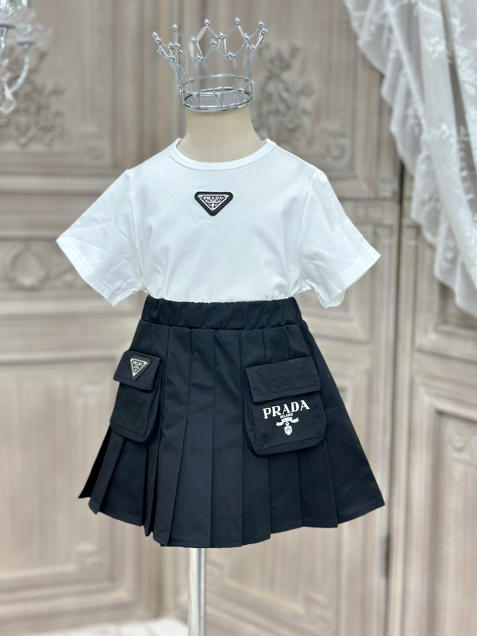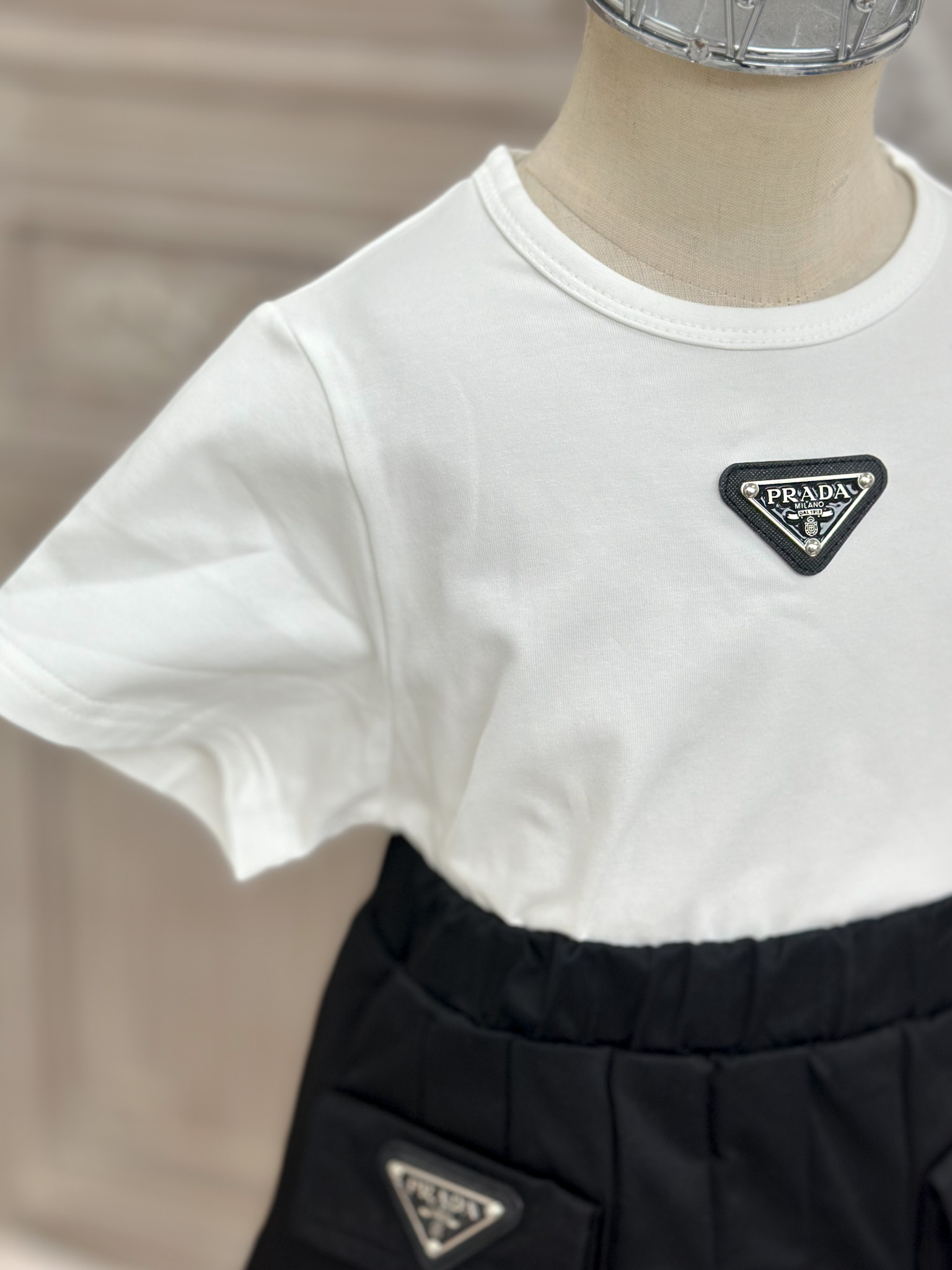 这款children's clothes是AAAAA 1:1 质量 (非常棒). 使用了和原版一模一样的材料. 商标部分也保持了和普拉达/Prada一样. 图片拍摄是实物children's clothes拍摄, 您所收到的实物保证和我们图片一模一样.