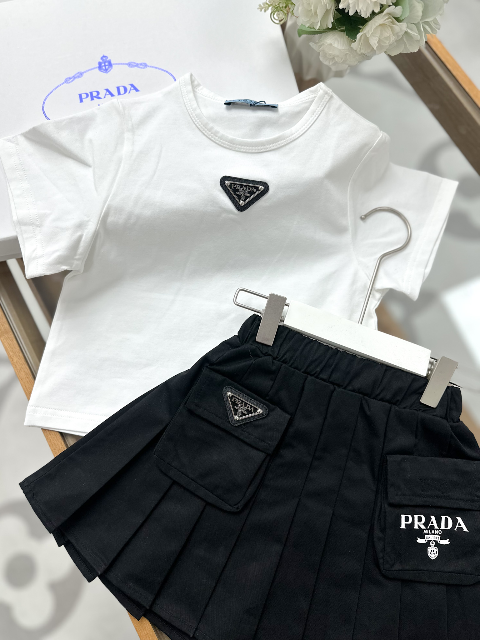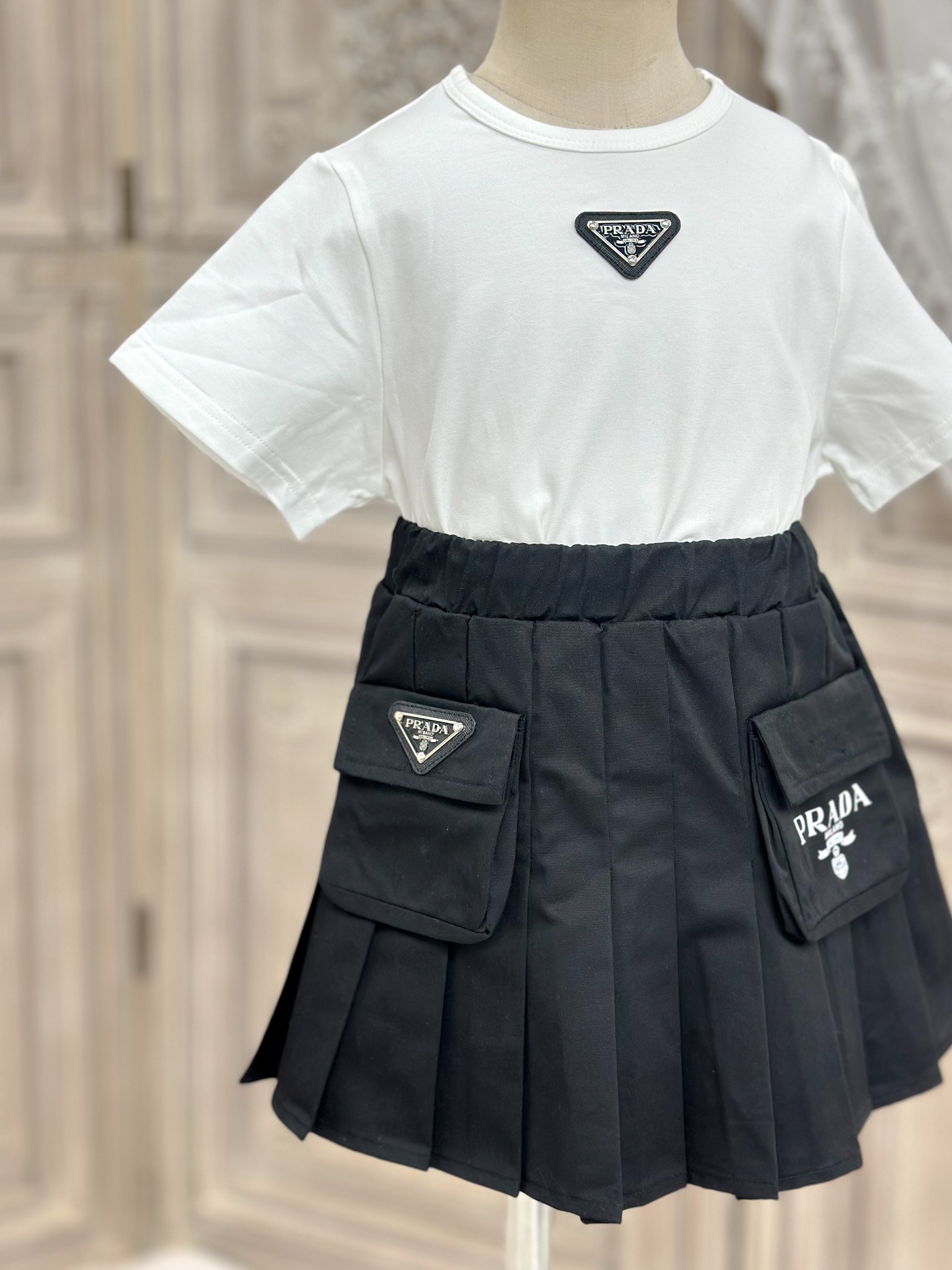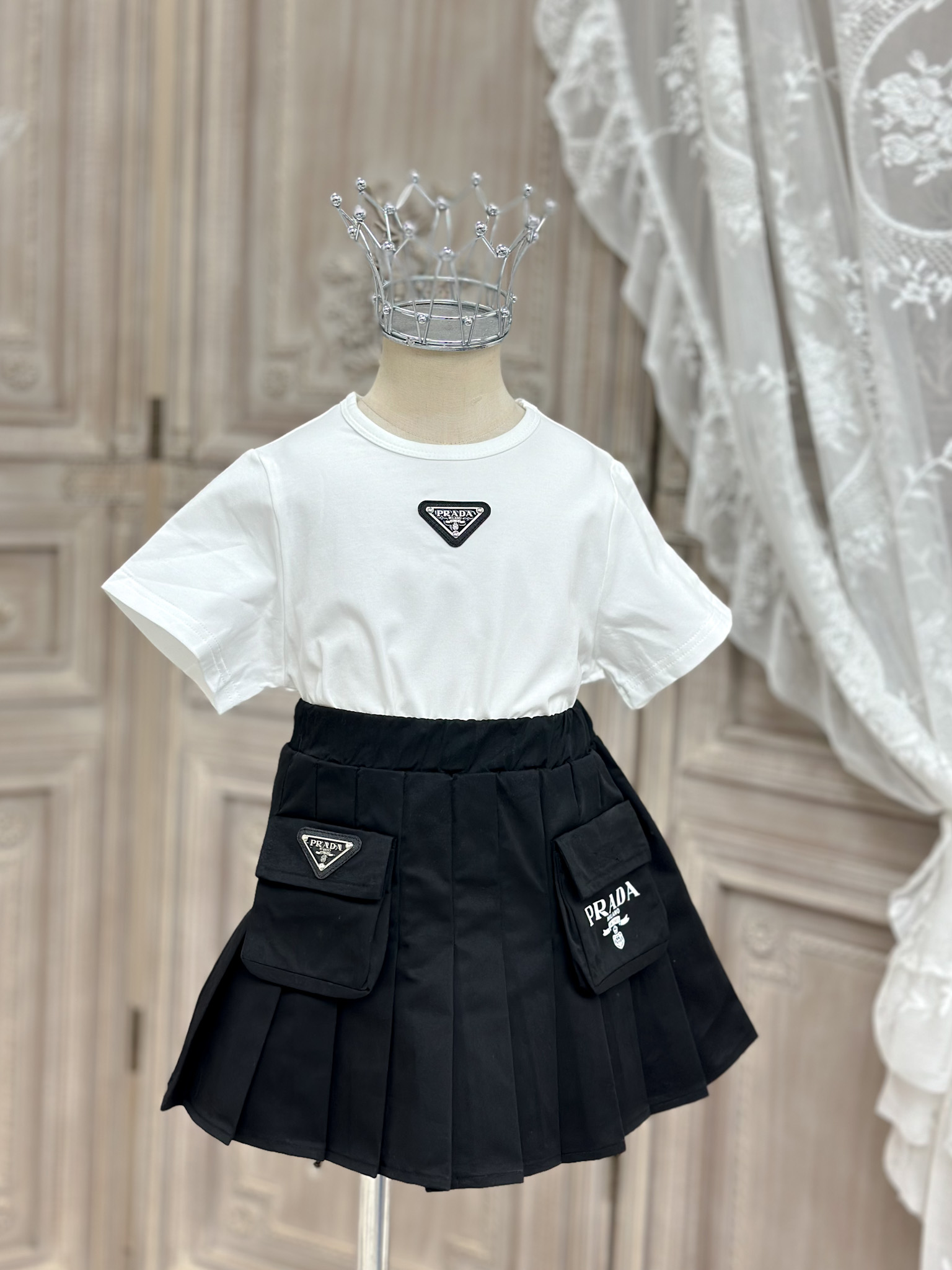 这款children's clothes是AAAAA 1:1 质量 (非常棒). 使用了和原版一模一样的材料. 商标部分也保持了和普拉达/Prada一样. 图片拍摄是实物children's clothes拍摄, 您所收到的实物保证和我们图片一模一样.
